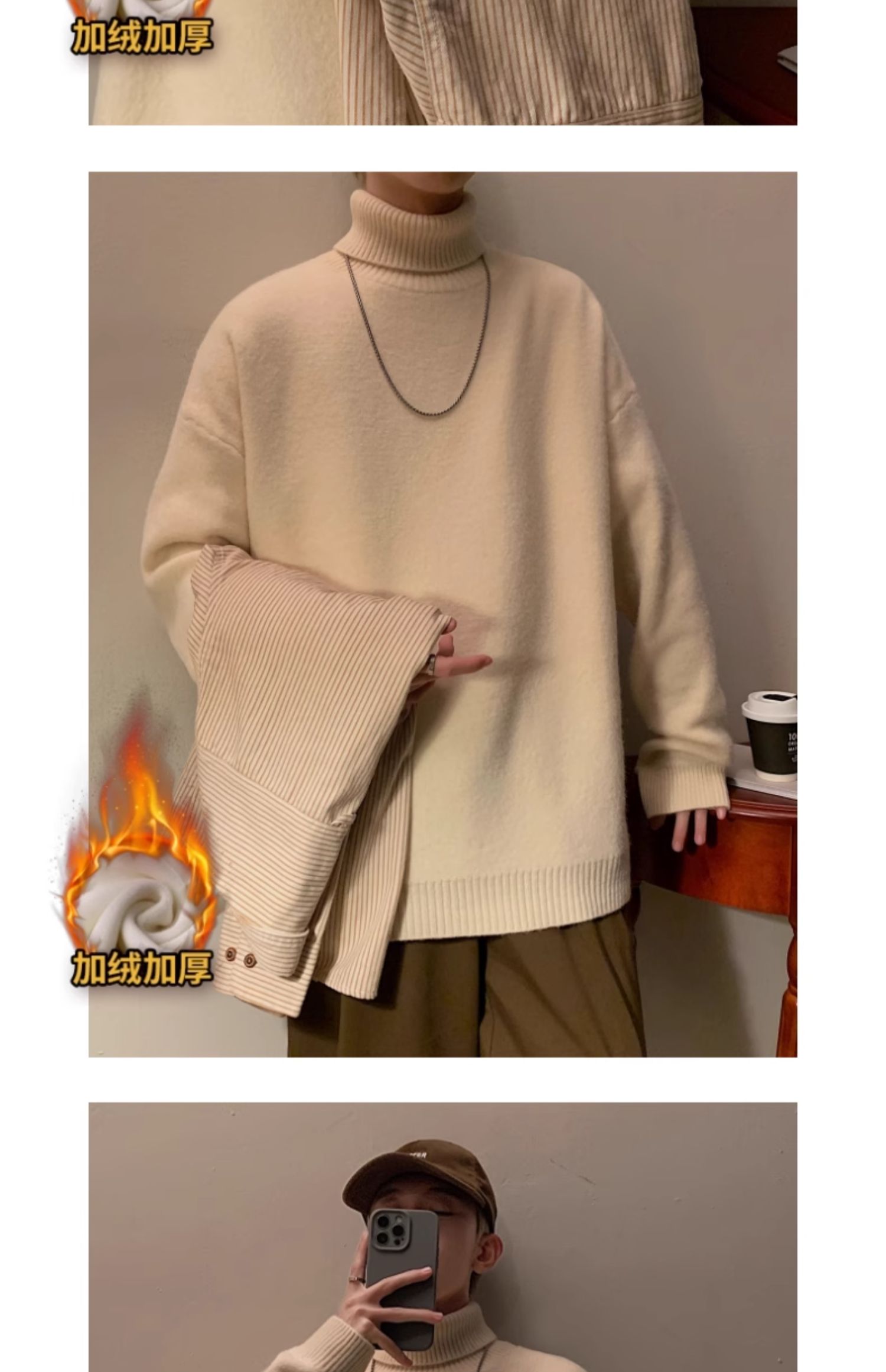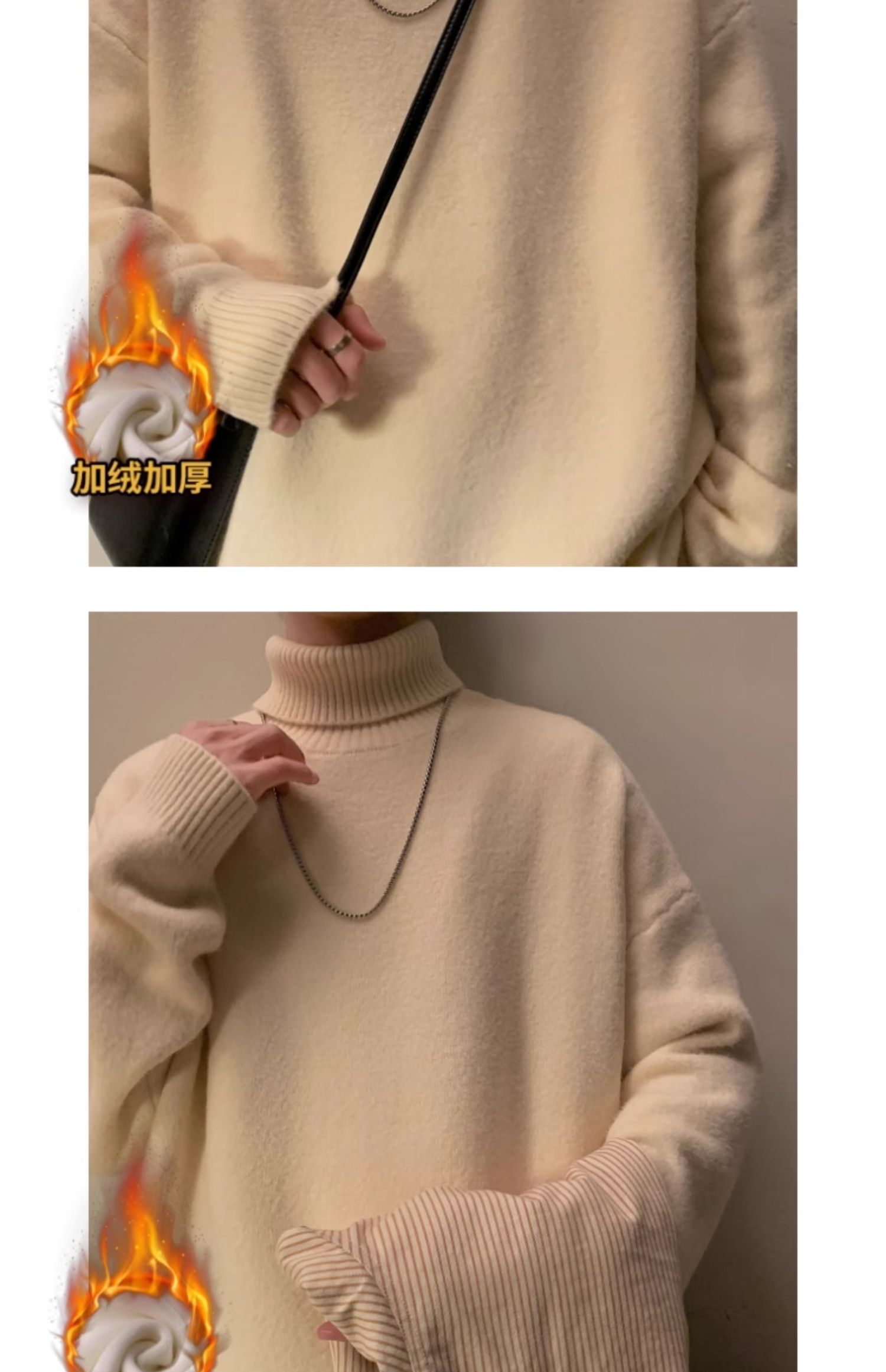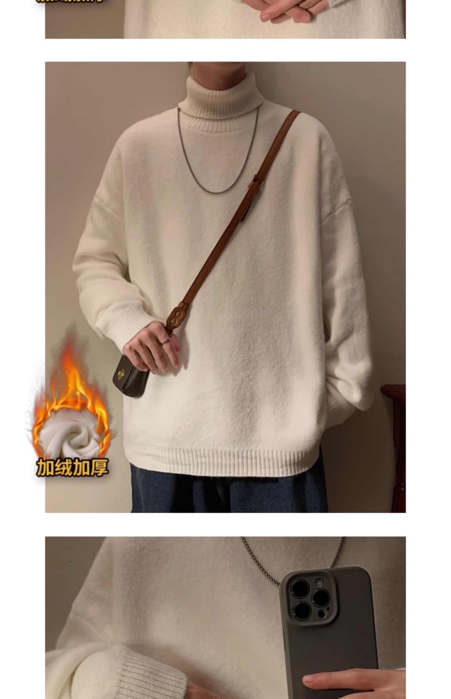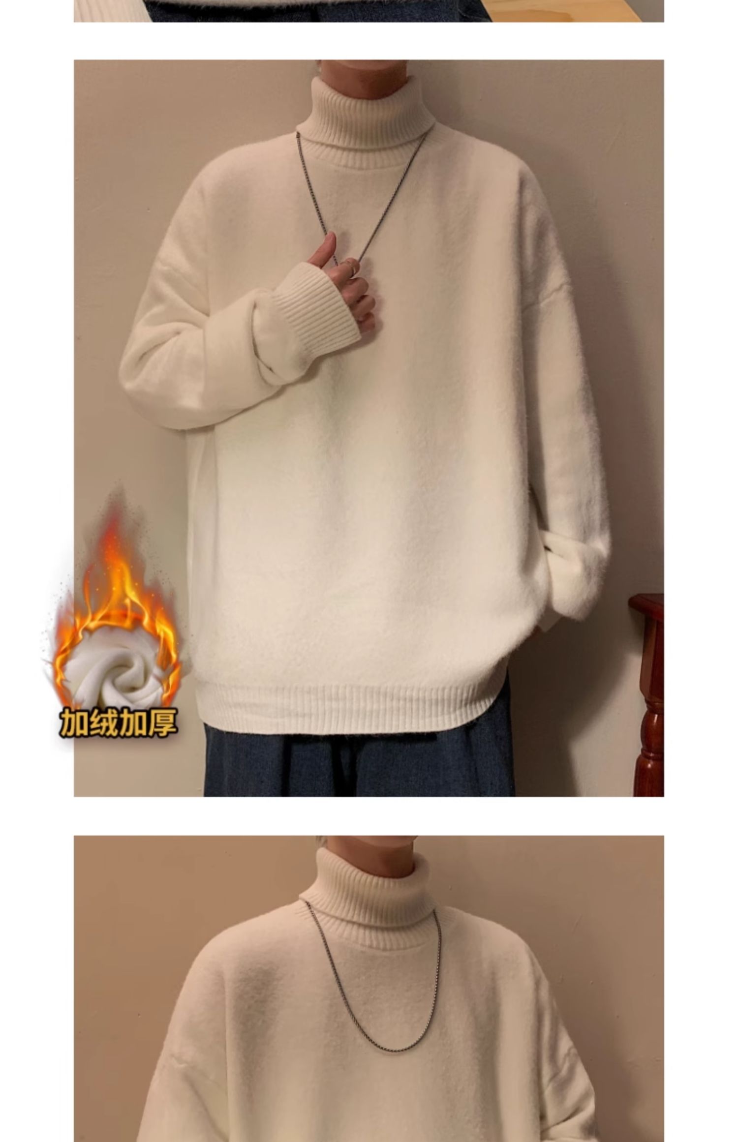 東北零下40度毛衣加絨加厚保暖白色高領針織衫男冬季抗寒情侶外套