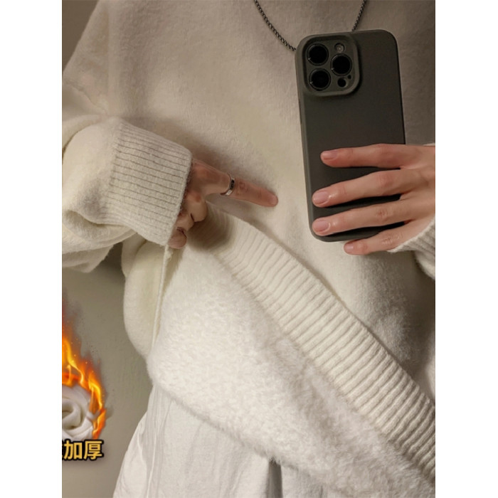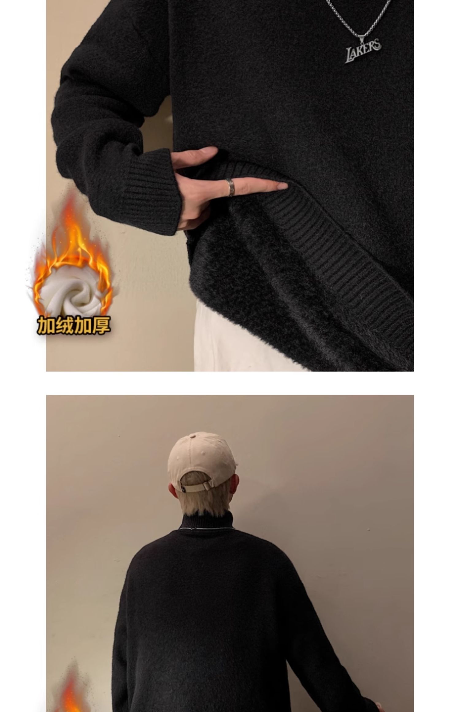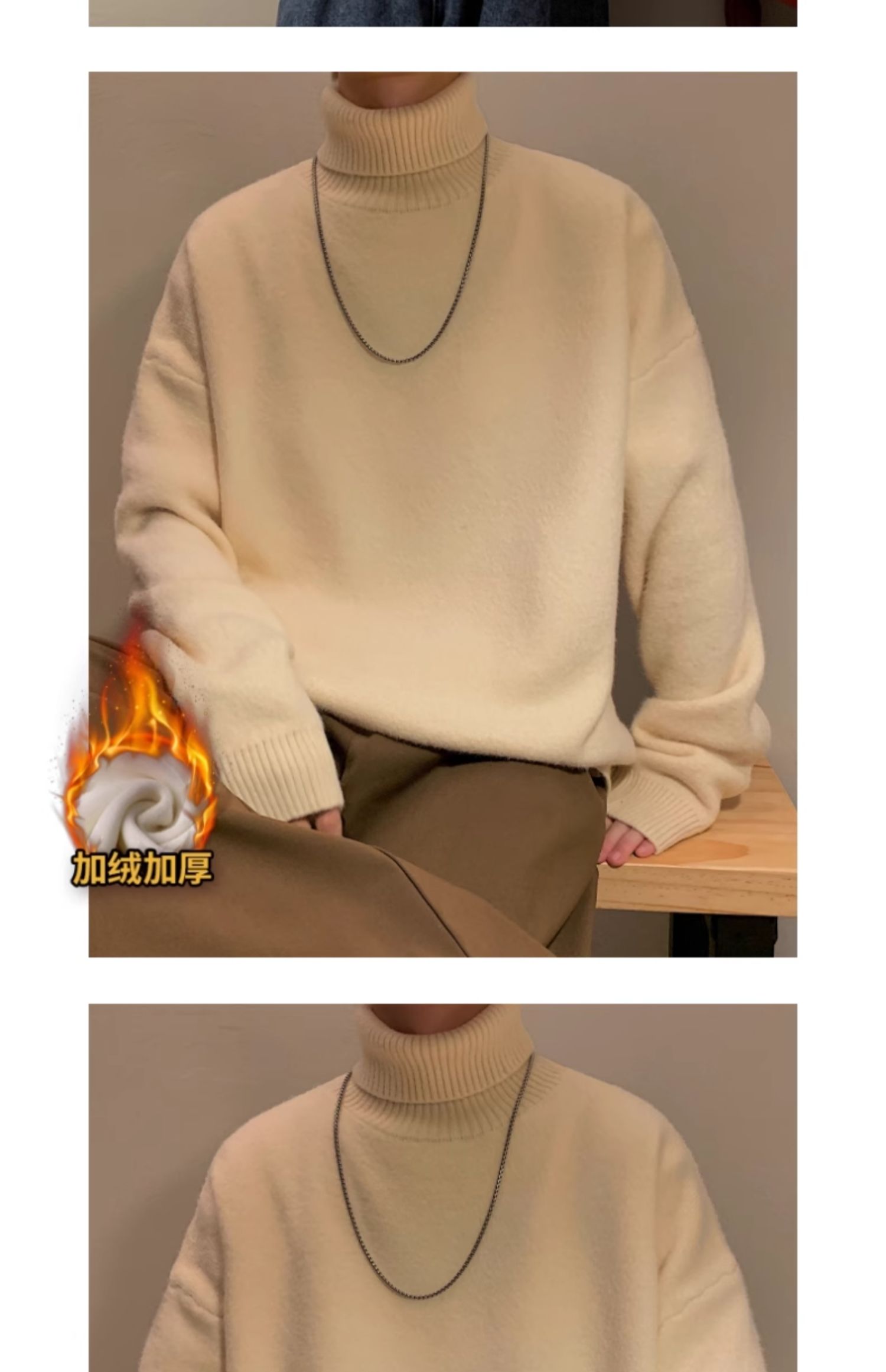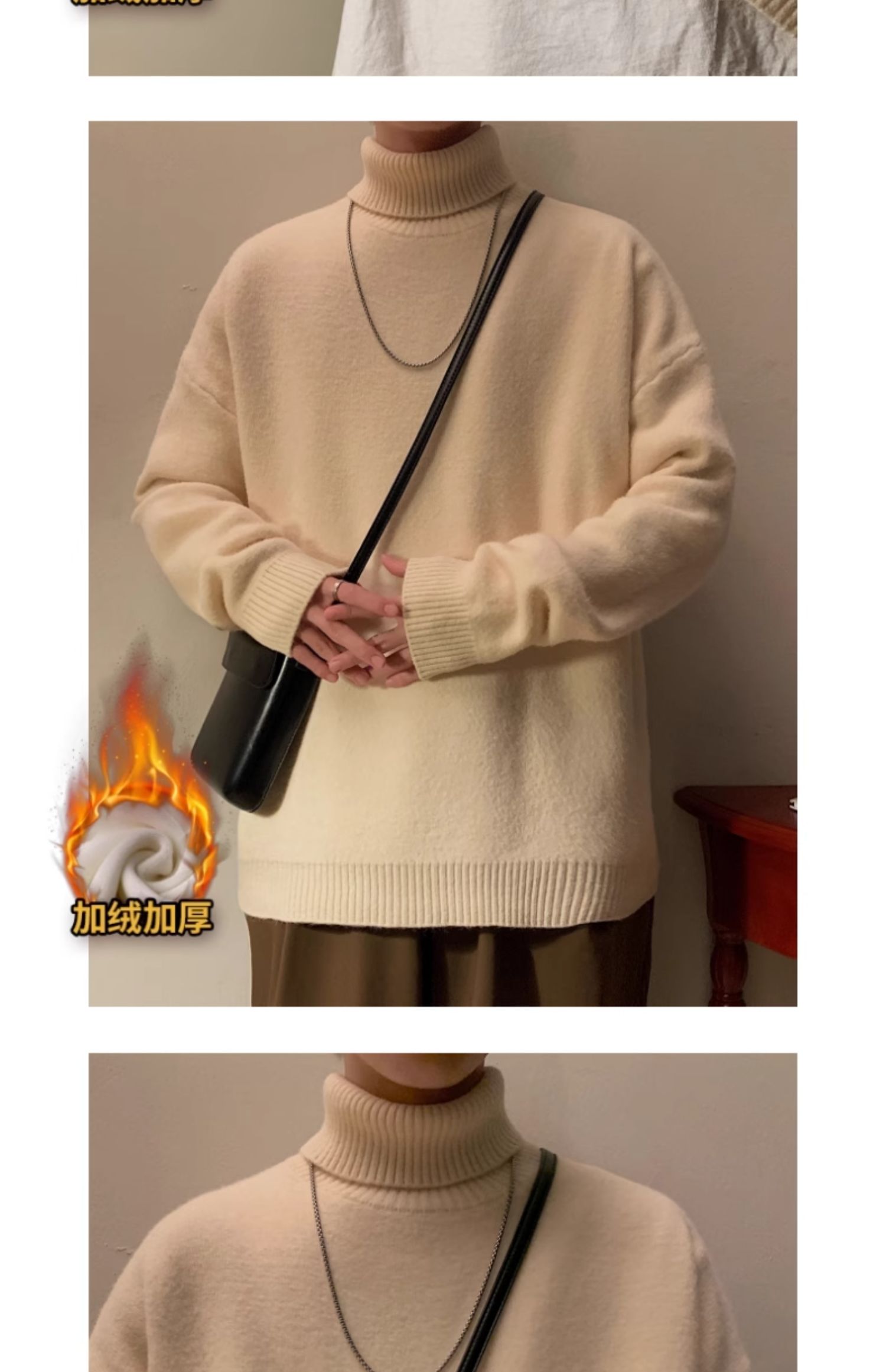 東北零下40度毛衣加絨加厚保暖白色高領針織衫男冬季抗寒情侶外套