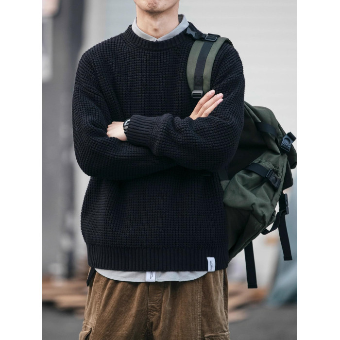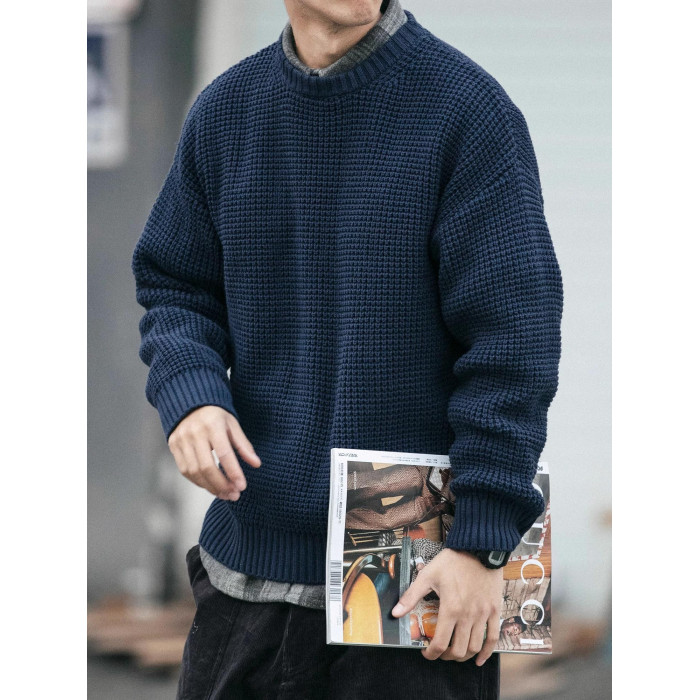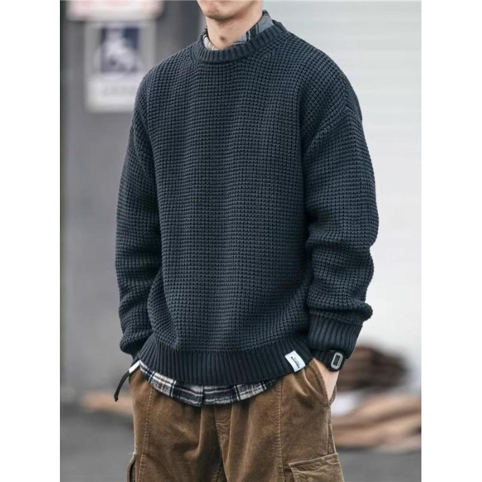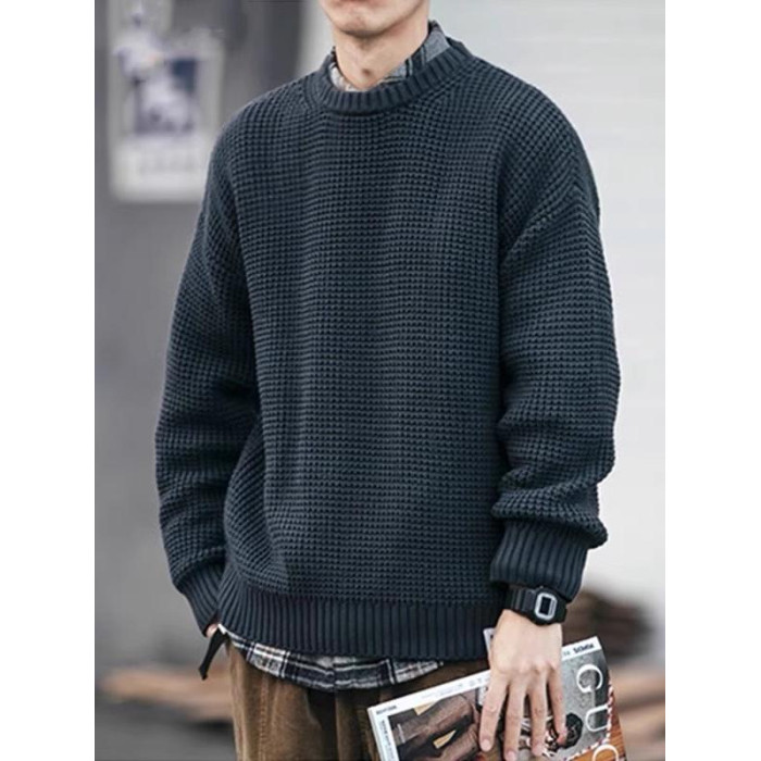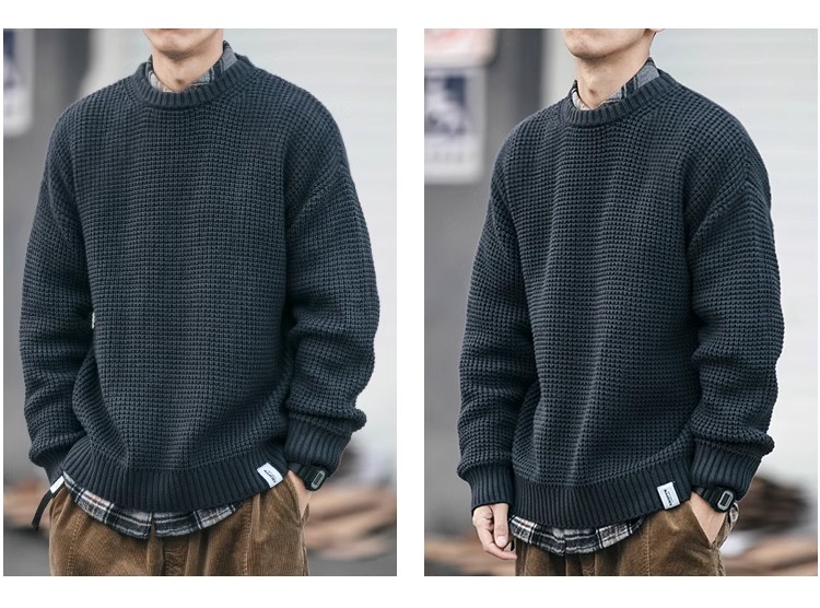冬季加厚毛衣男款圓領寬松男裝純色線衣高級感休閒保暖針織衫外套