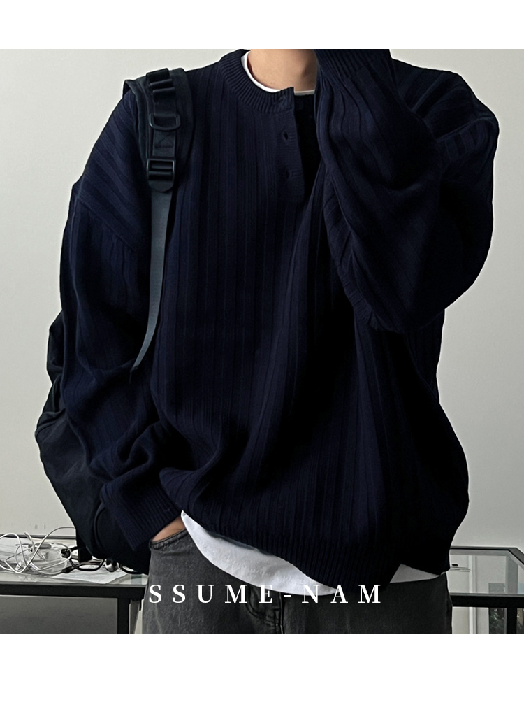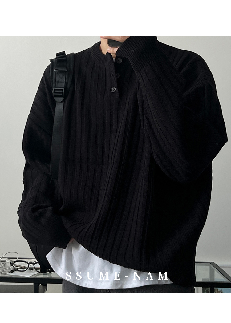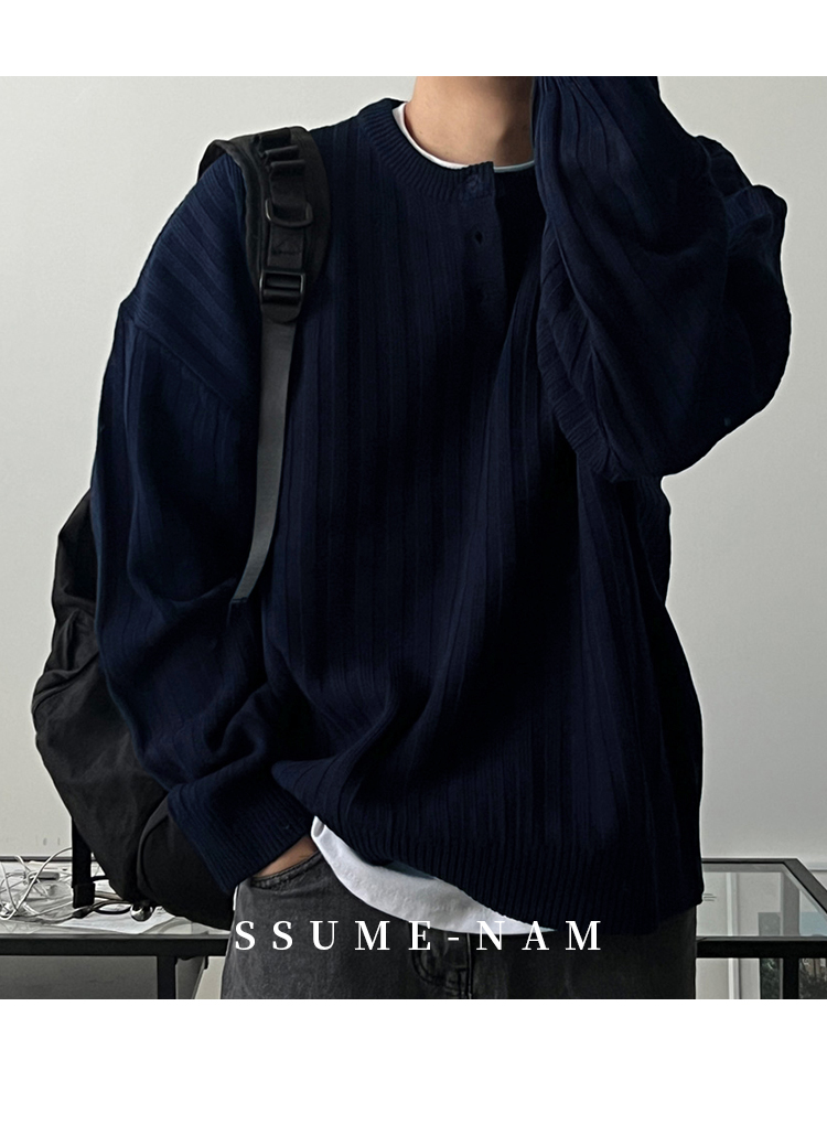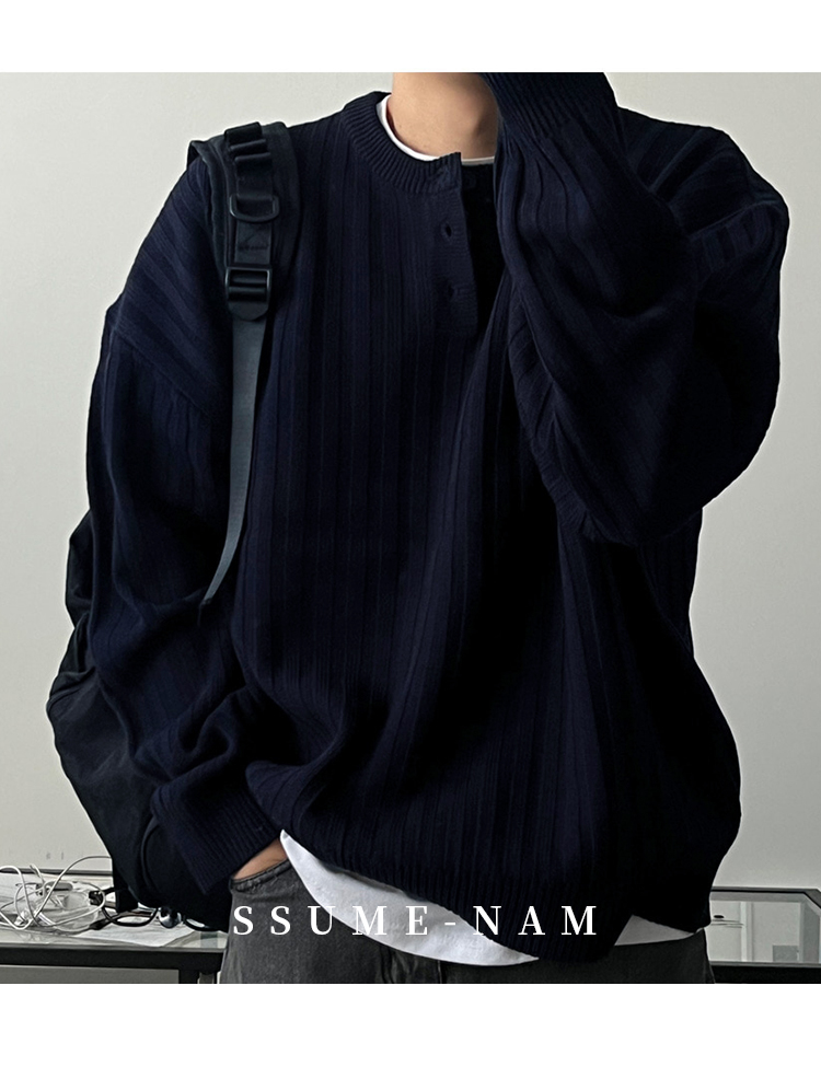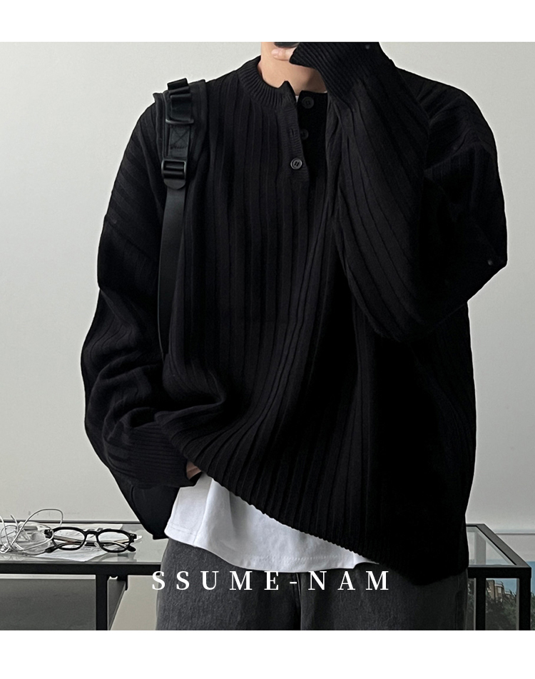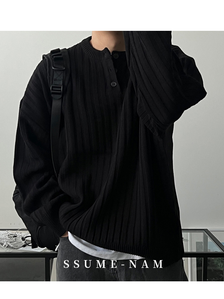 SSUMENAM「老錢新貴 亨利領」紋理毛衣男秋季寬松休閒長袖針織衫