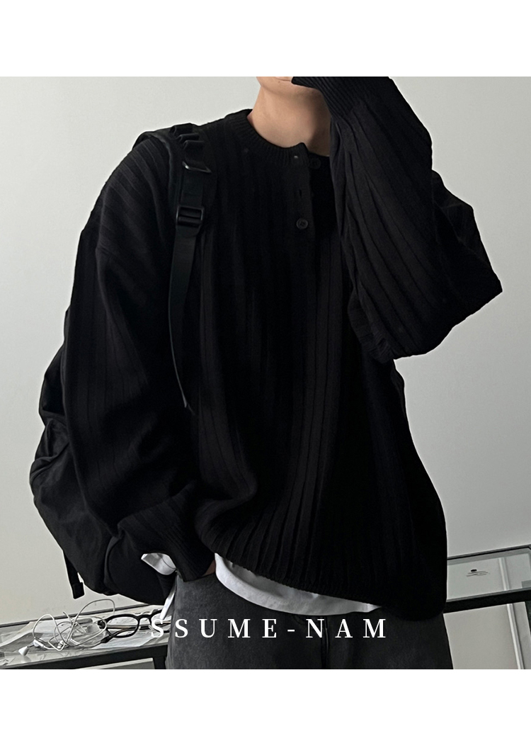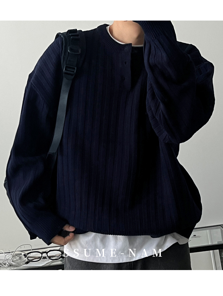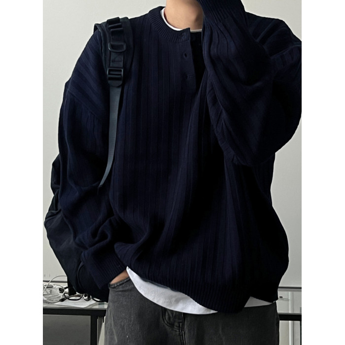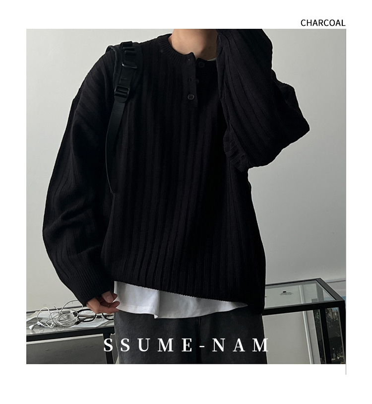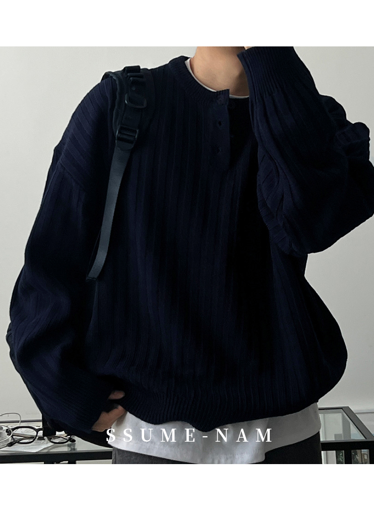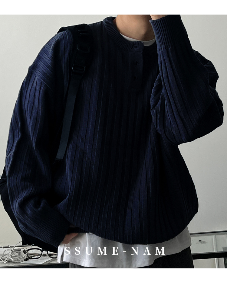 SSUMENAM「老錢新貴 亨利領」紋理毛衣男秋季寬松休閒長袖針織衫
