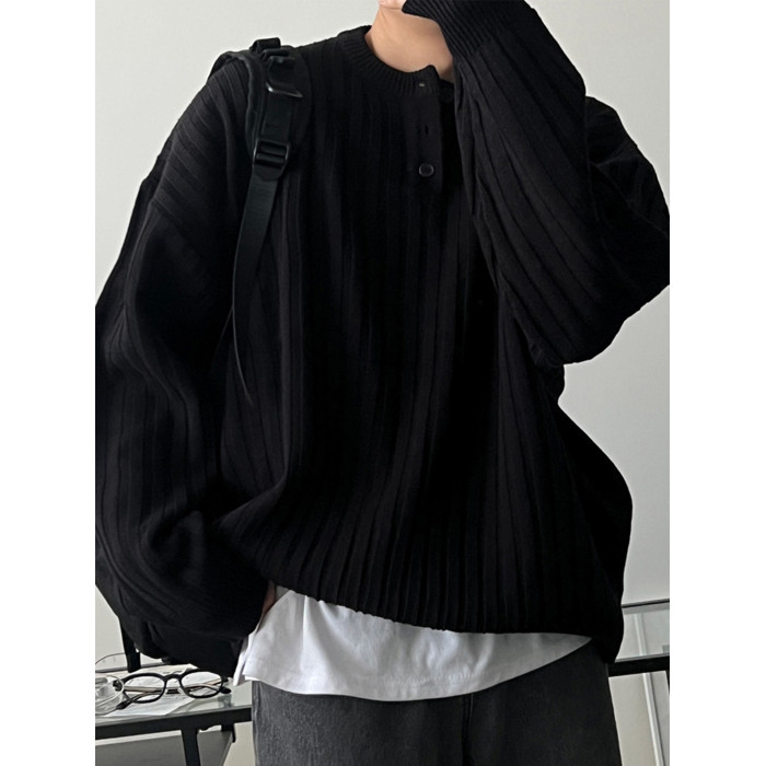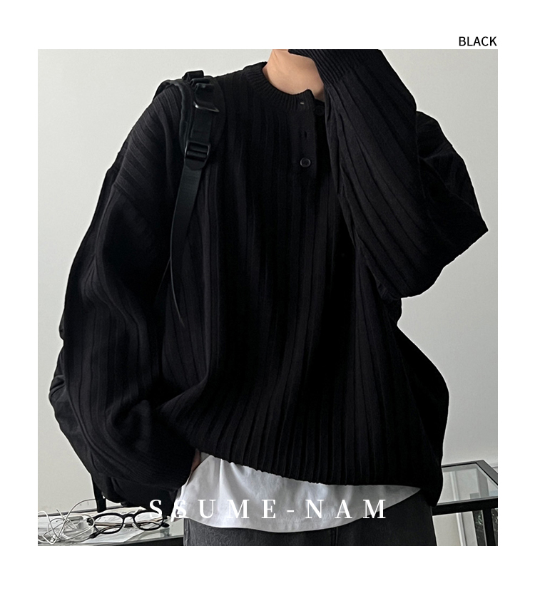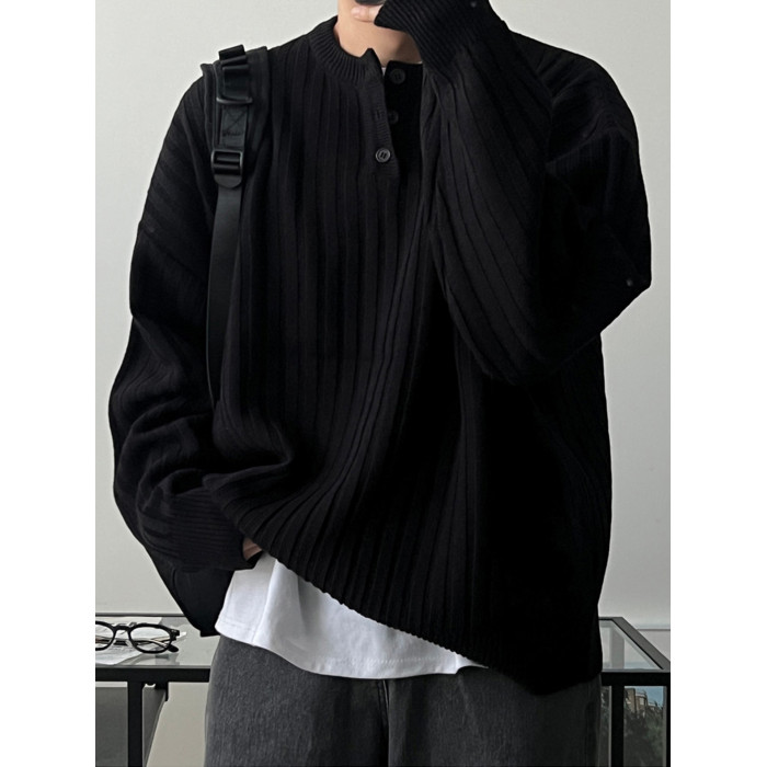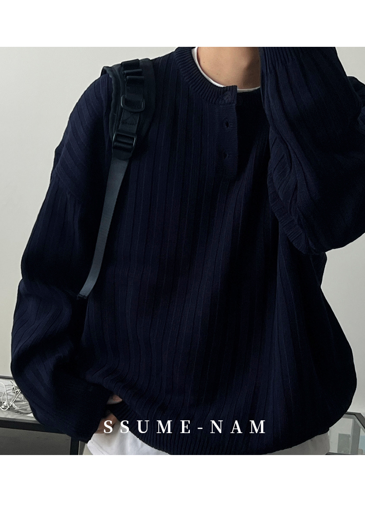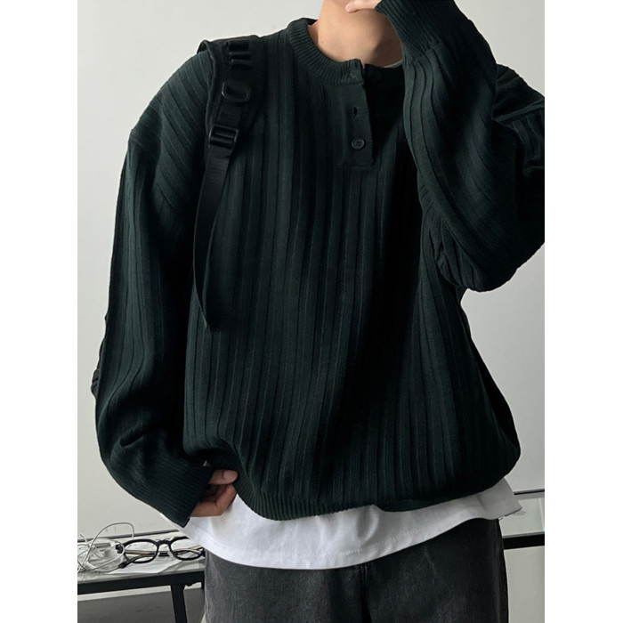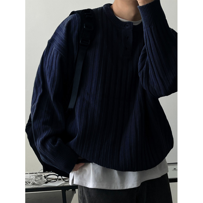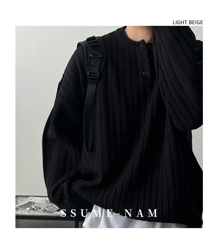 SSUMENAM「老錢新貴 亨利領」紋理毛衣男秋季寬松休閒長袖針織衫