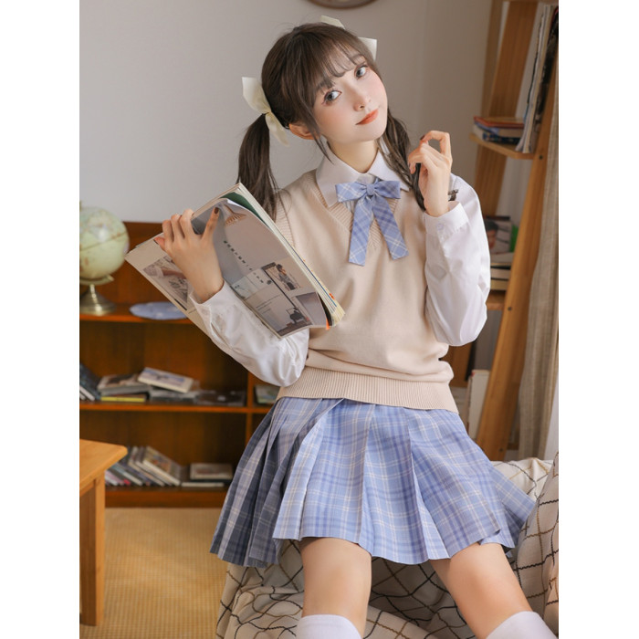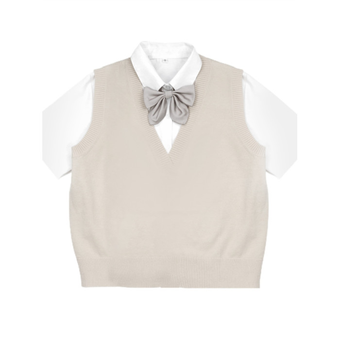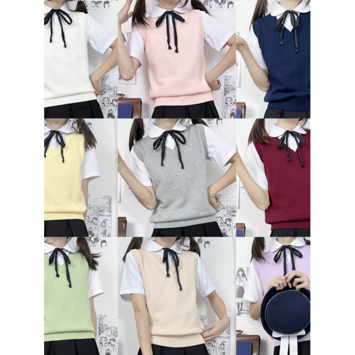 海月社針織背心基礎款V領馬甲JK製服毛衣針織衫女冬季打底學生服