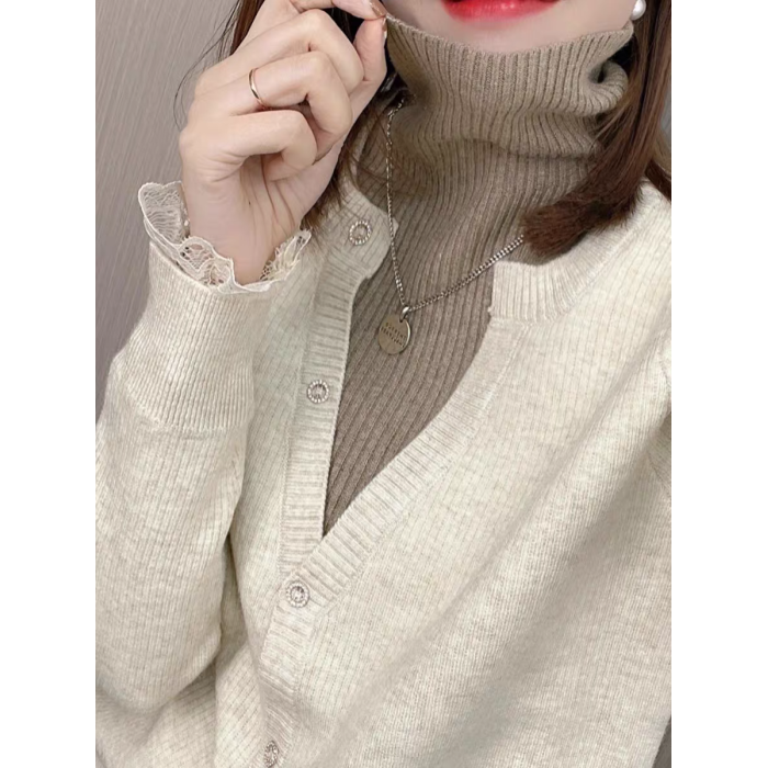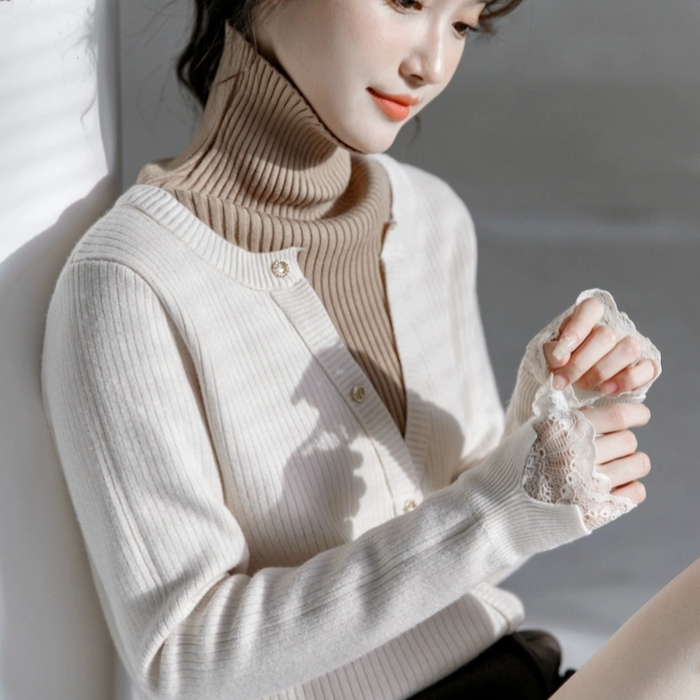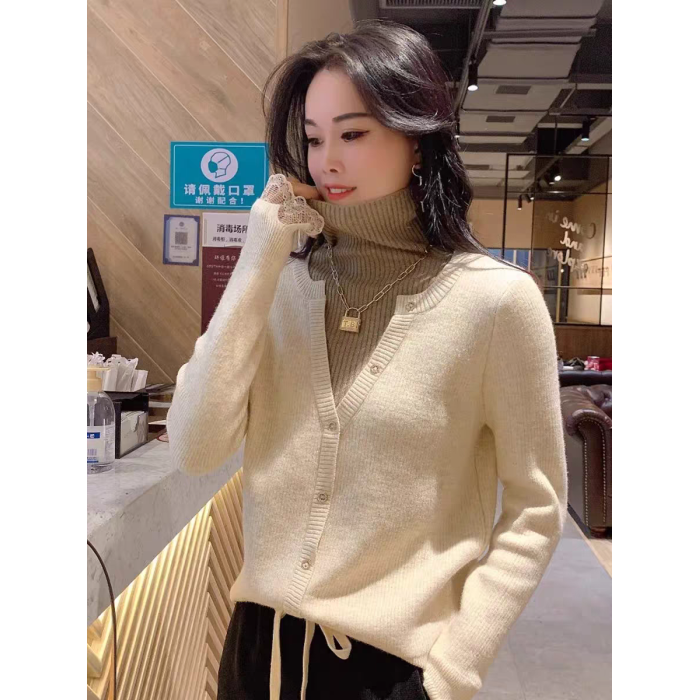 顯瘦不臃腫!高級感高領堆堆領假兩件竪坑條針織打底衫長60胸110