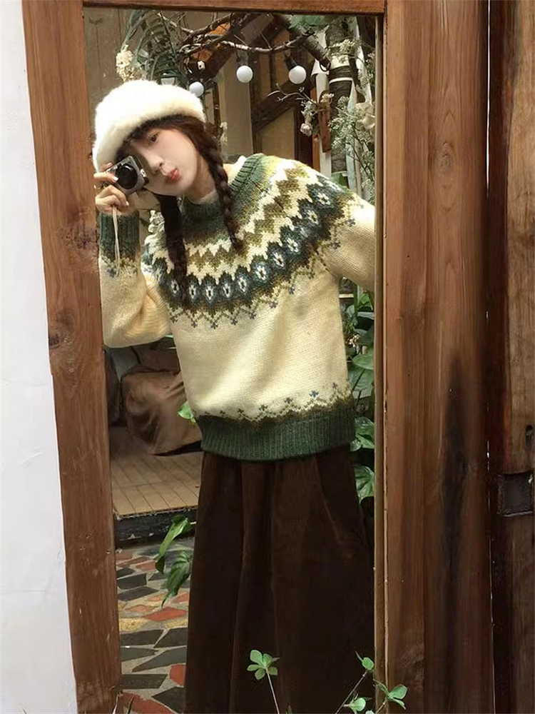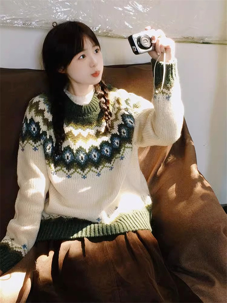 復古慵懶風費爾島毛衣女2025新款秋冬季高級感超好看內搭針織上衣