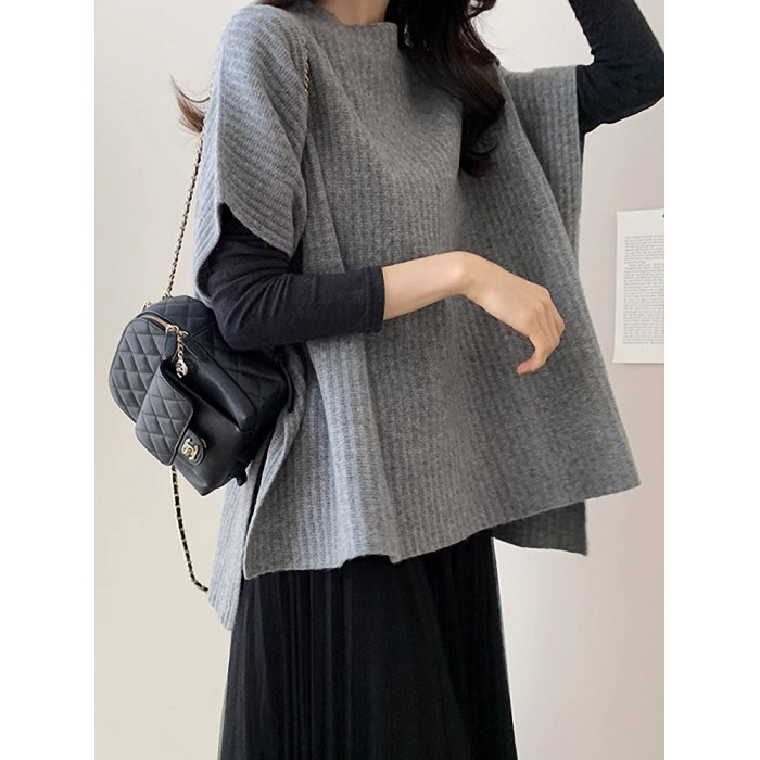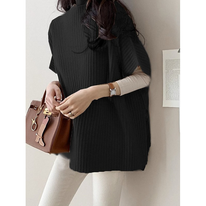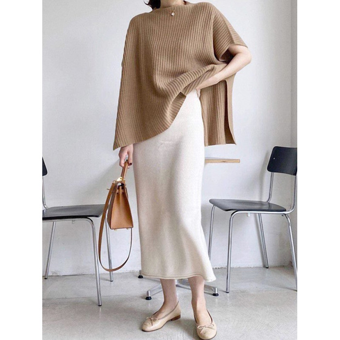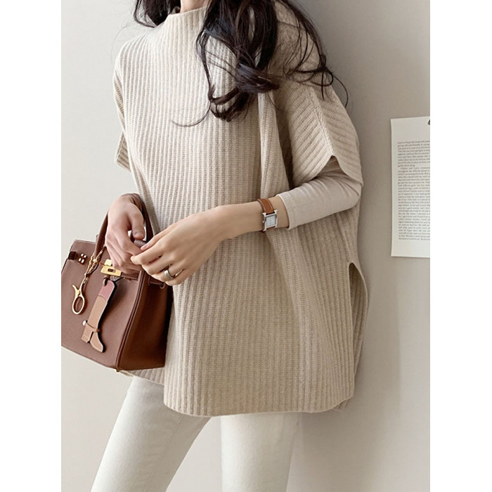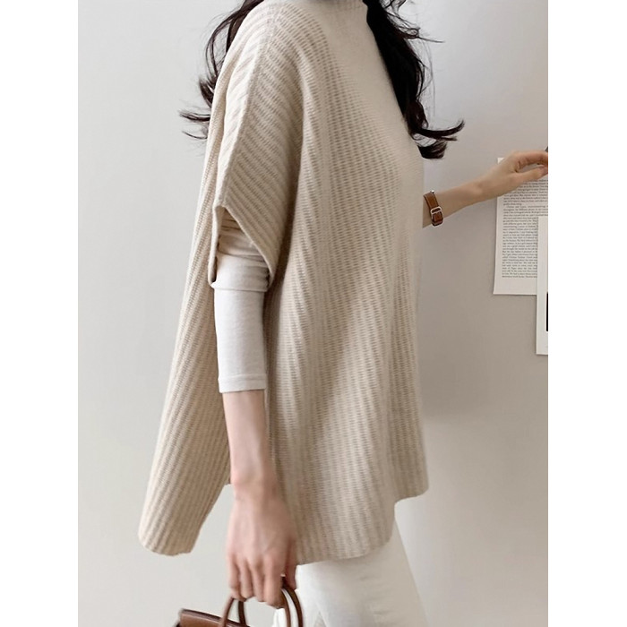 秋冬女裝韓版批新款髮蝙蝠袖寬松外搭針織衫輕熟鬭篷毛衣披風外套