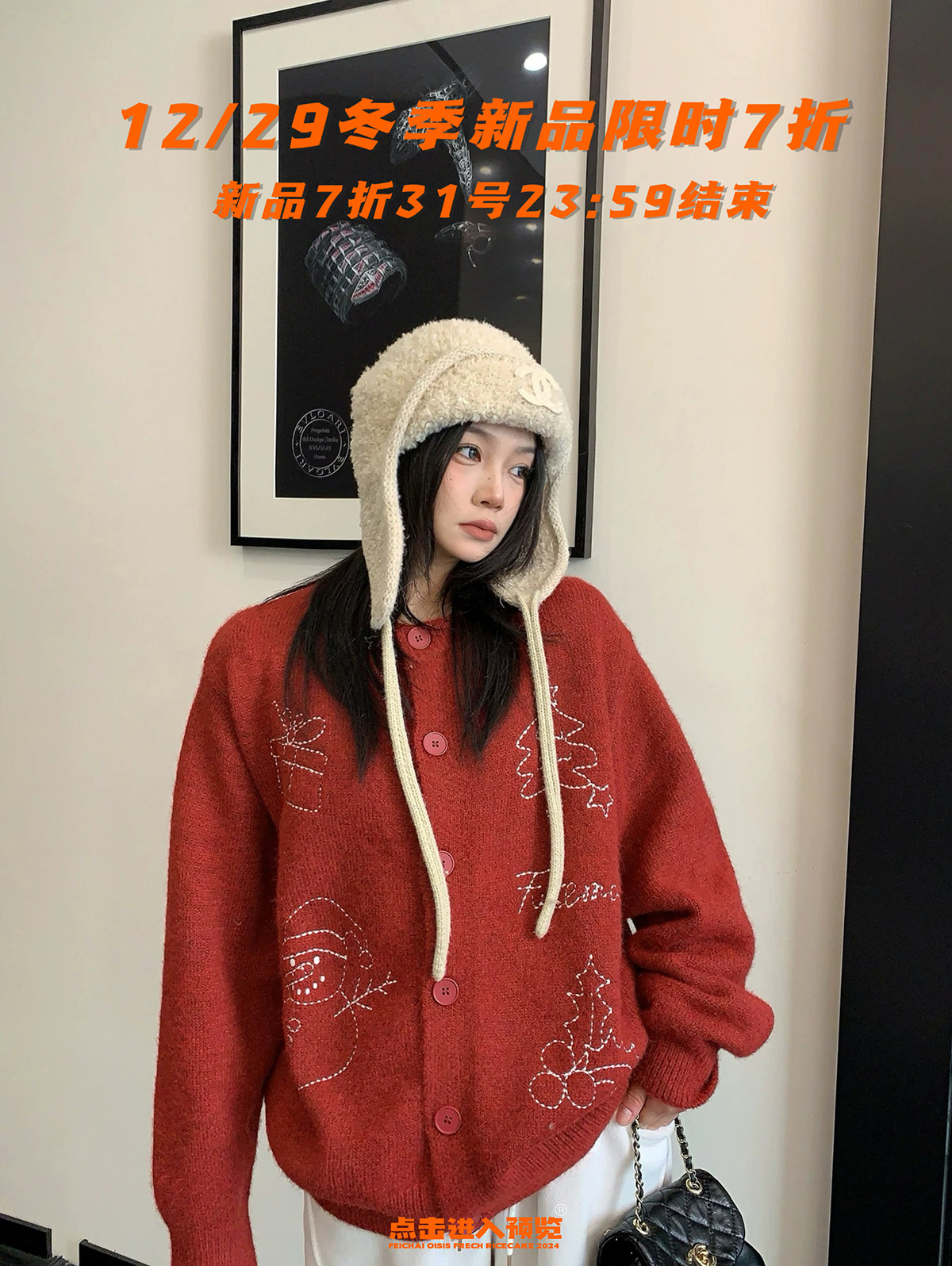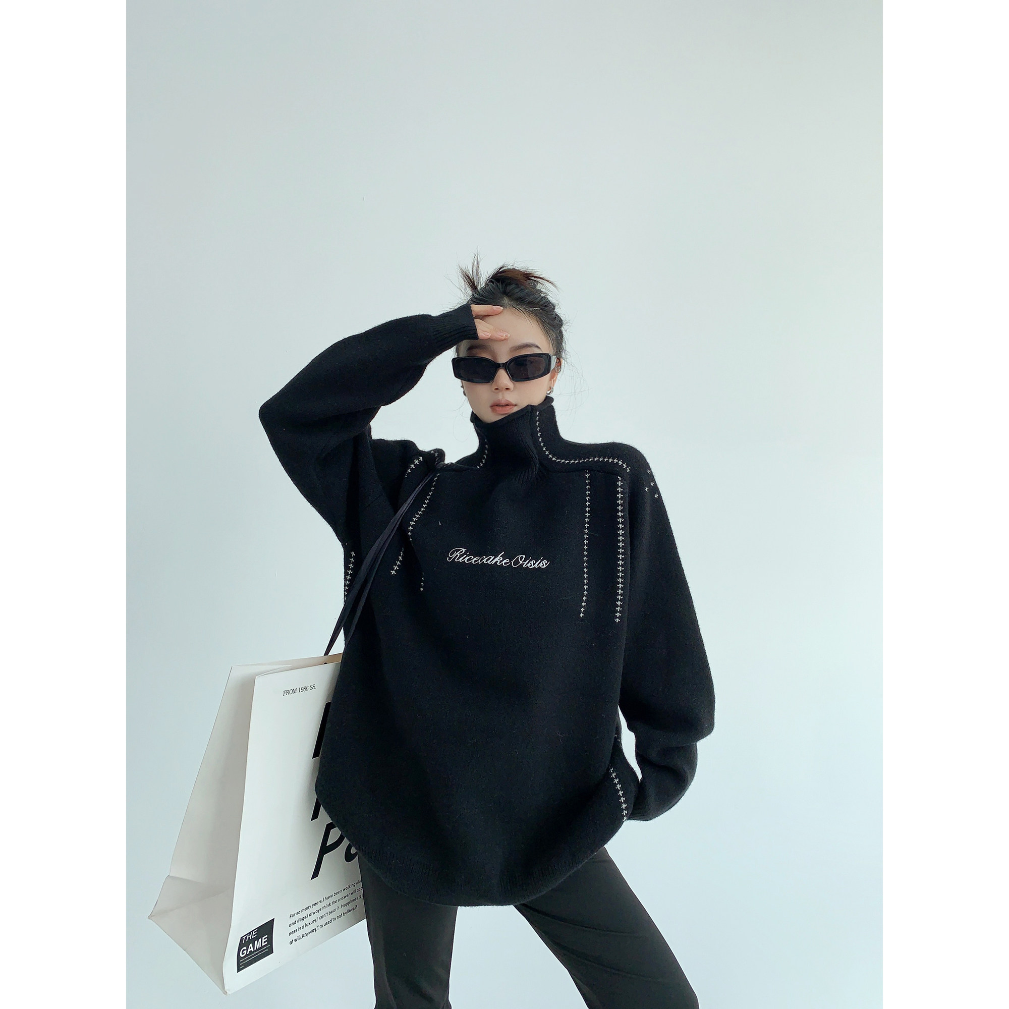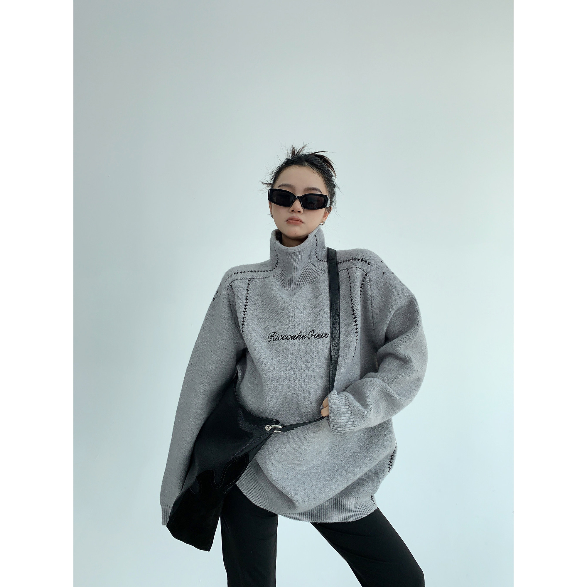 廢柴冬季韓系高級感加厚針織外套寬鬆復古慵嬾刺綉高領套頭毛衣女