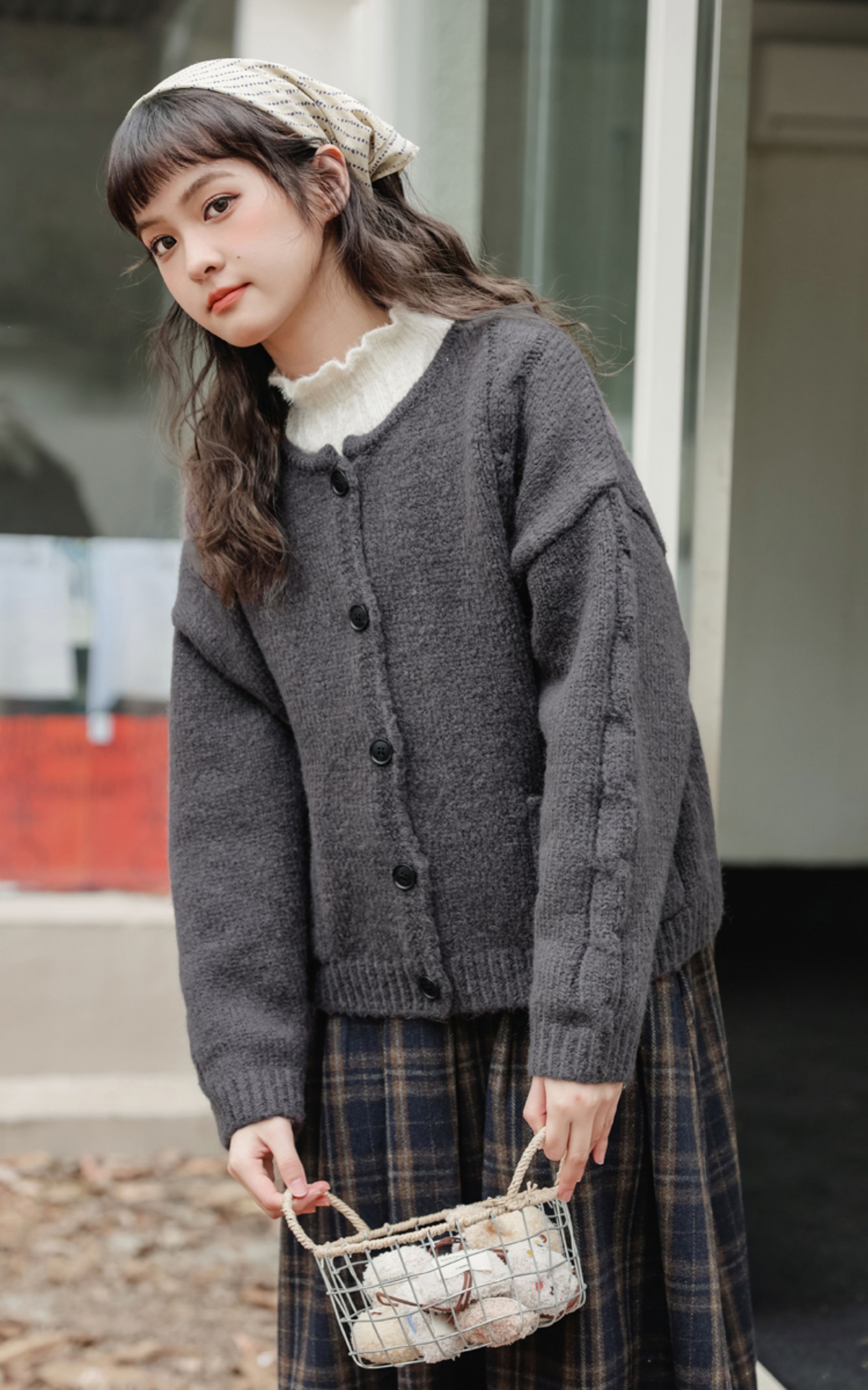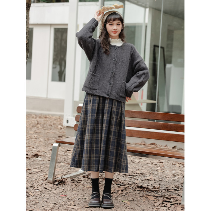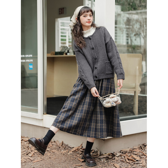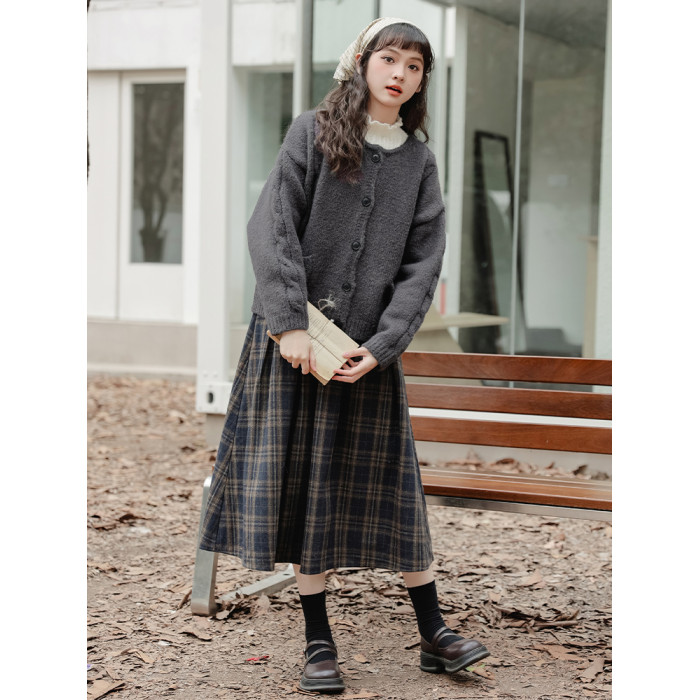 【苗陌】秋冬復古溫柔森系少女圓領針織毛衣開衫保暖軟糯外套2025