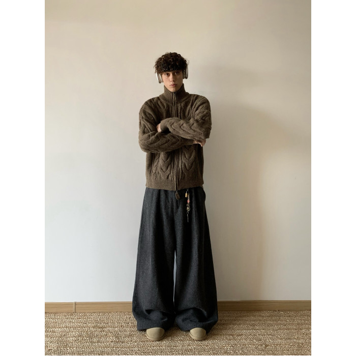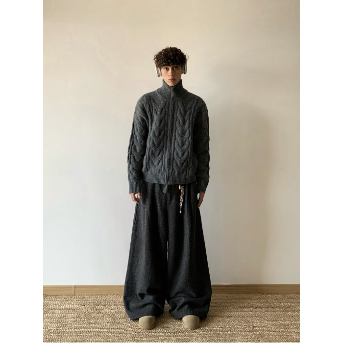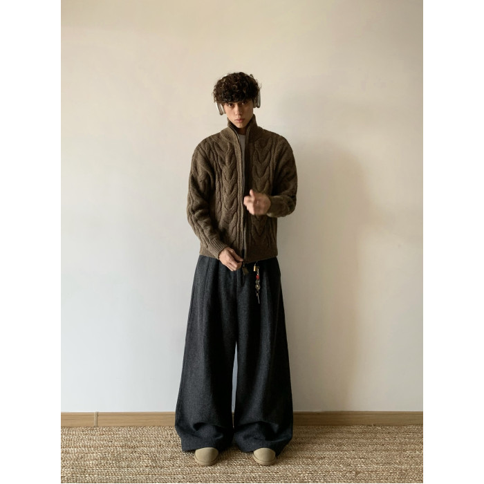 白菜coke美式純色麻花開衫毛衣男女冬季慵懶風上衣設計感針織外套