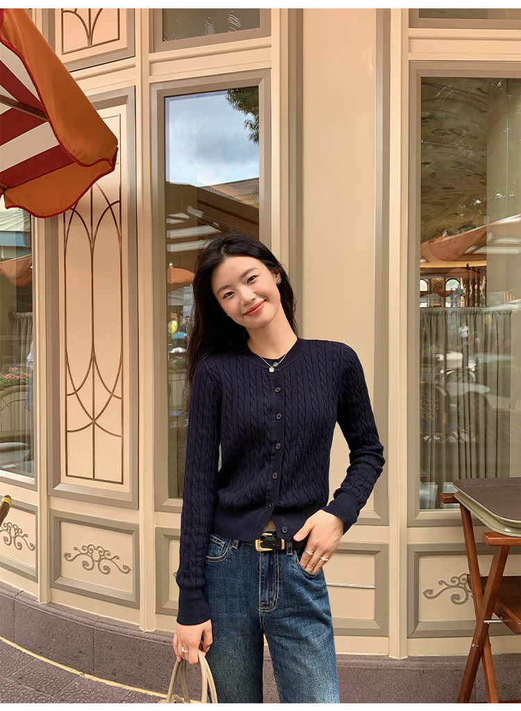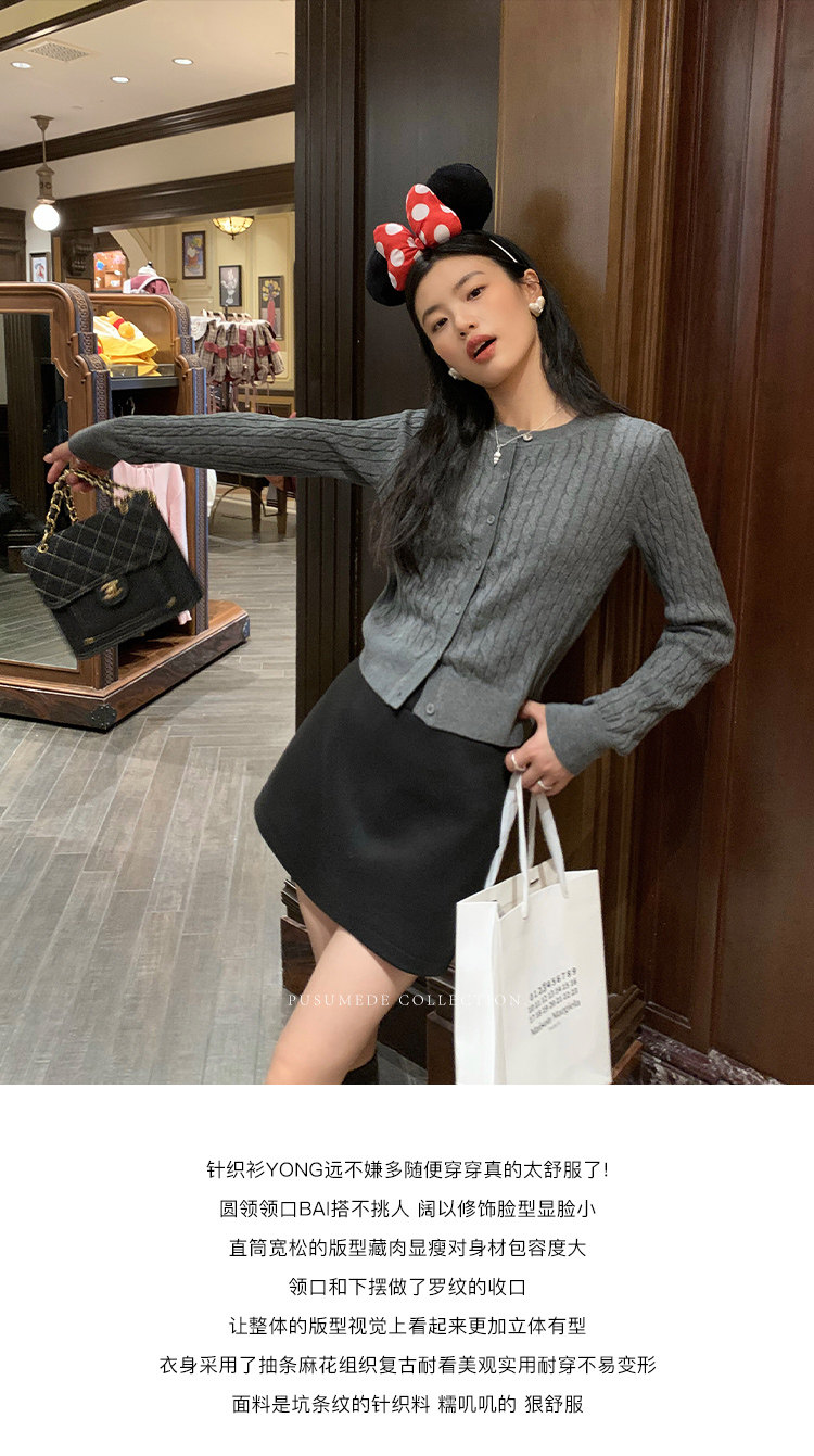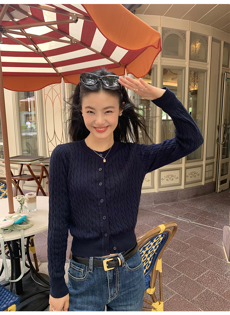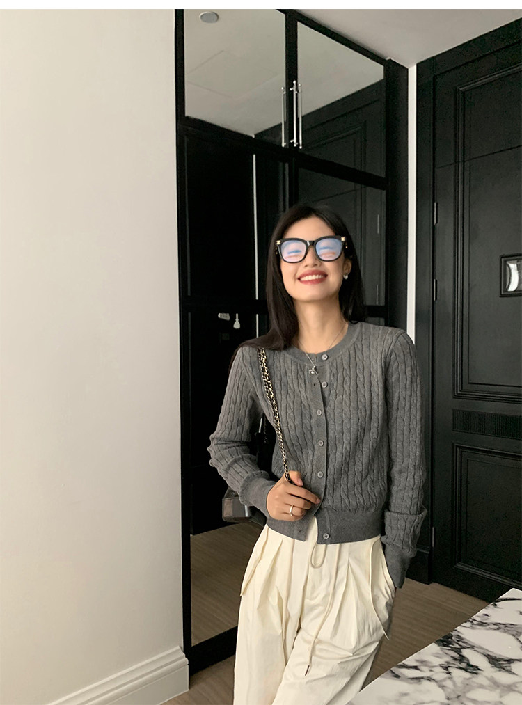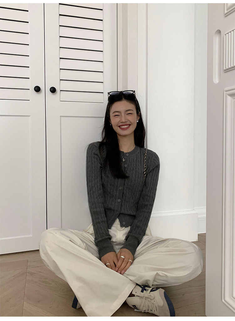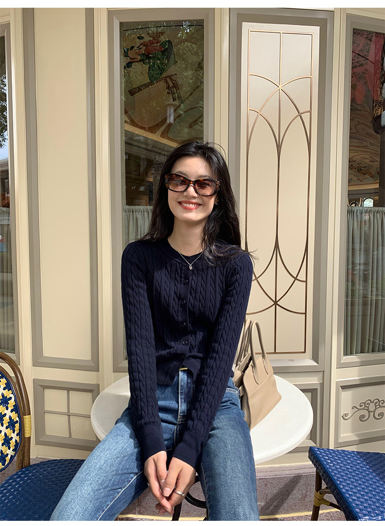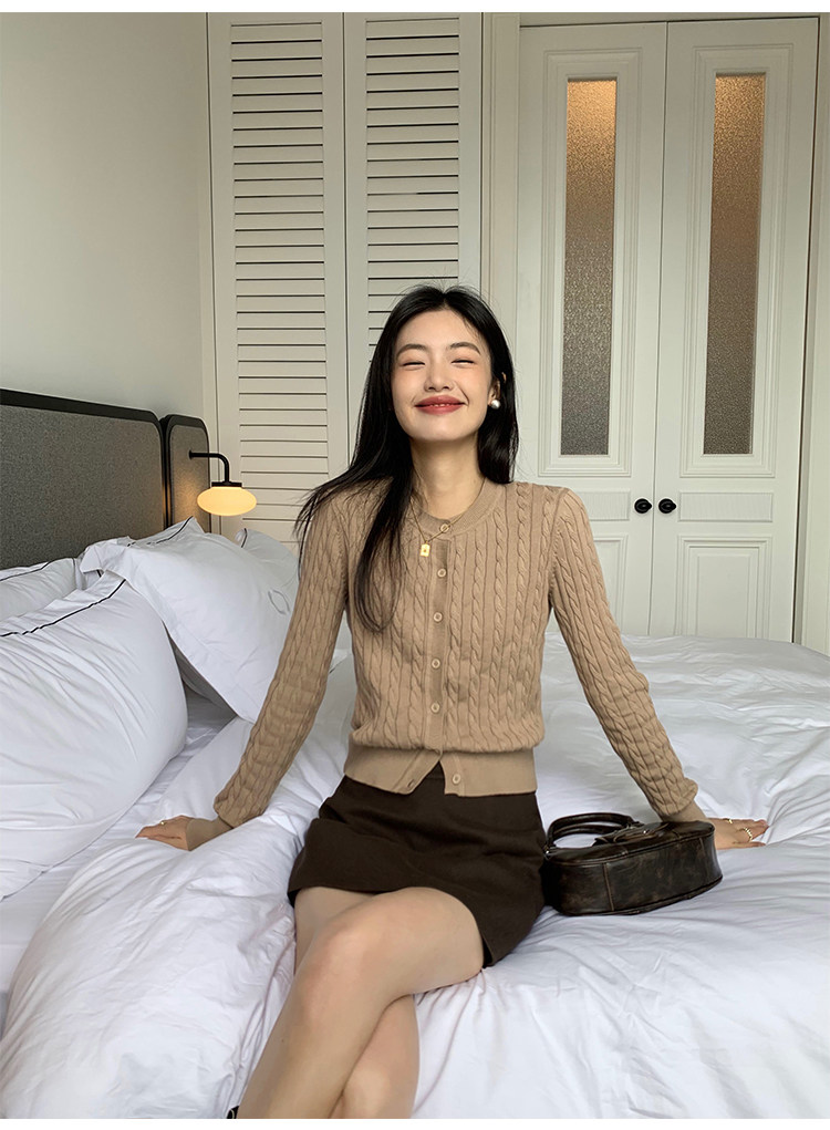 pusumede 頭號甜心 復古圓領麻花毛衣開衫外套女氣質針織衫上衣