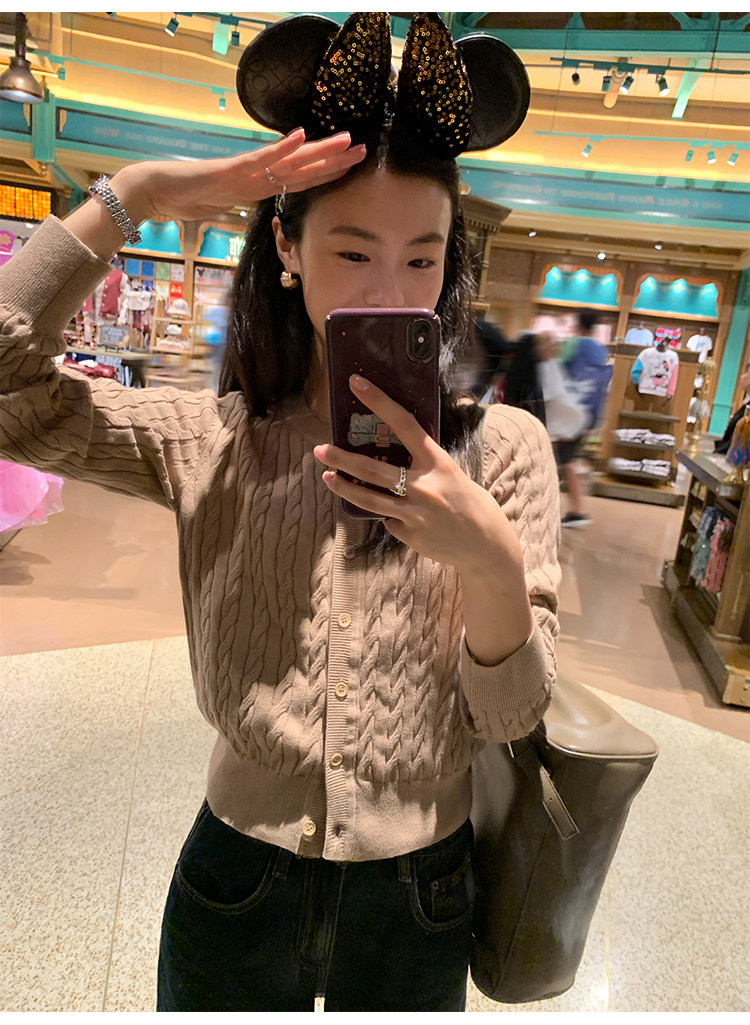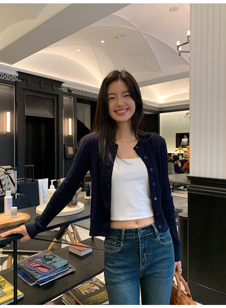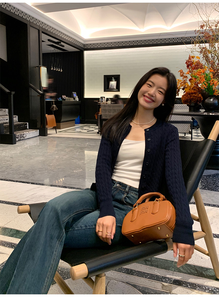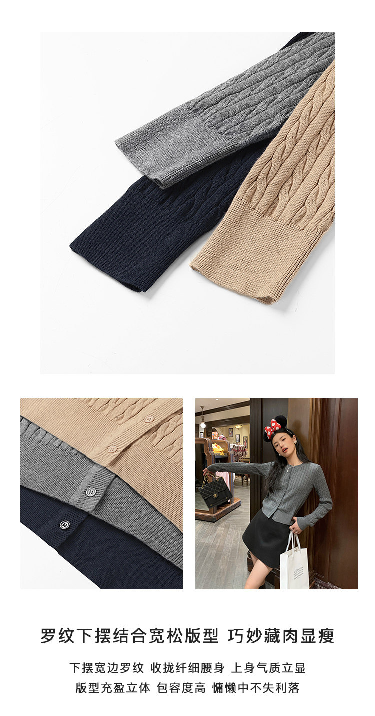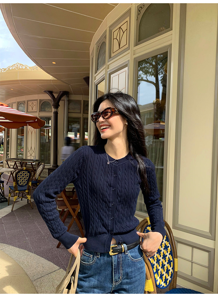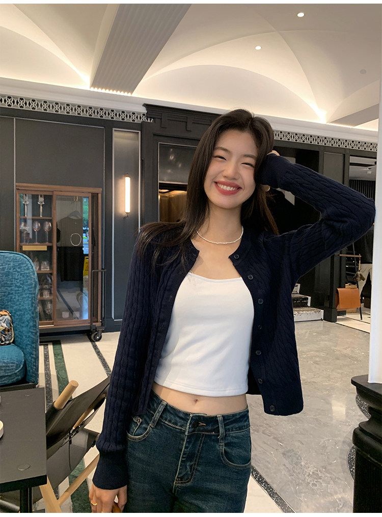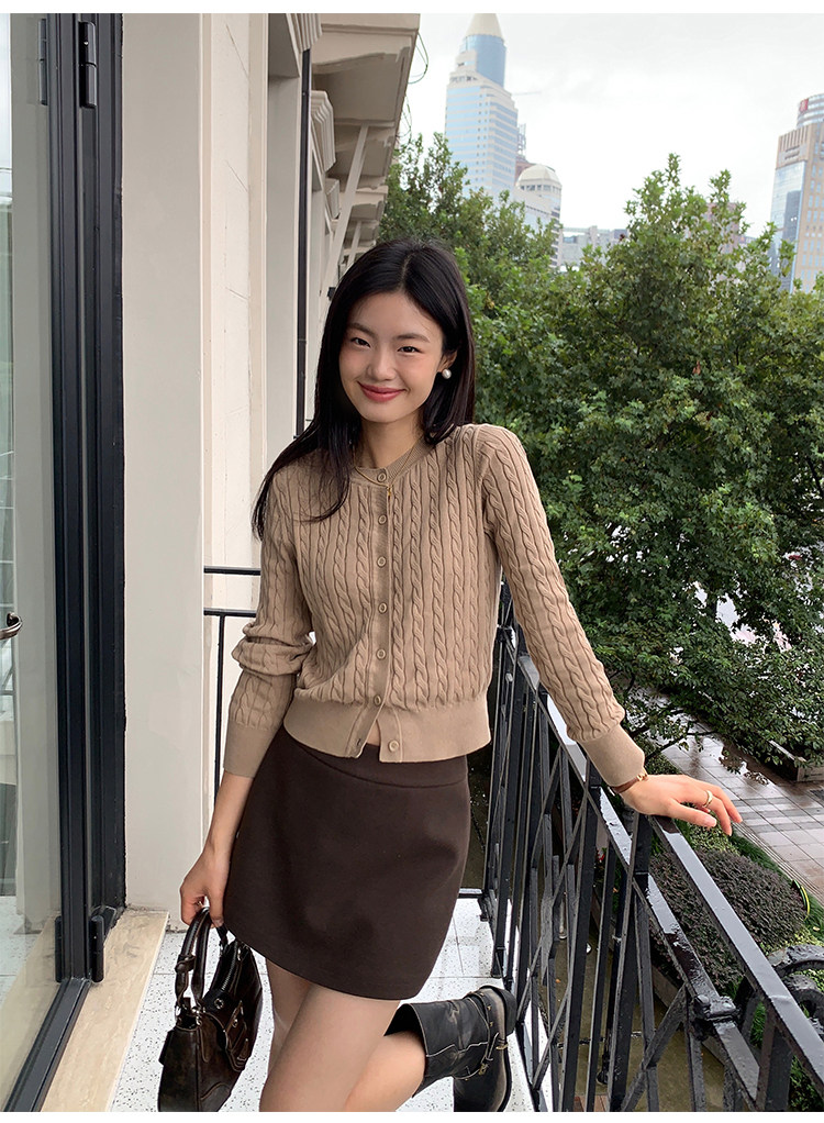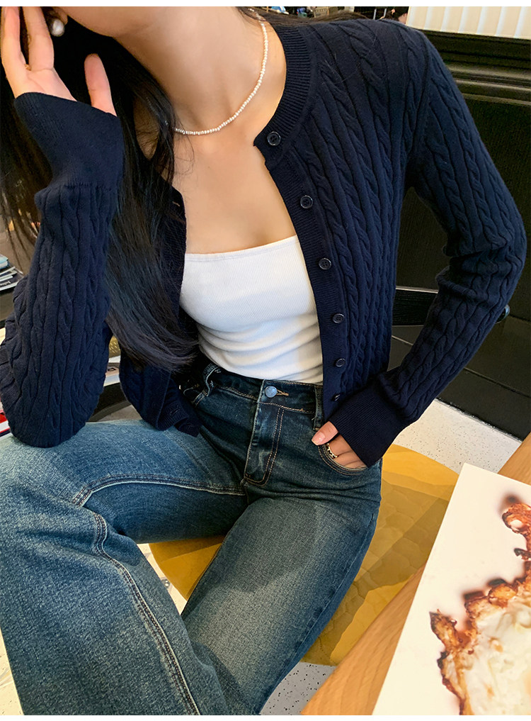 pusumede 頭號甜心 復古圓領麻花毛衣開衫外套女氣質針織衫上衣