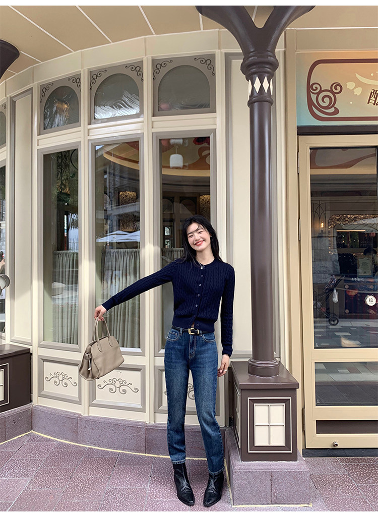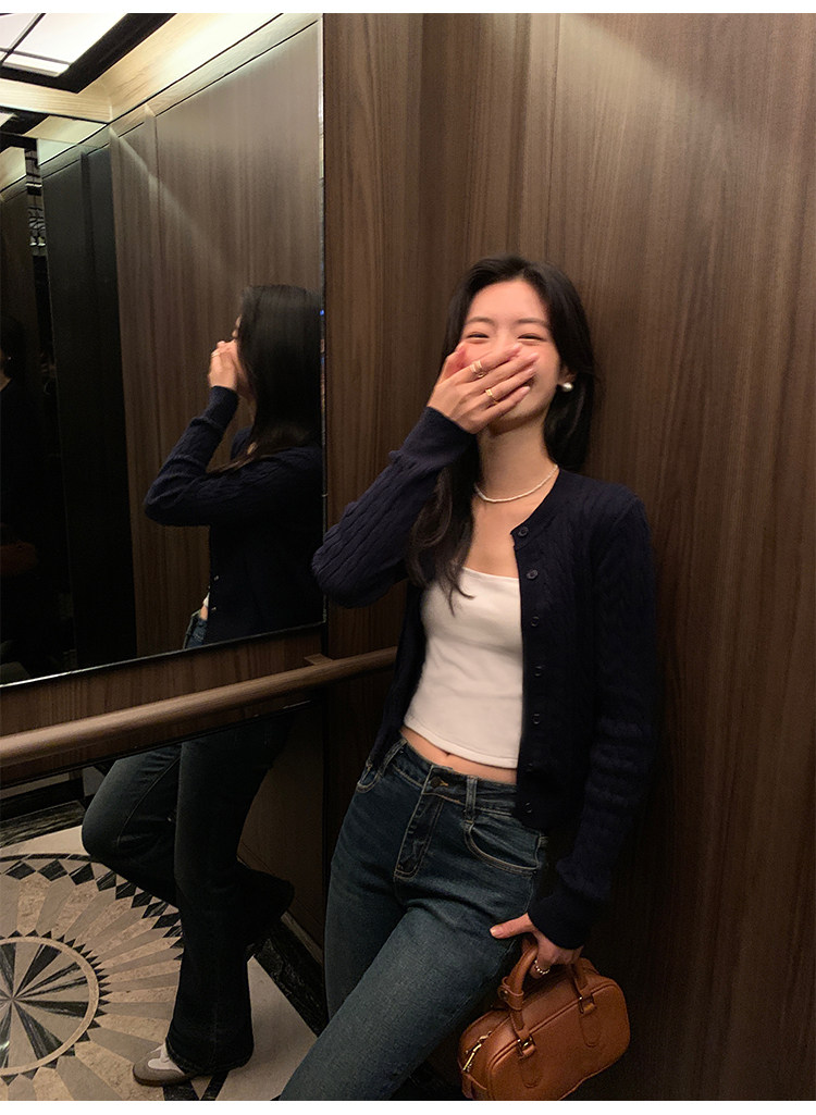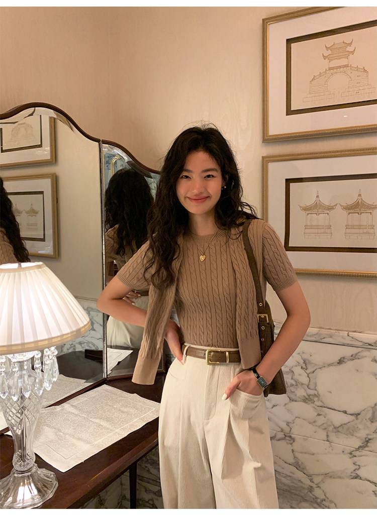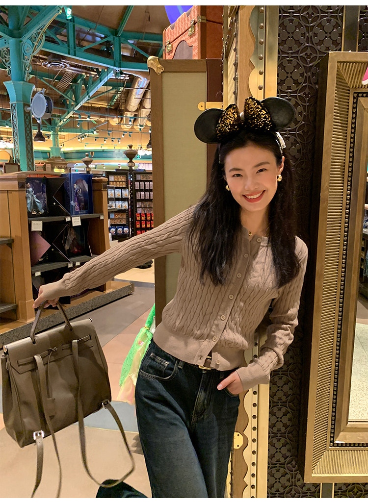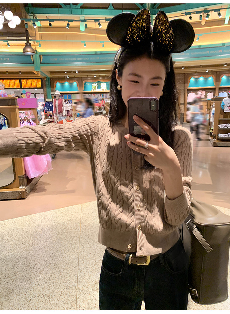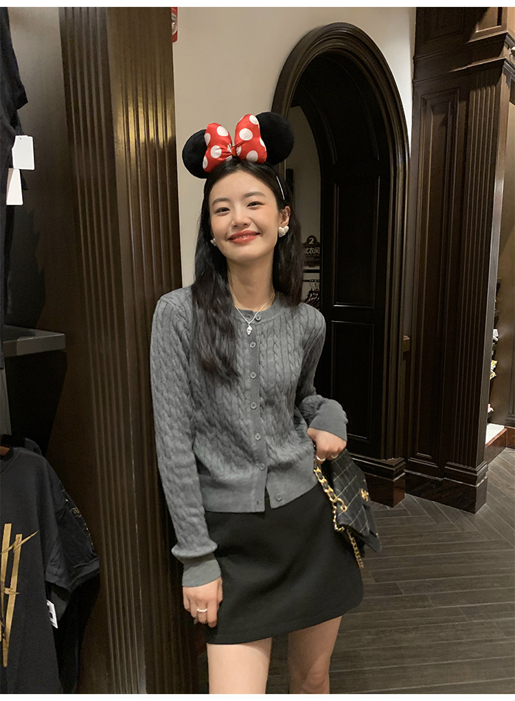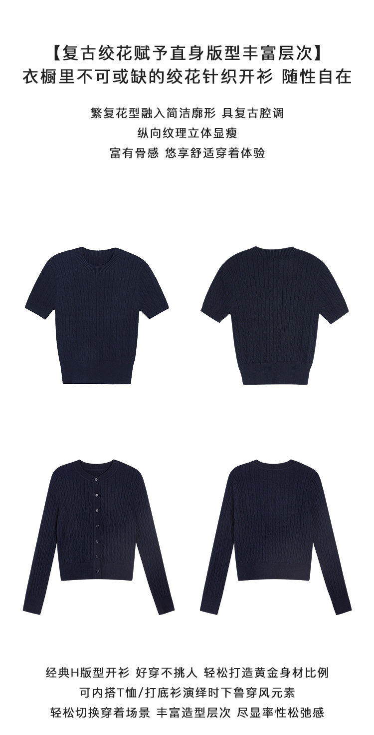 pusumede 頭號甜心 復古圓領麻花毛衣開衫外套女氣質針織衫上衣