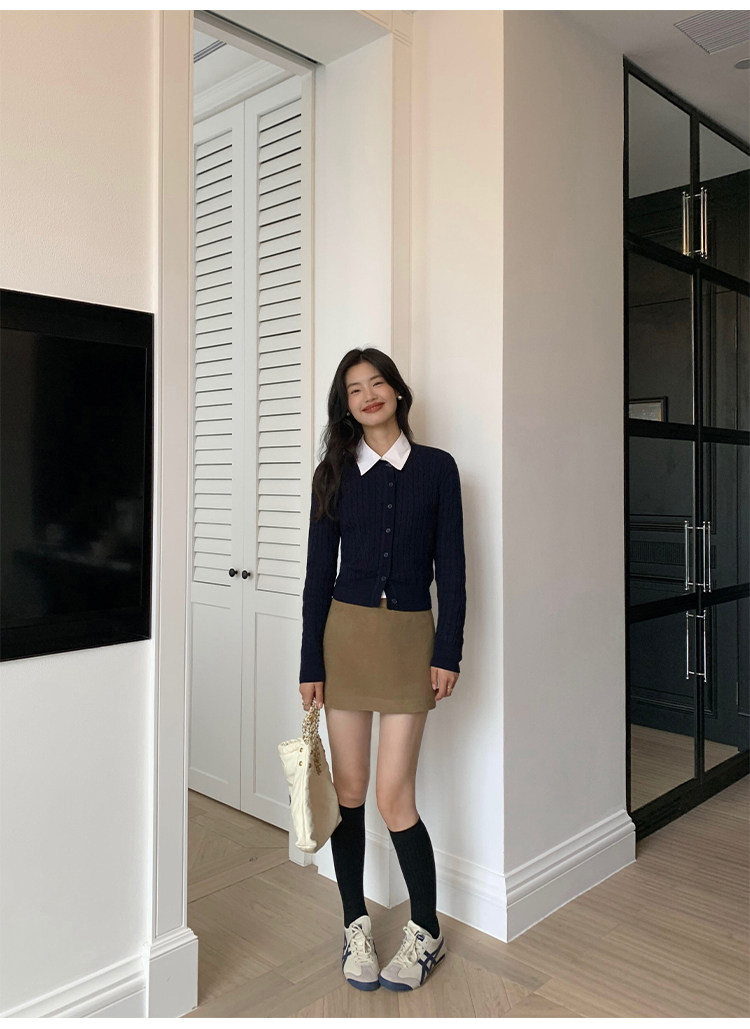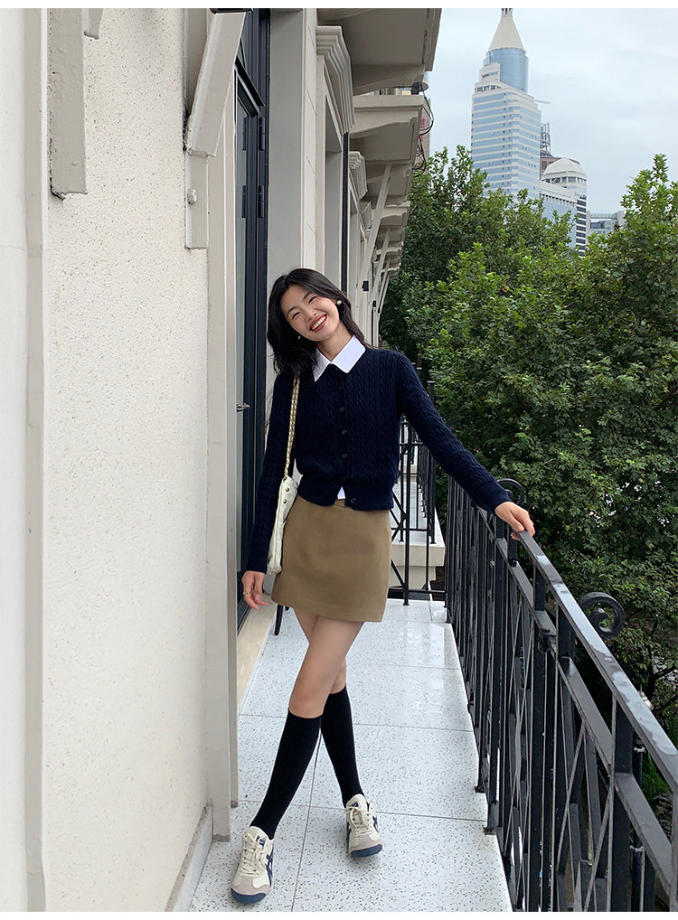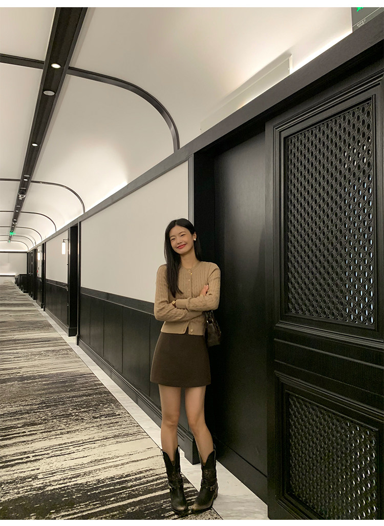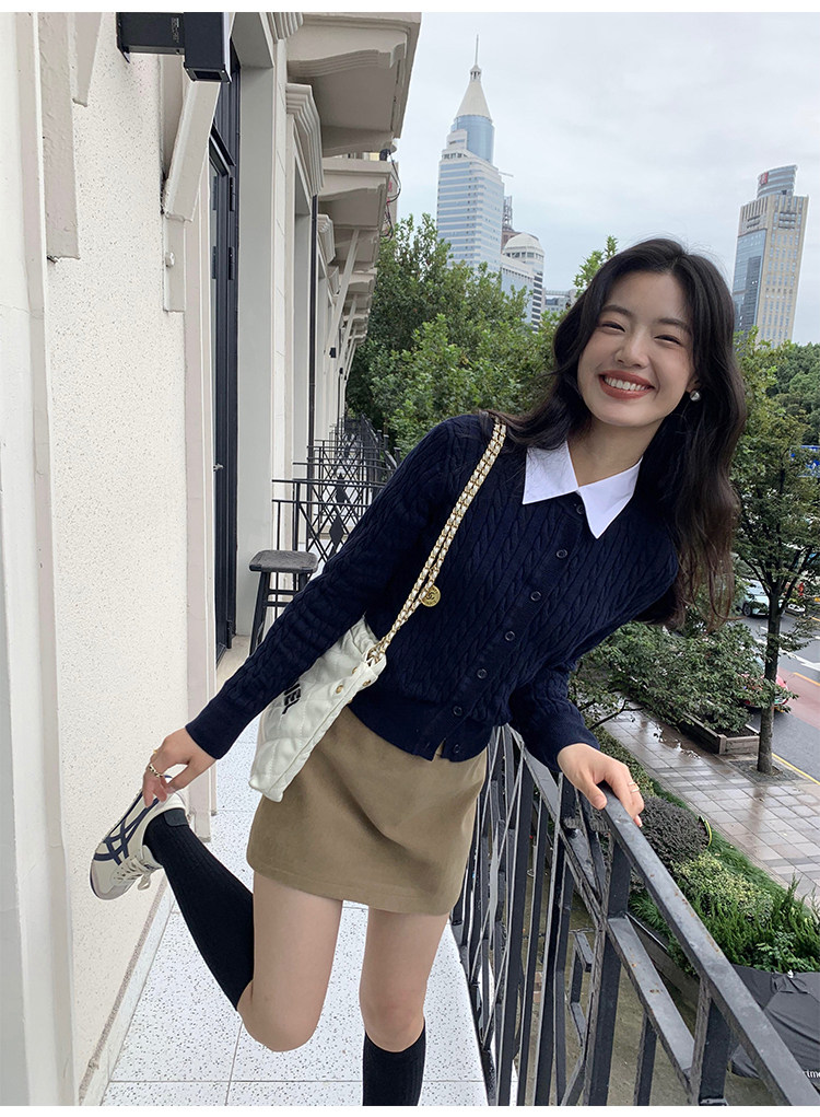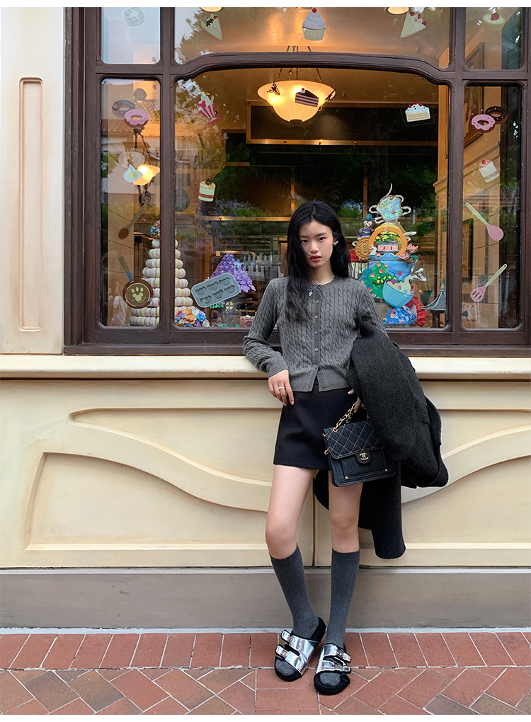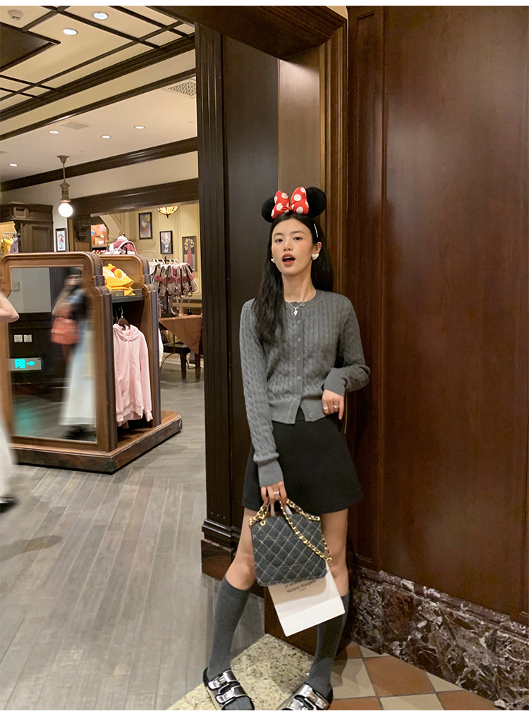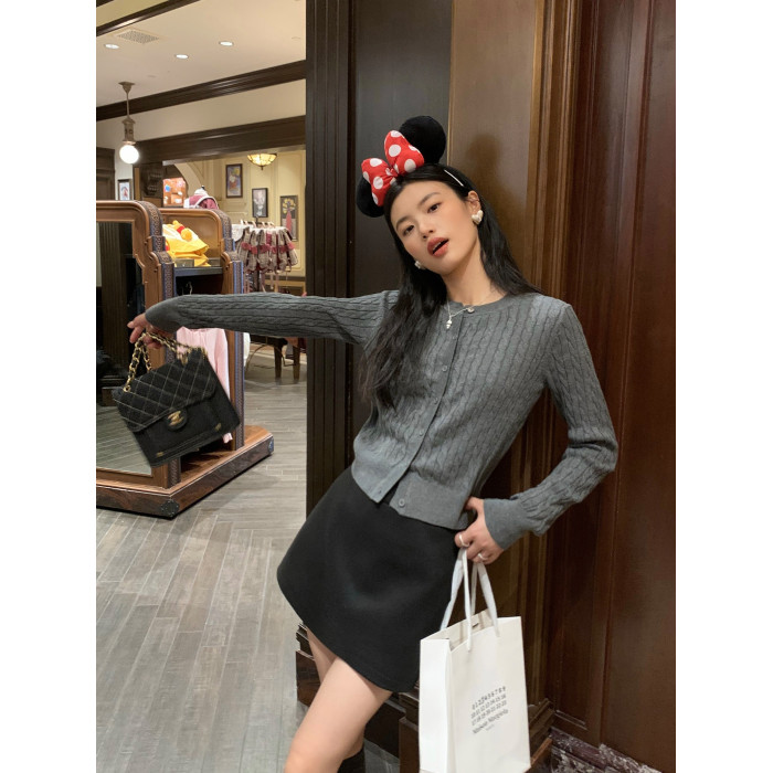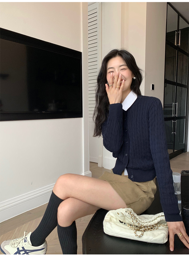 pusumede 頭號甜心 復古圓領麻花毛衣開衫外套女氣質針織衫上衣