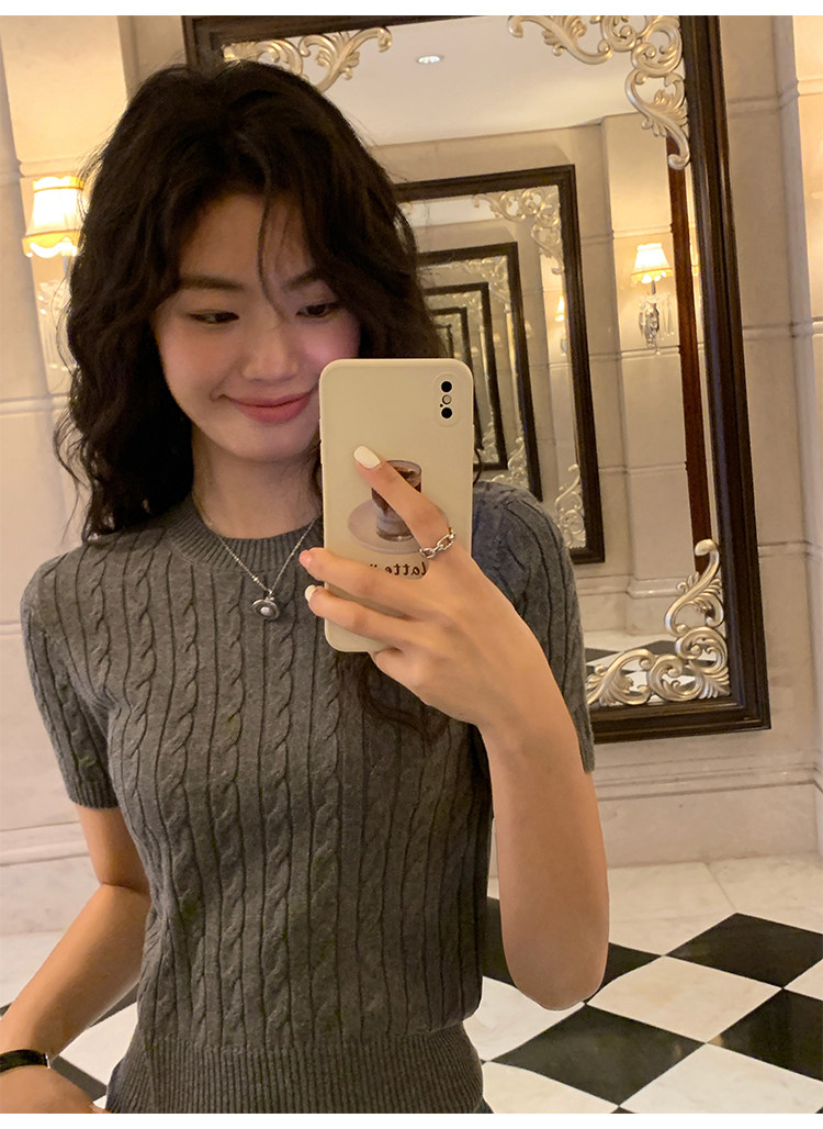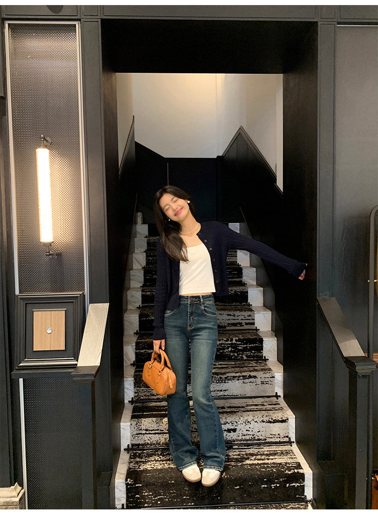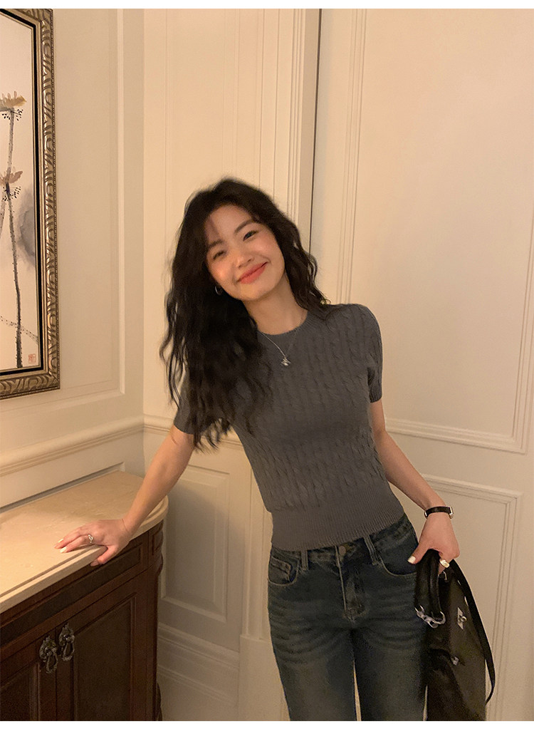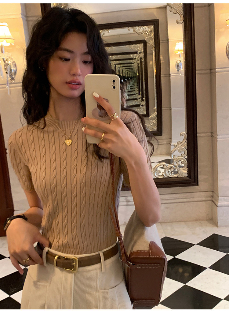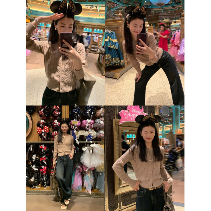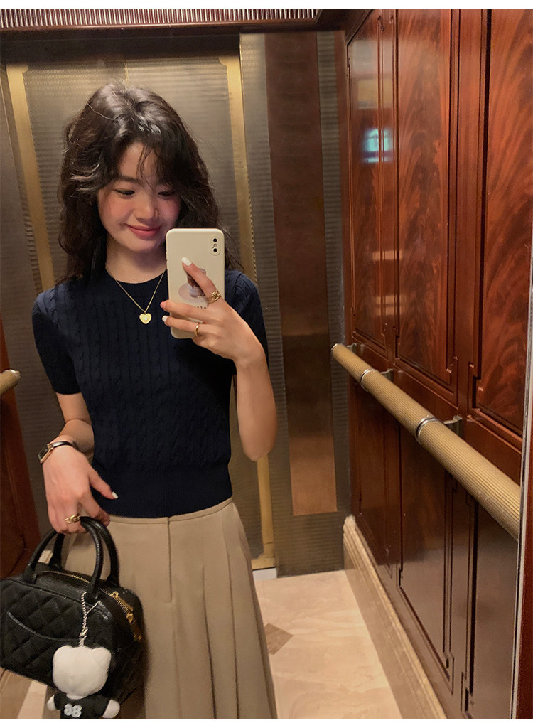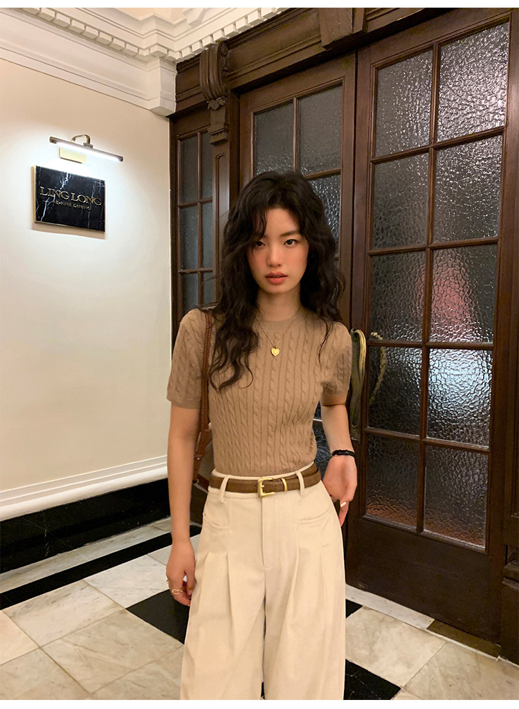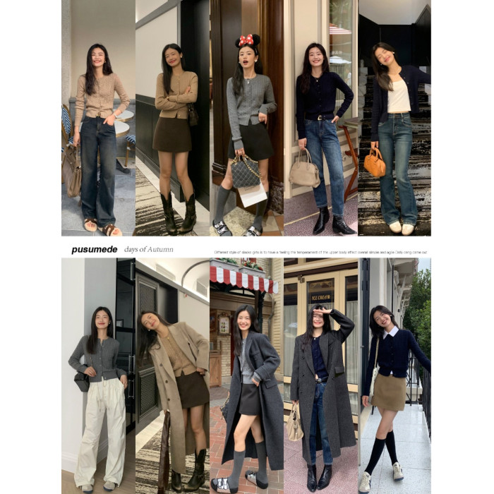 pusumede 頭號甜心 復古圓領麻花毛衣開衫外套女氣質針織衫上衣