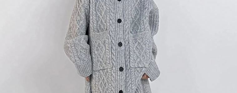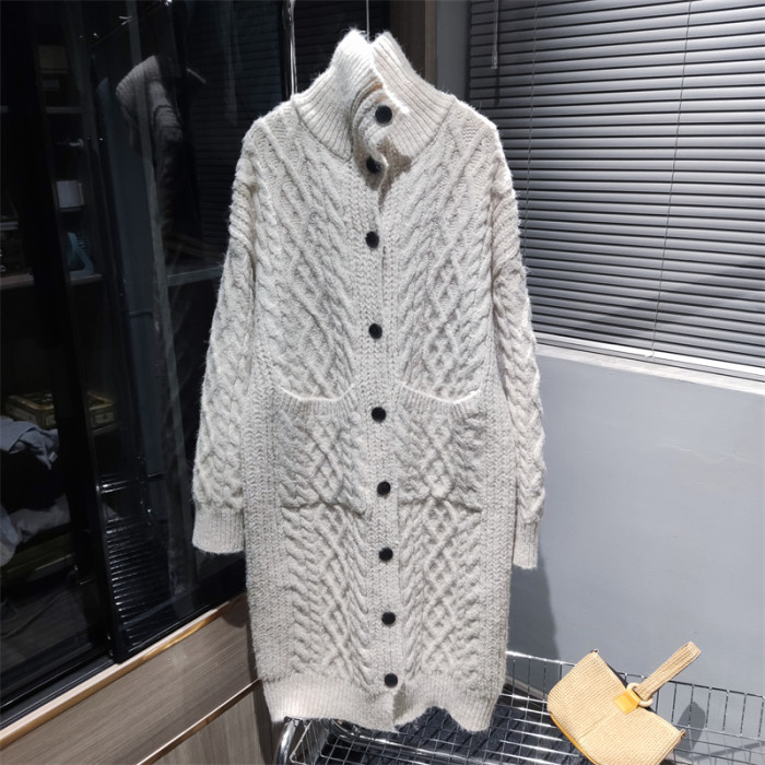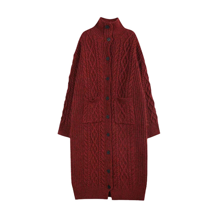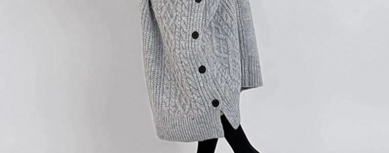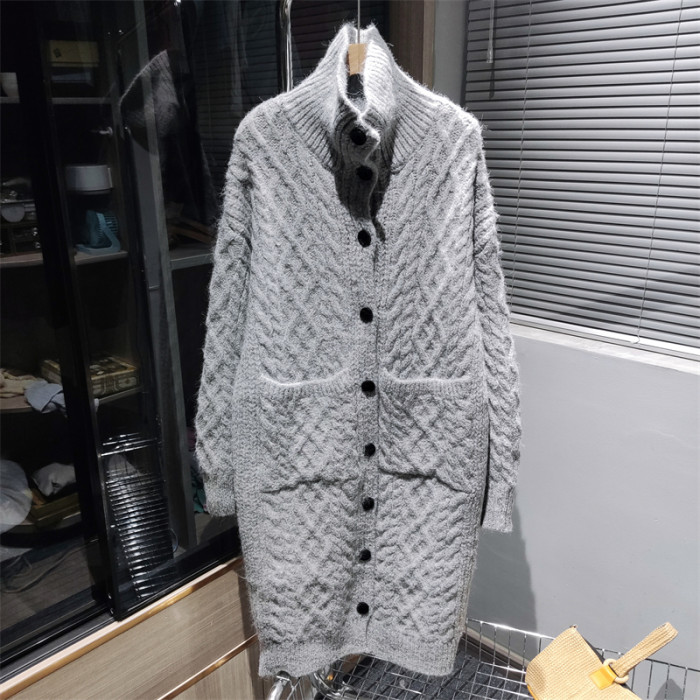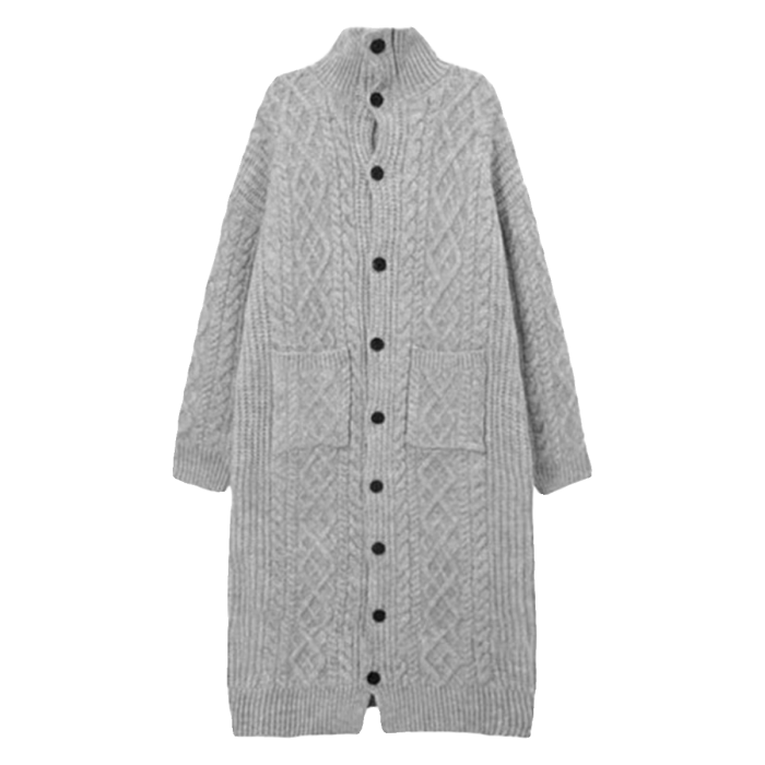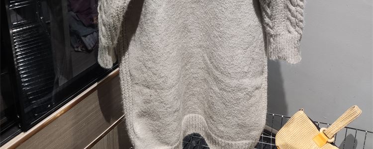 長款開衫大衣灰色慵懶大毛衣裙女秋冬過膝高領大碼針織連衣裙加厚