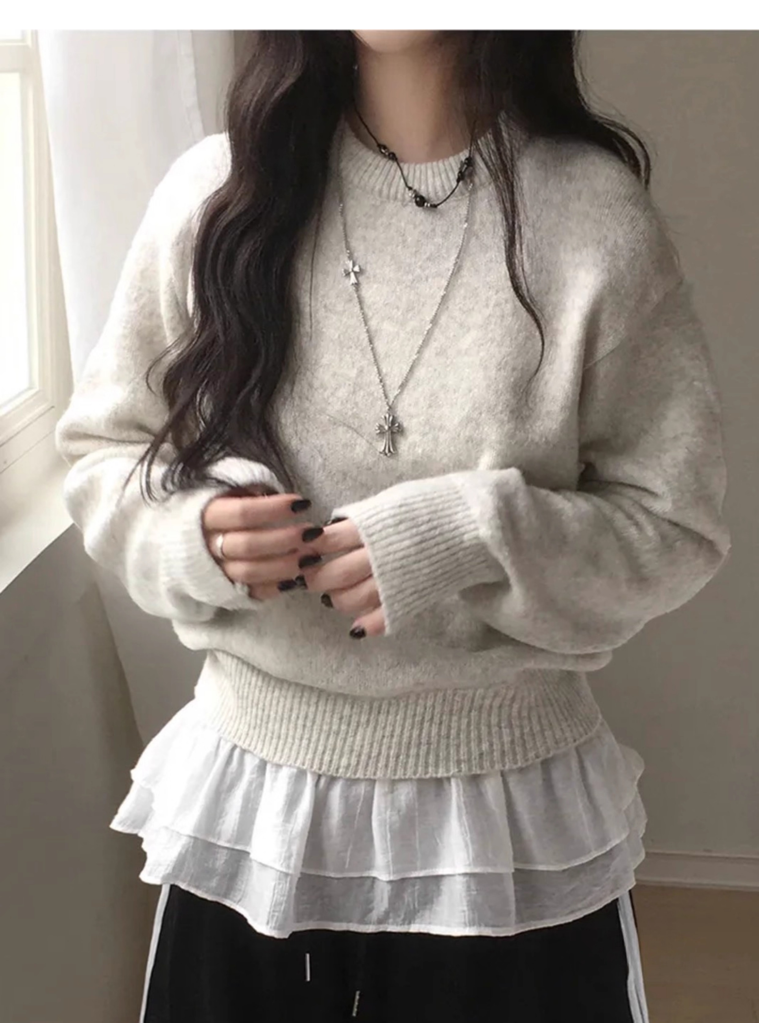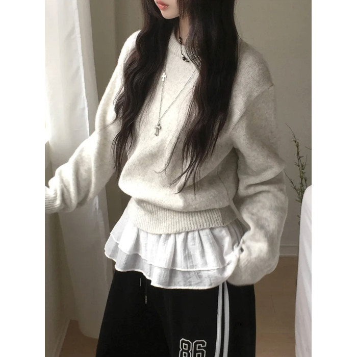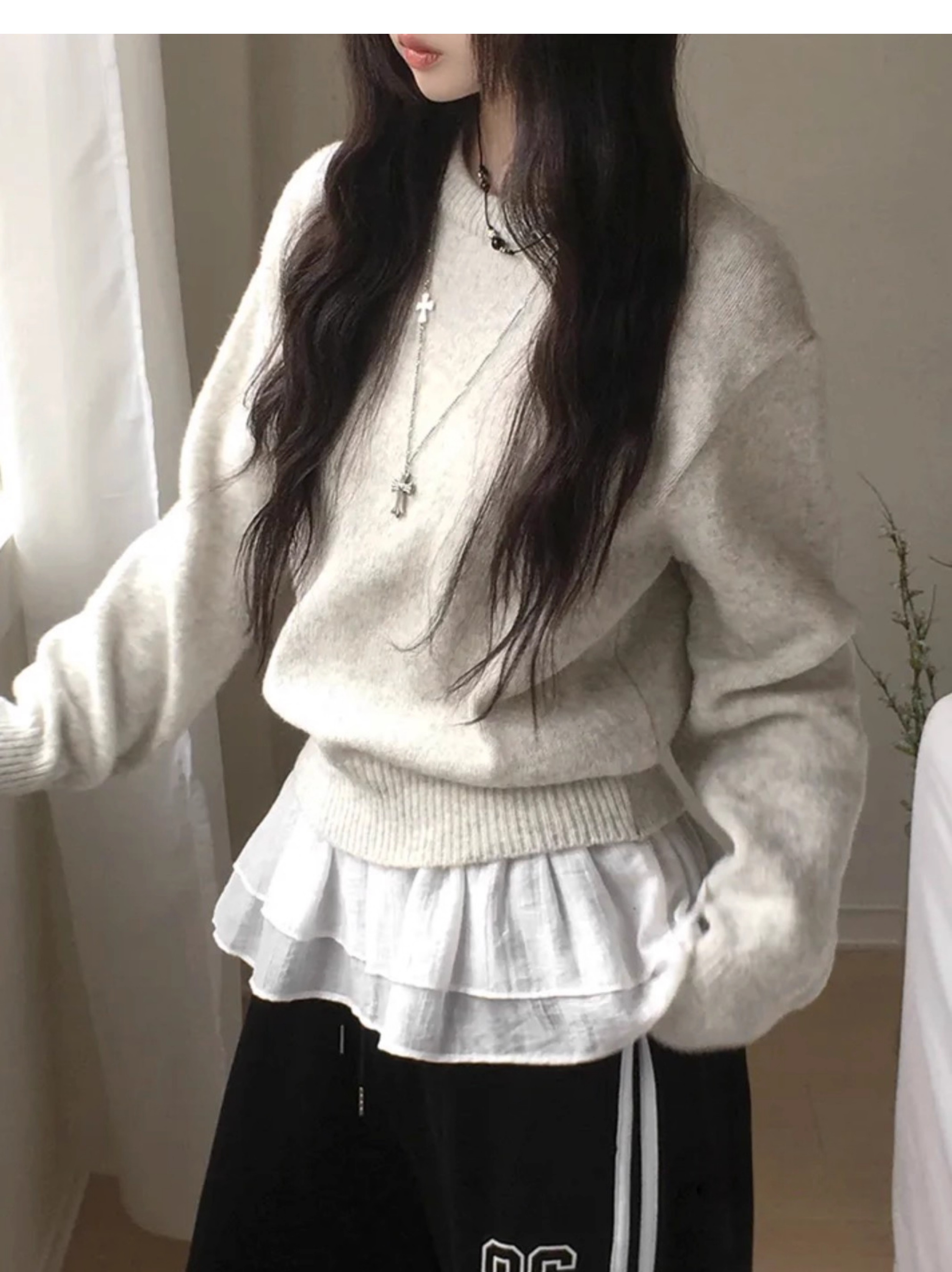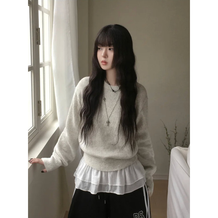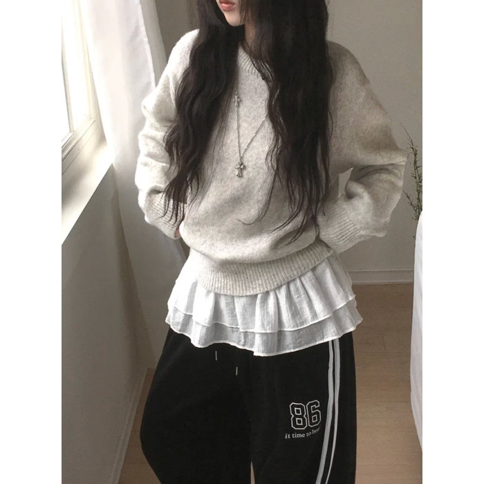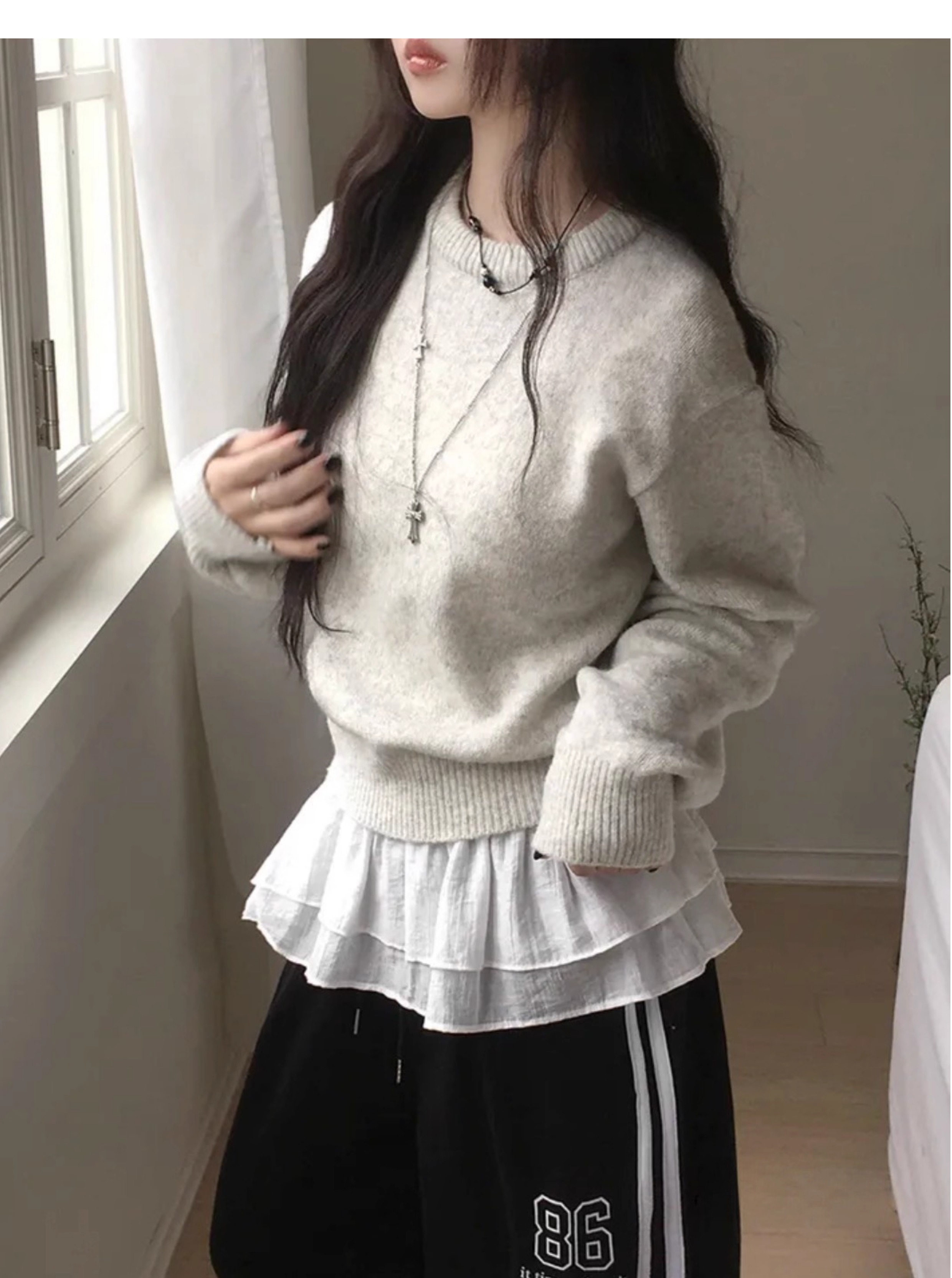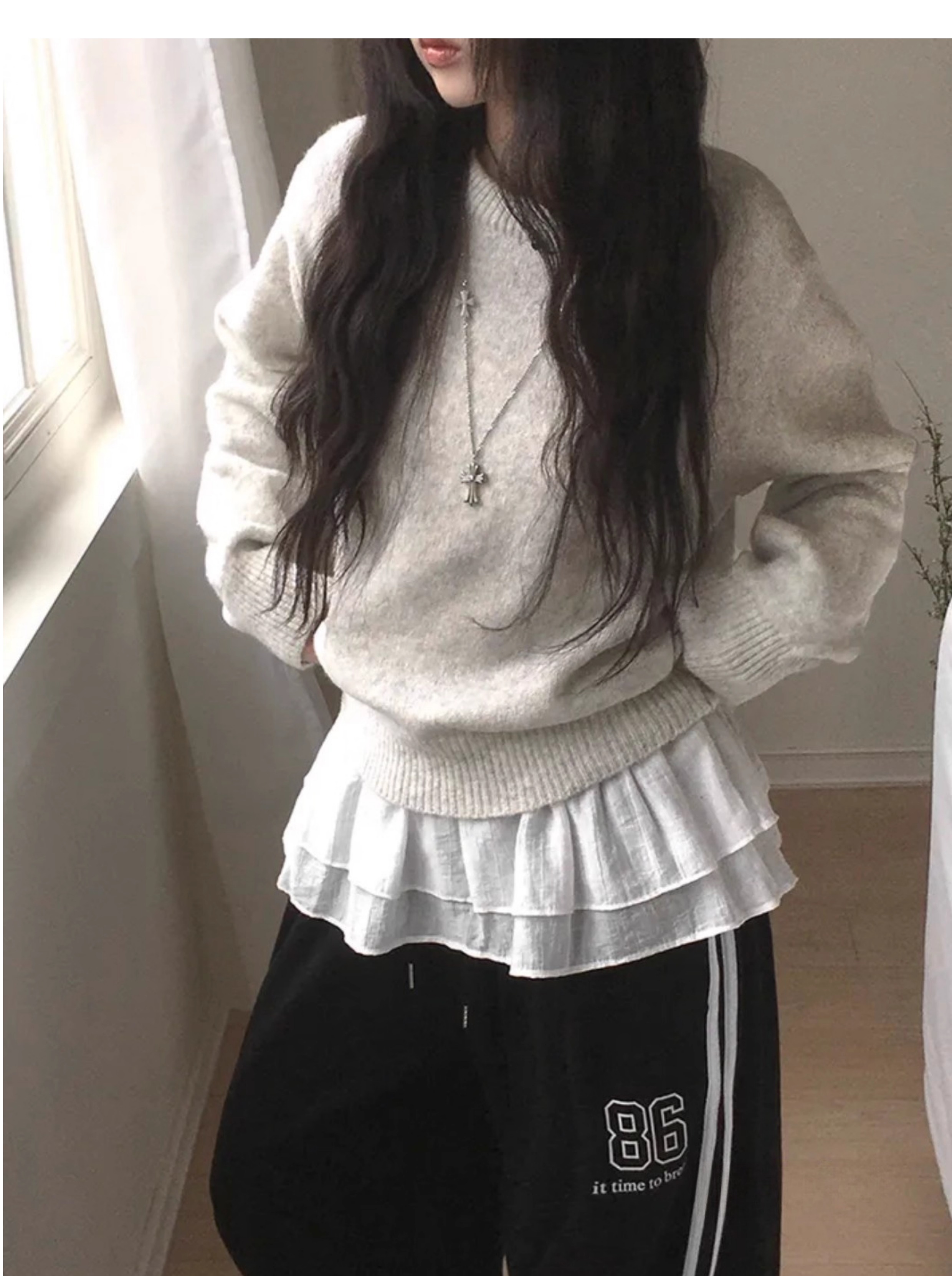 Up and on 韓系慵懶基本款純色休閒百搭寬松圓領長袖針織衫毛衣