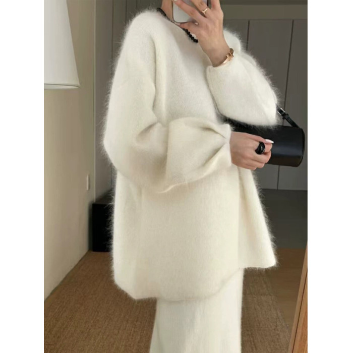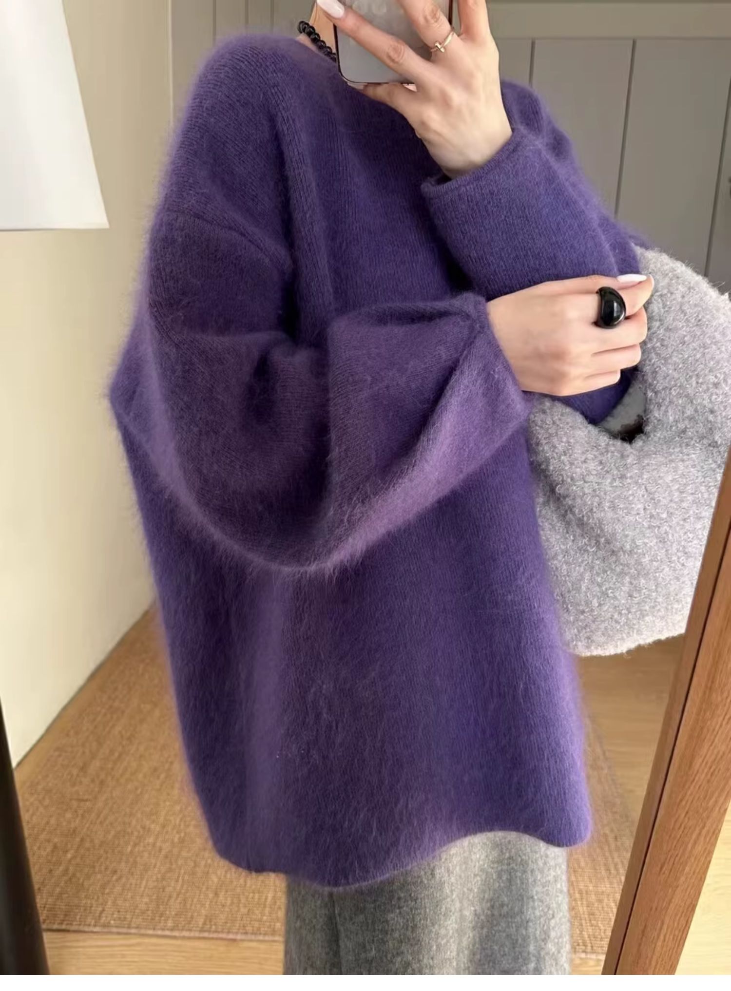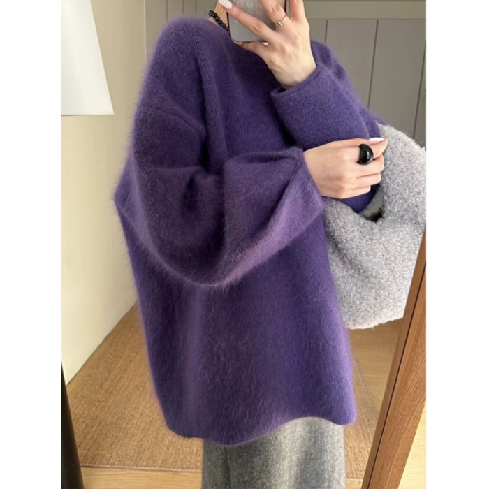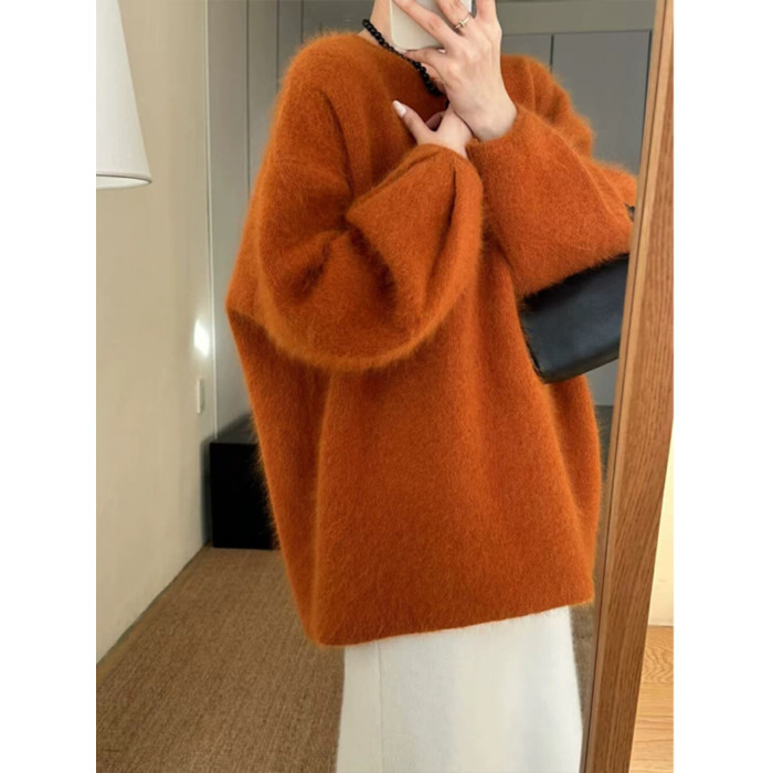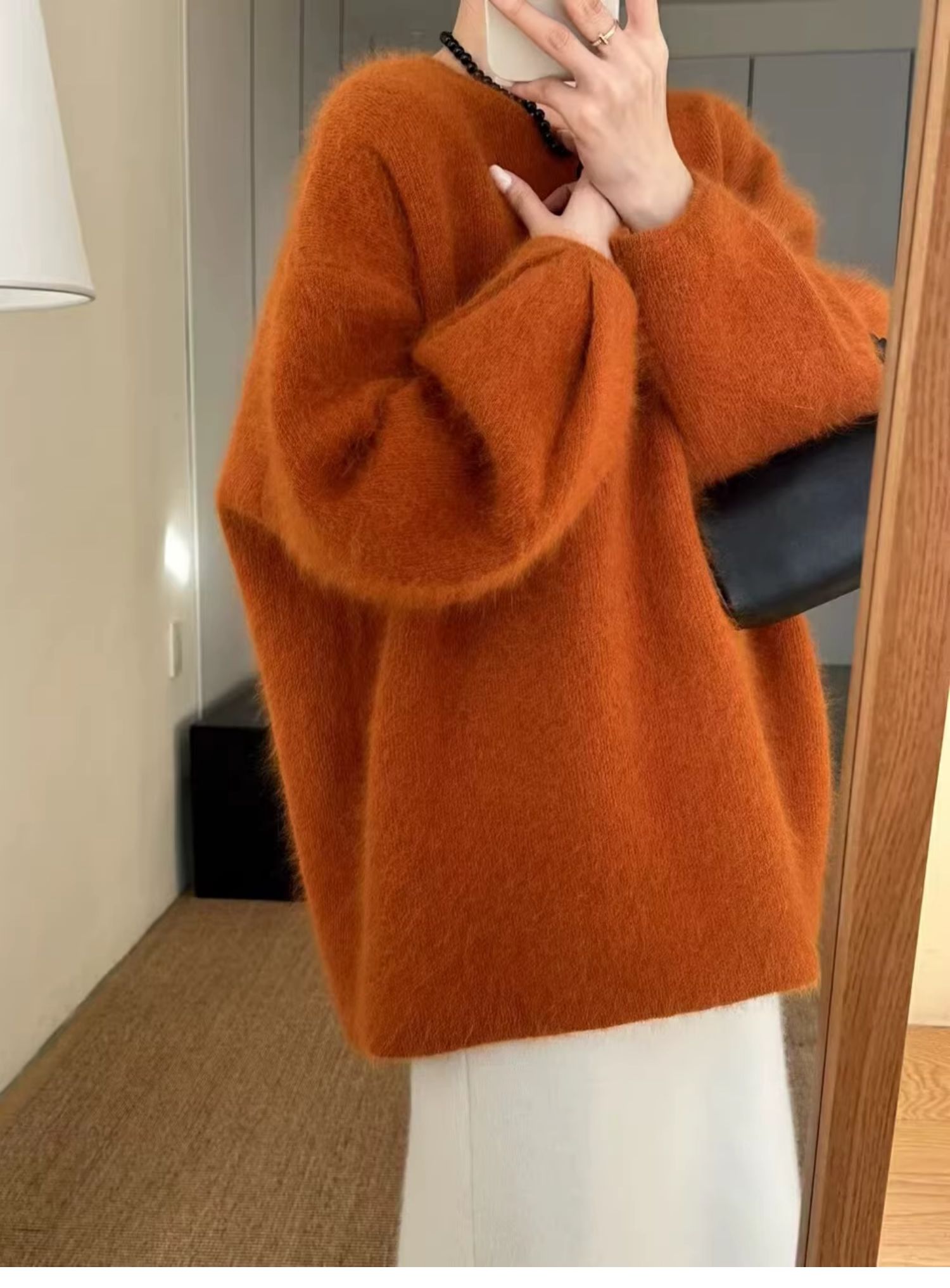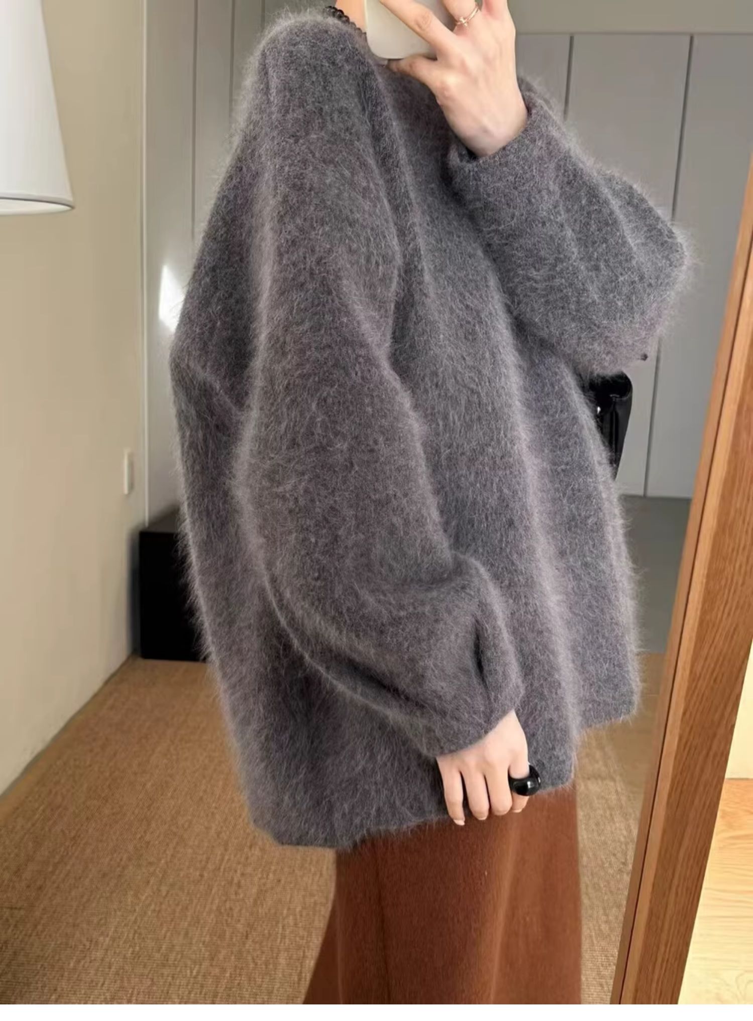 新年紅色後背釦子軟糯毛衣女秋冬外穿寬松針織開衫外套慵懶風上衣