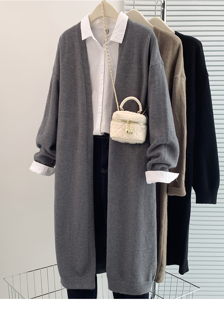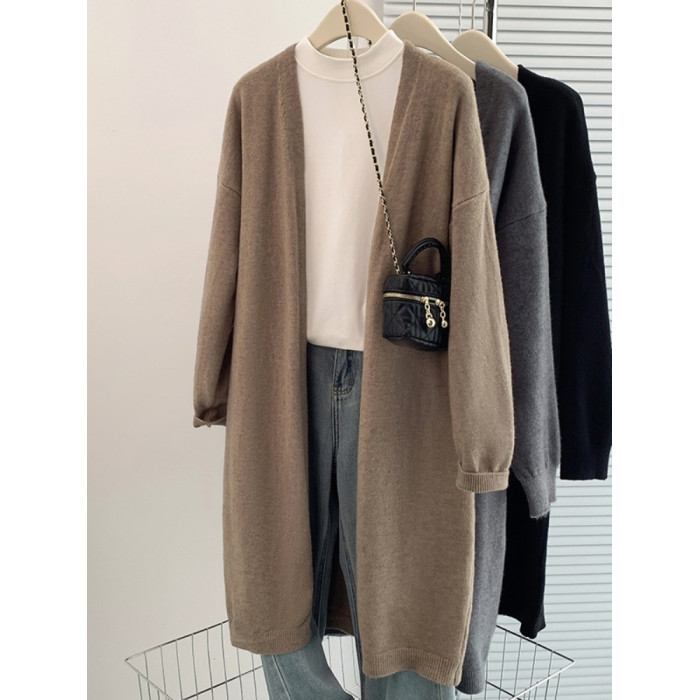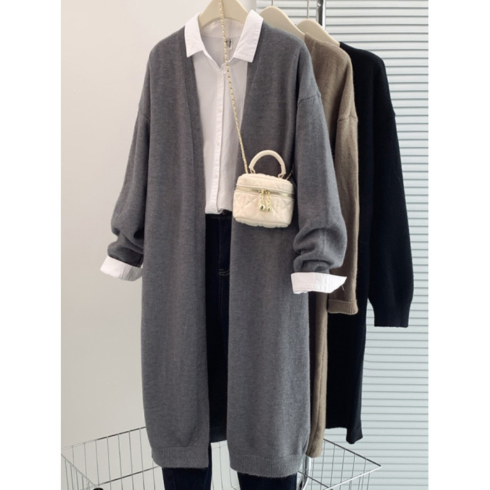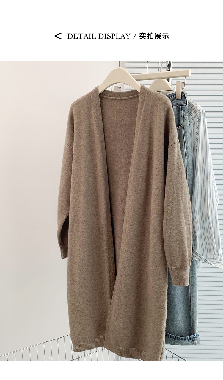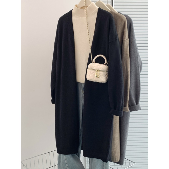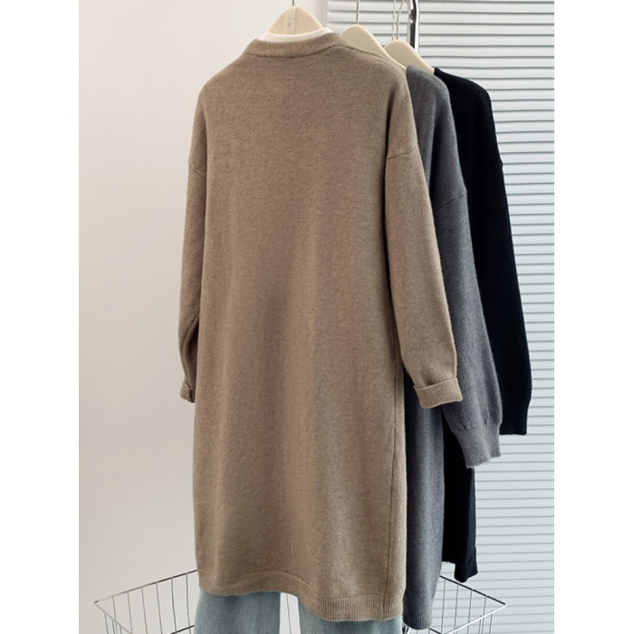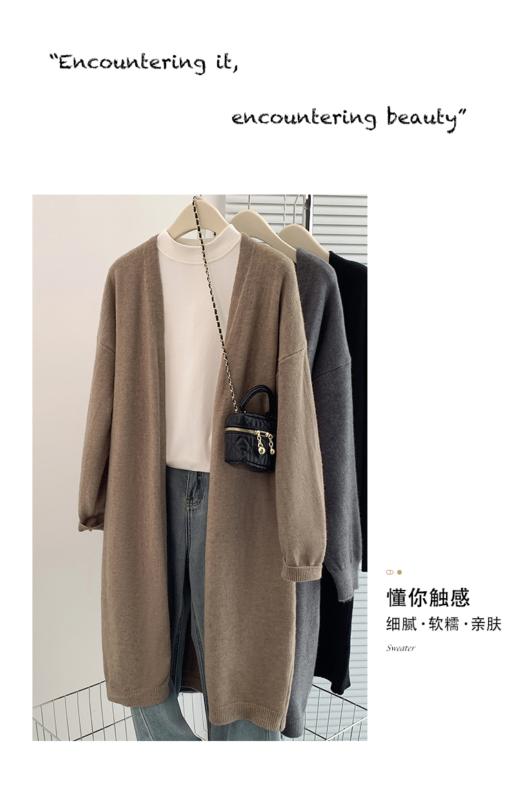 純色簡約軟糯毛衣針織開衫女秋季中長款慵懶休閒無釦寬松風衣外套