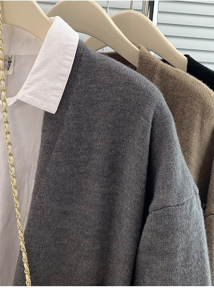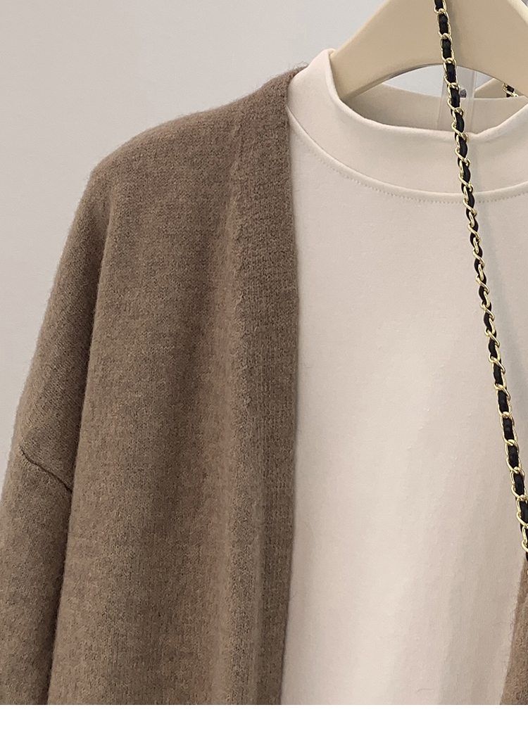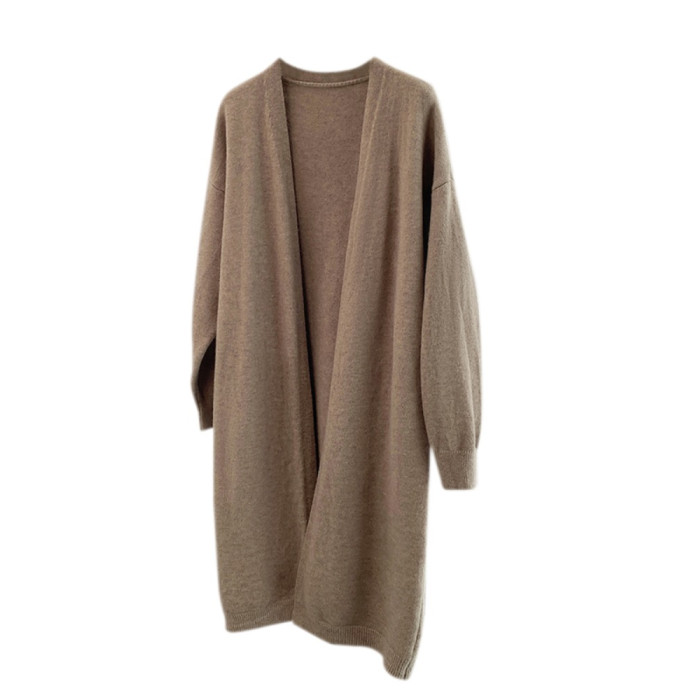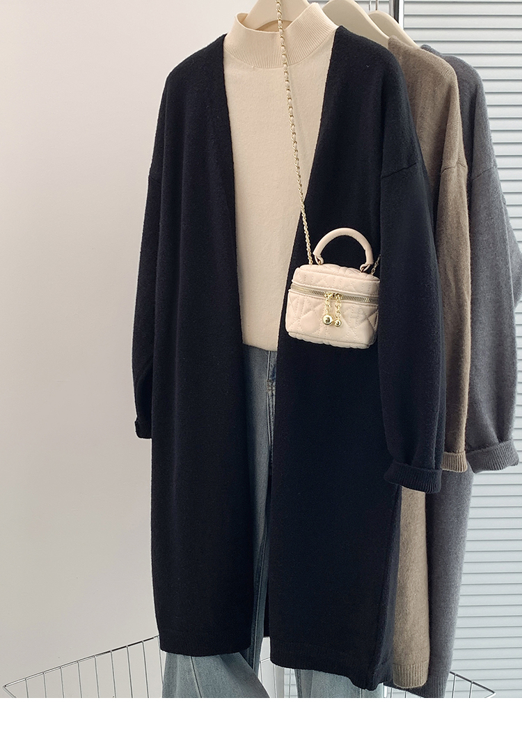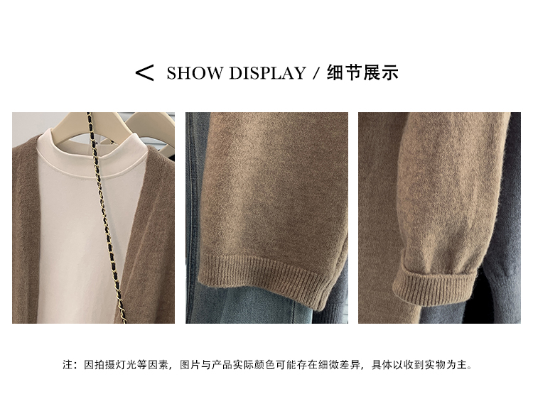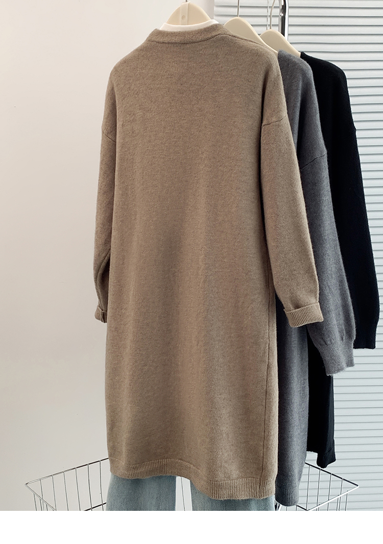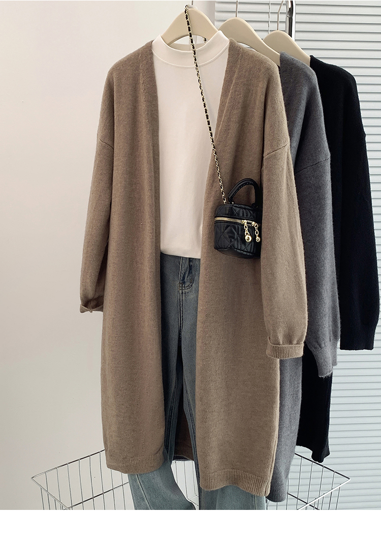 純色簡約軟糯毛衣針織開衫女秋季中長款慵懶休閒無釦寬松風衣外套