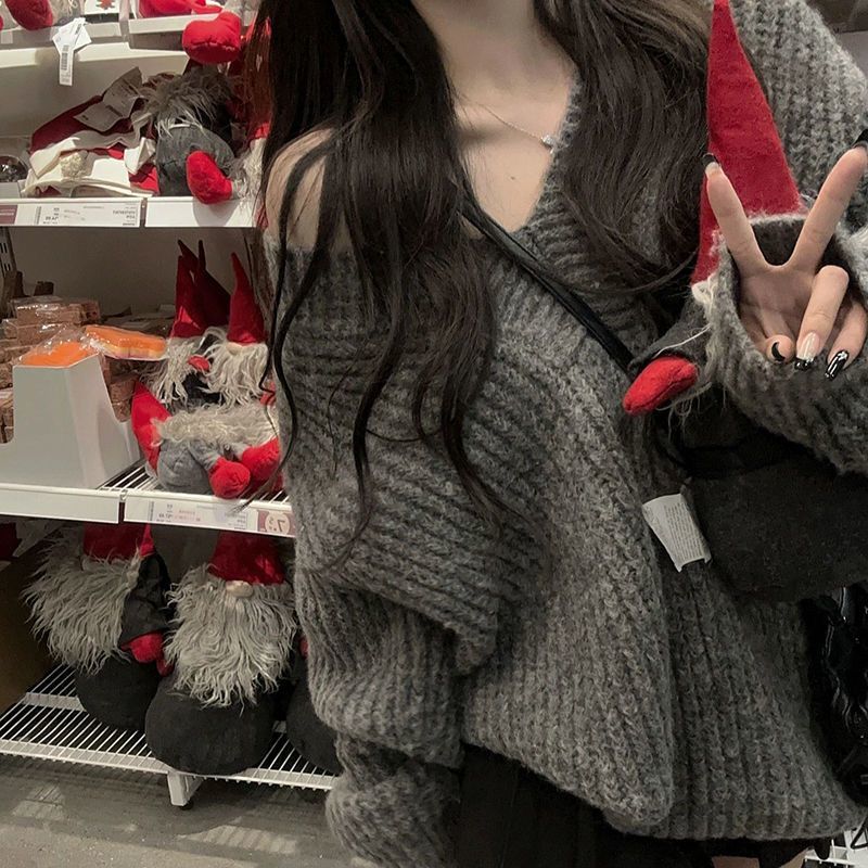 胖MM200斤特大碼套裝女新款慵懶風寬松V領針織長袖毛衣百褶短裙