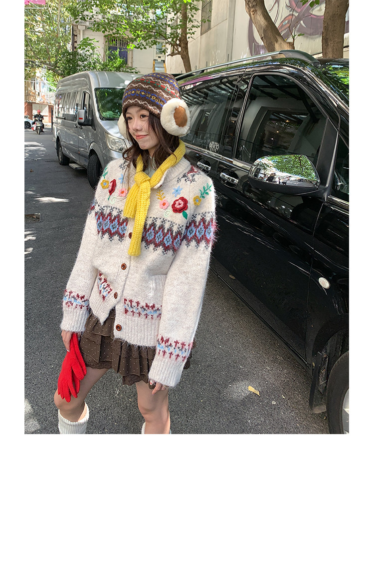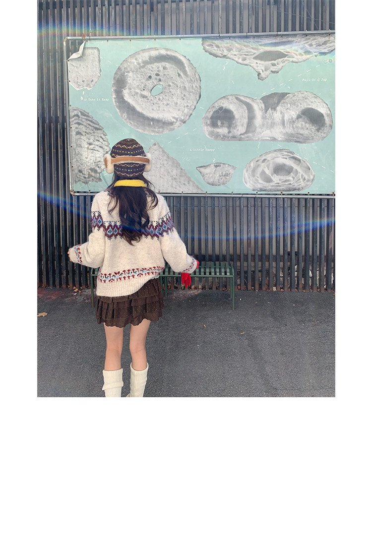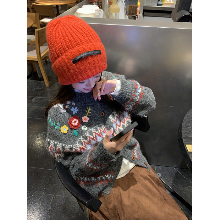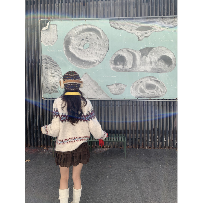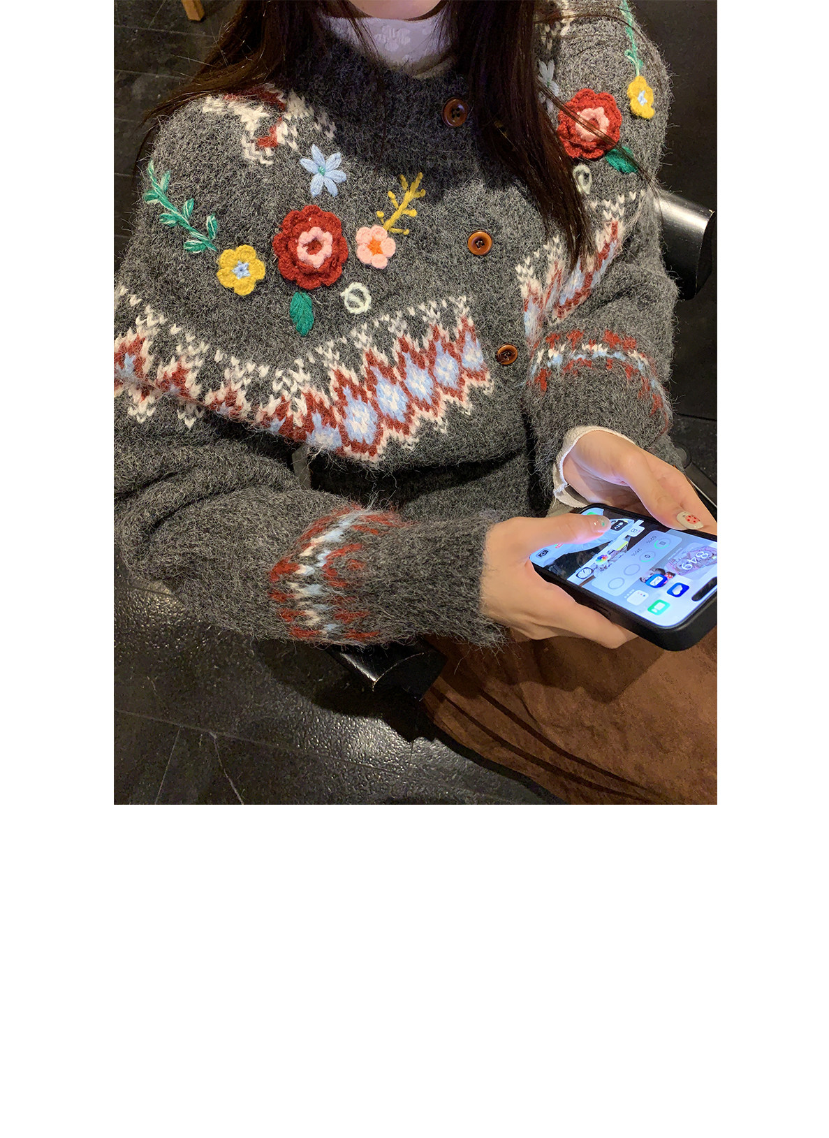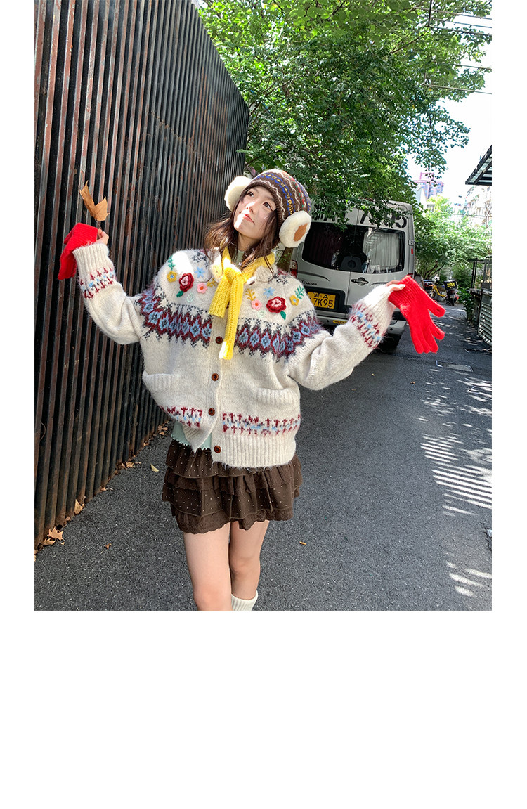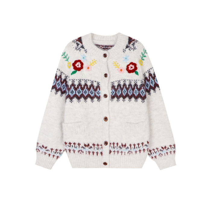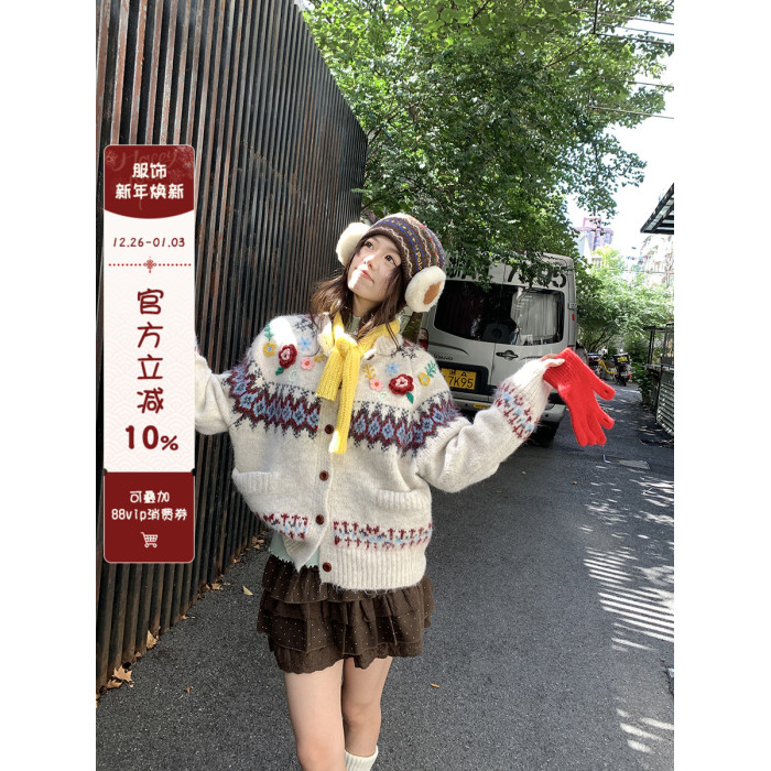 馨幫幫 慵嬾松弛感費爾島毛衣外套女秋冬季手工鉤花加厚針織開衫