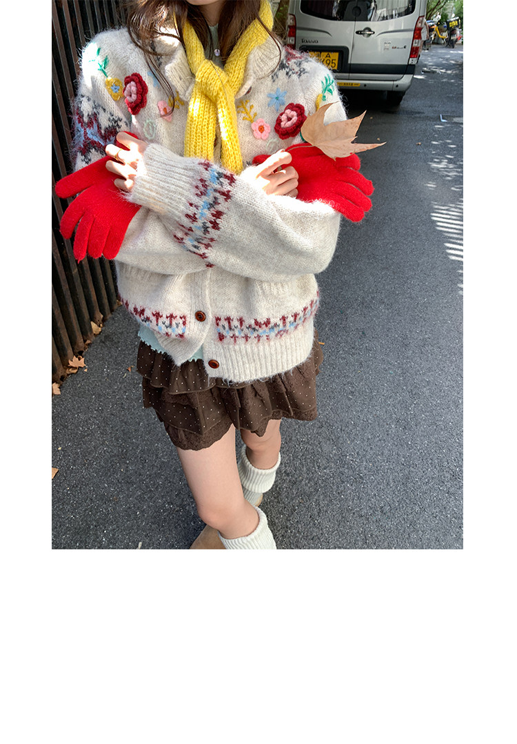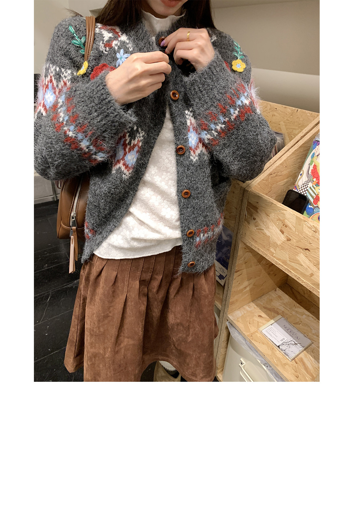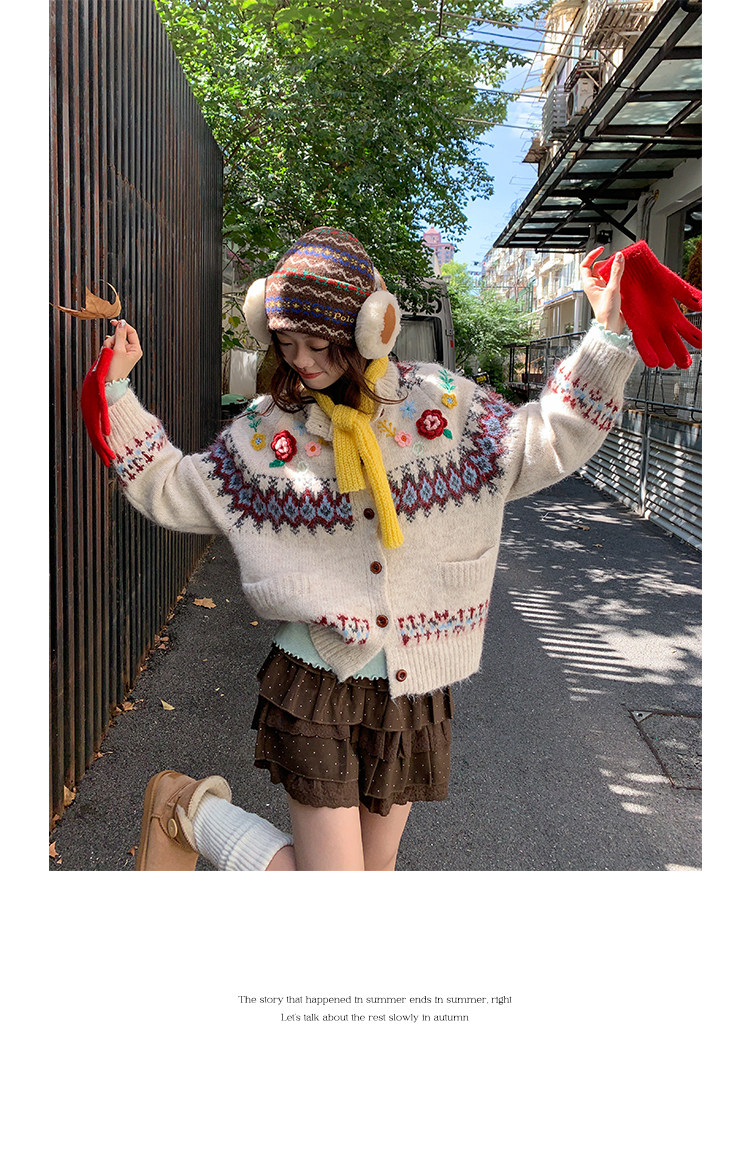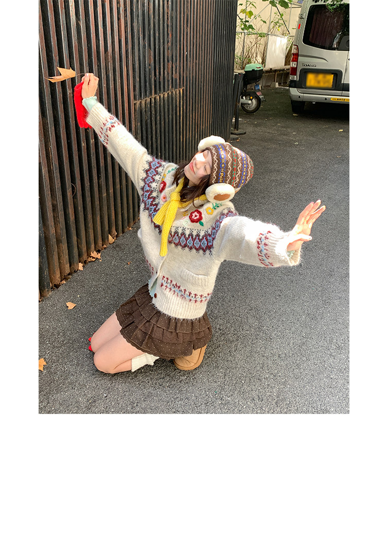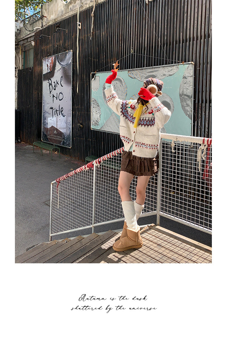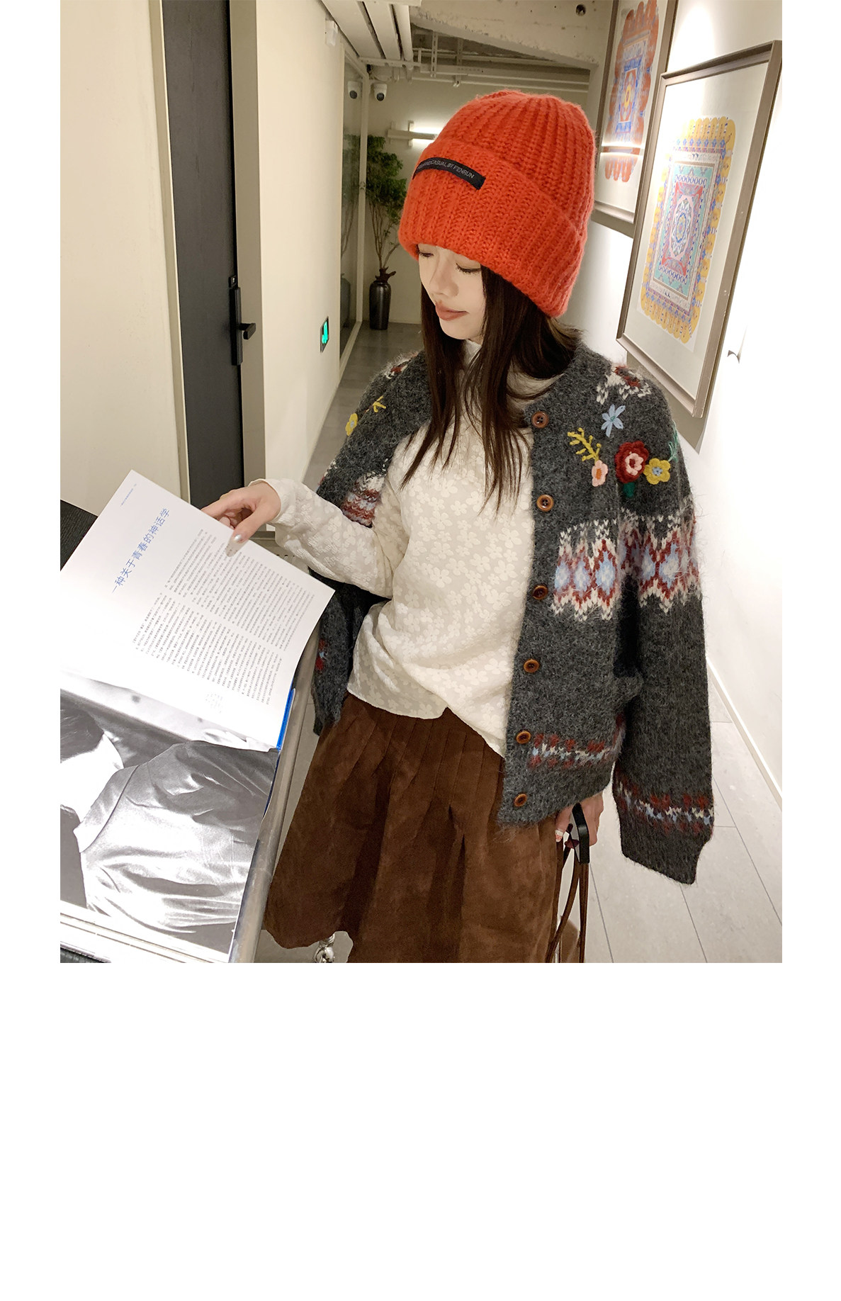 馨幫幫 慵嬾松弛感費爾島毛衣外套女秋冬季手工鉤花加厚針織開衫