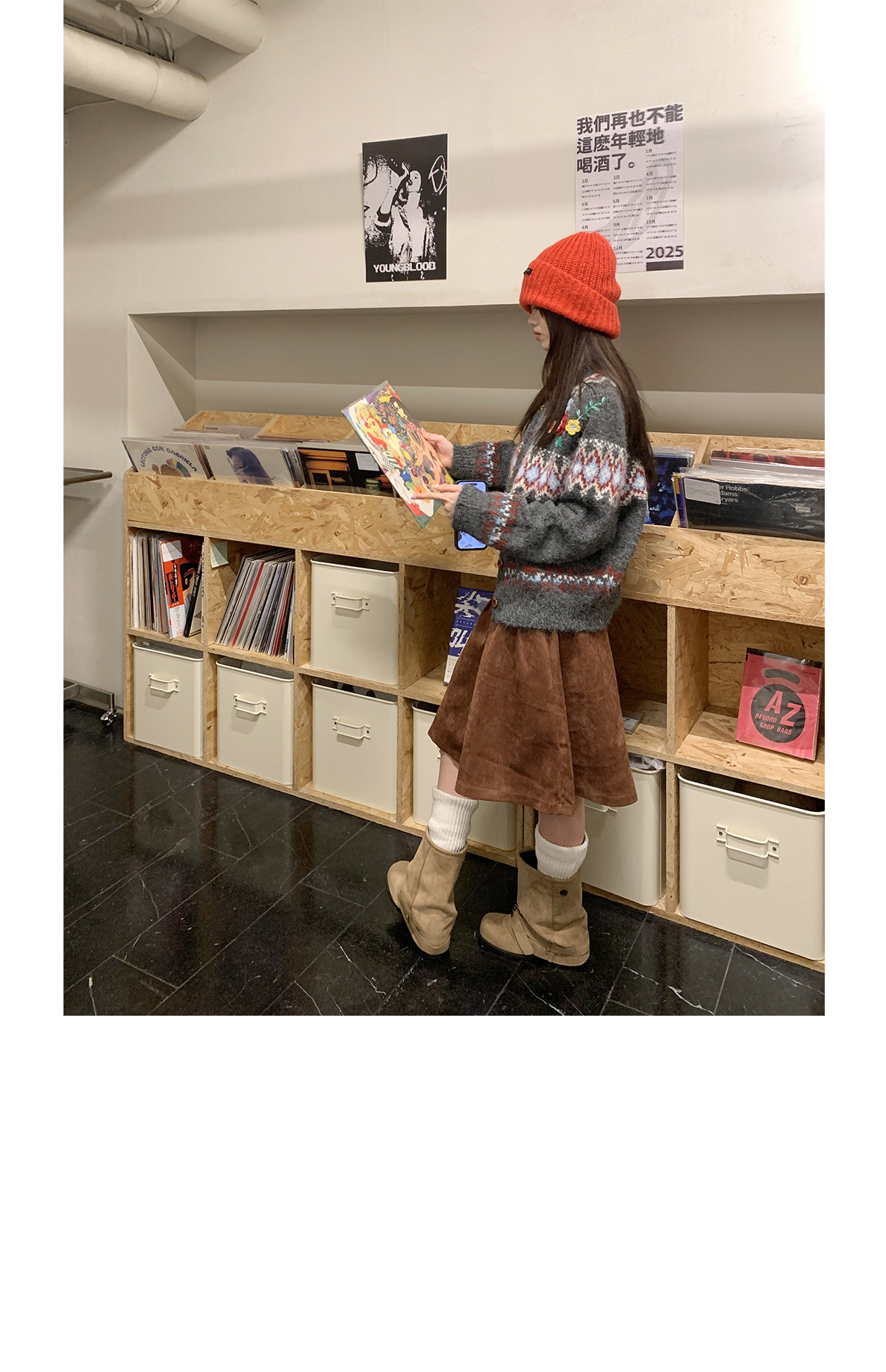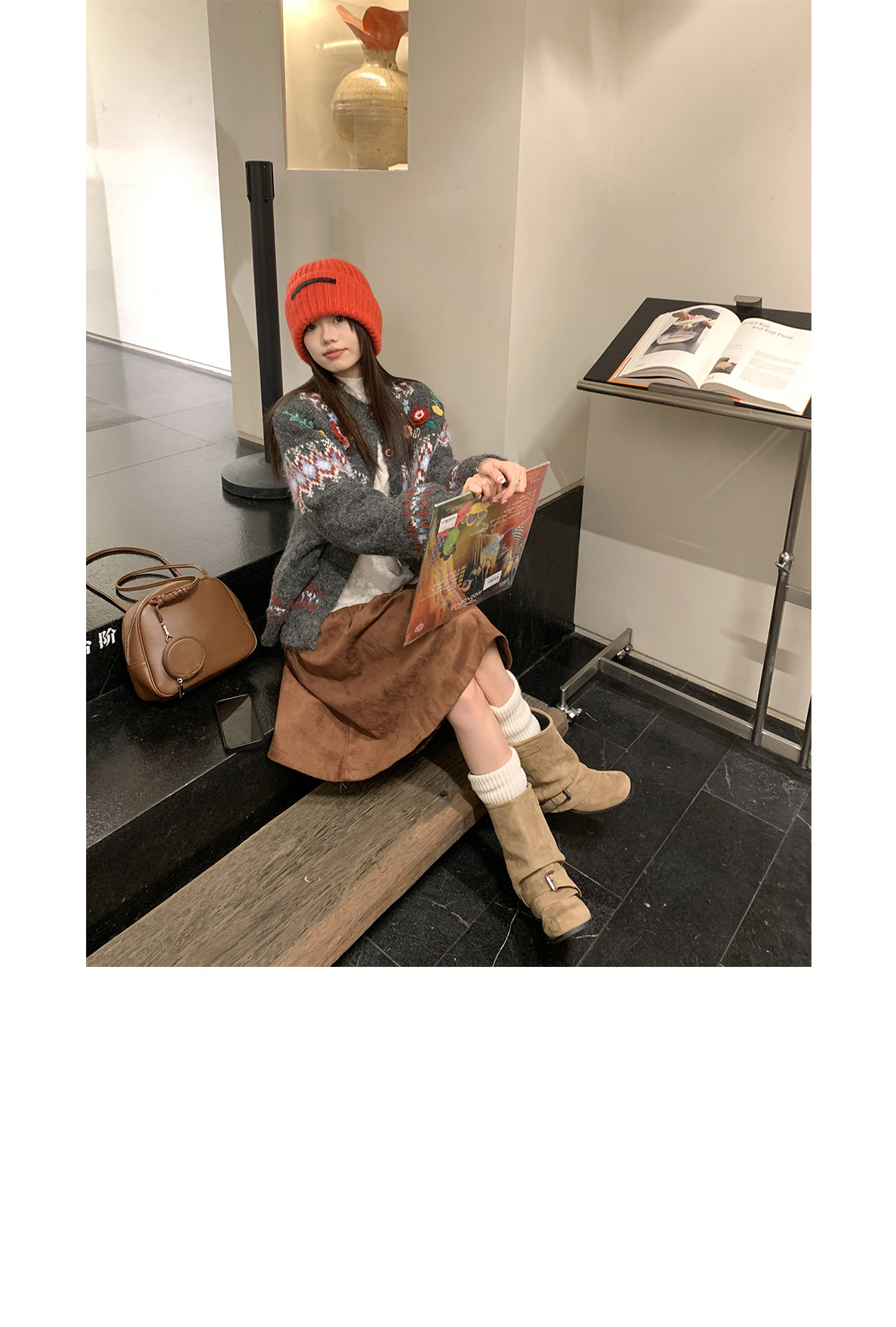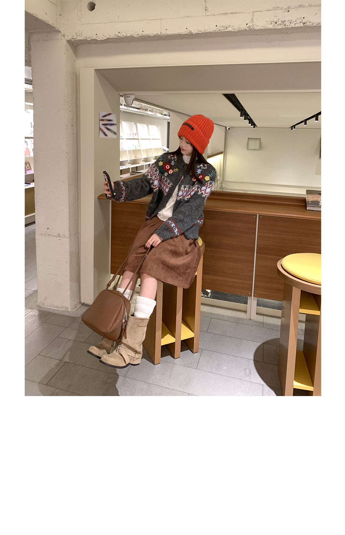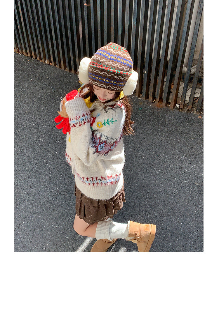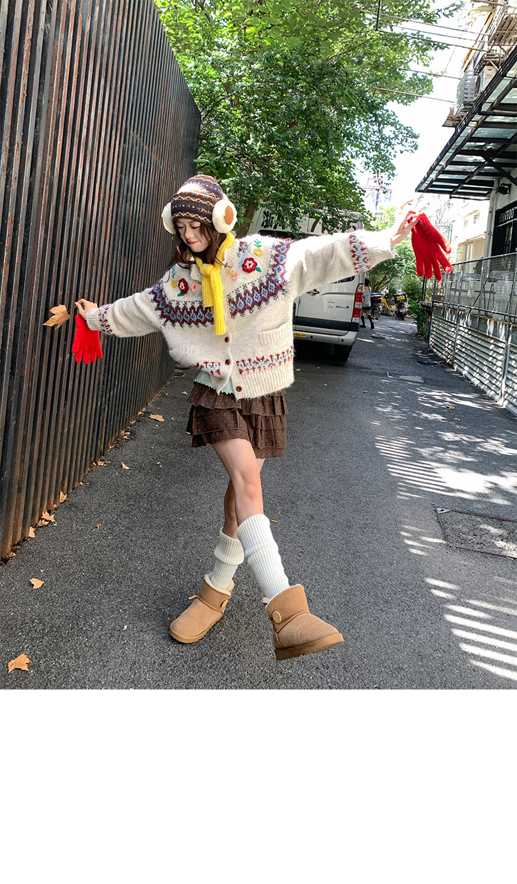 馨幫幫 慵嬾松弛感費爾島毛衣外套女秋冬季手工鉤花加厚針織開衫