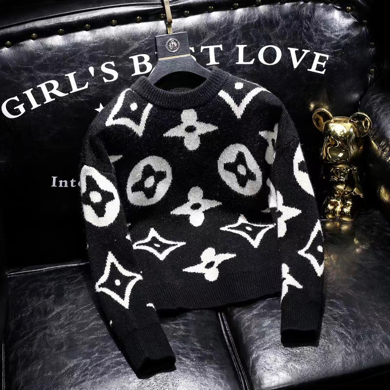 圓領衛衣男寬松提花2025美式潮牌情侶外衣秋冬保暖撞色打底衫上衣