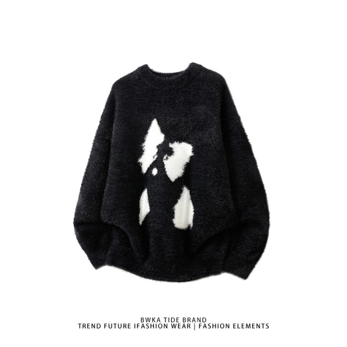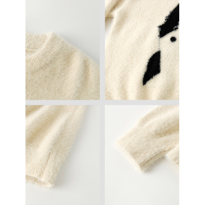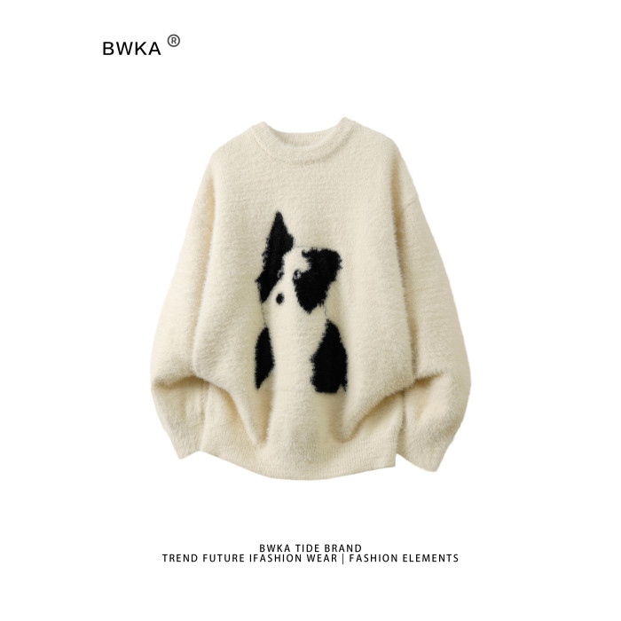 卡通小狗馬海毛針織衫女男秋冬潮牌寬松慵懶風毛衣軟糯保暖打底衫