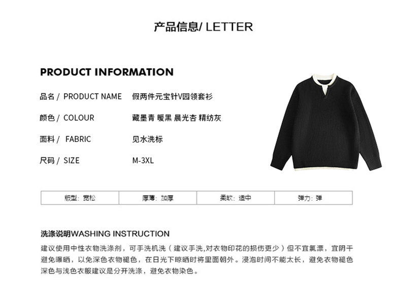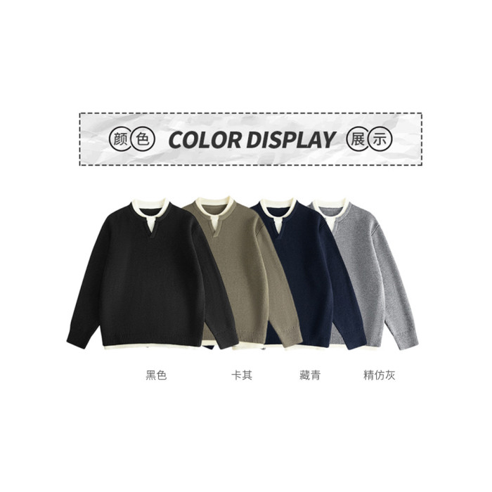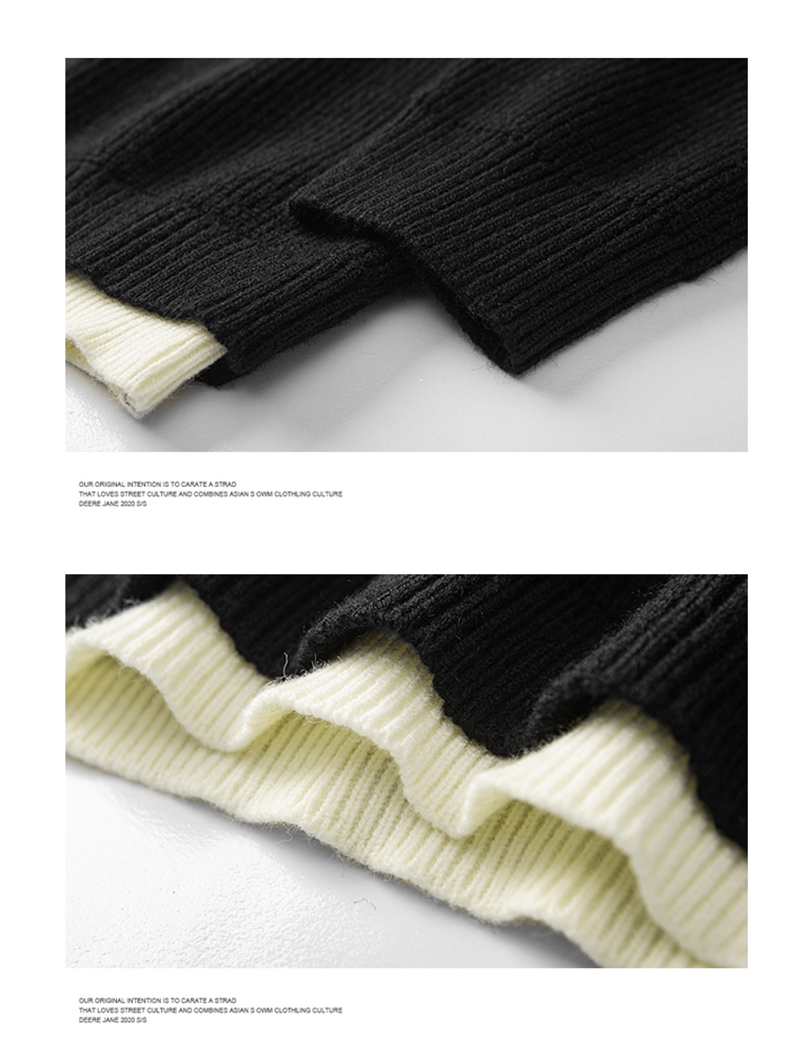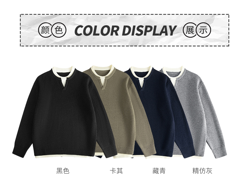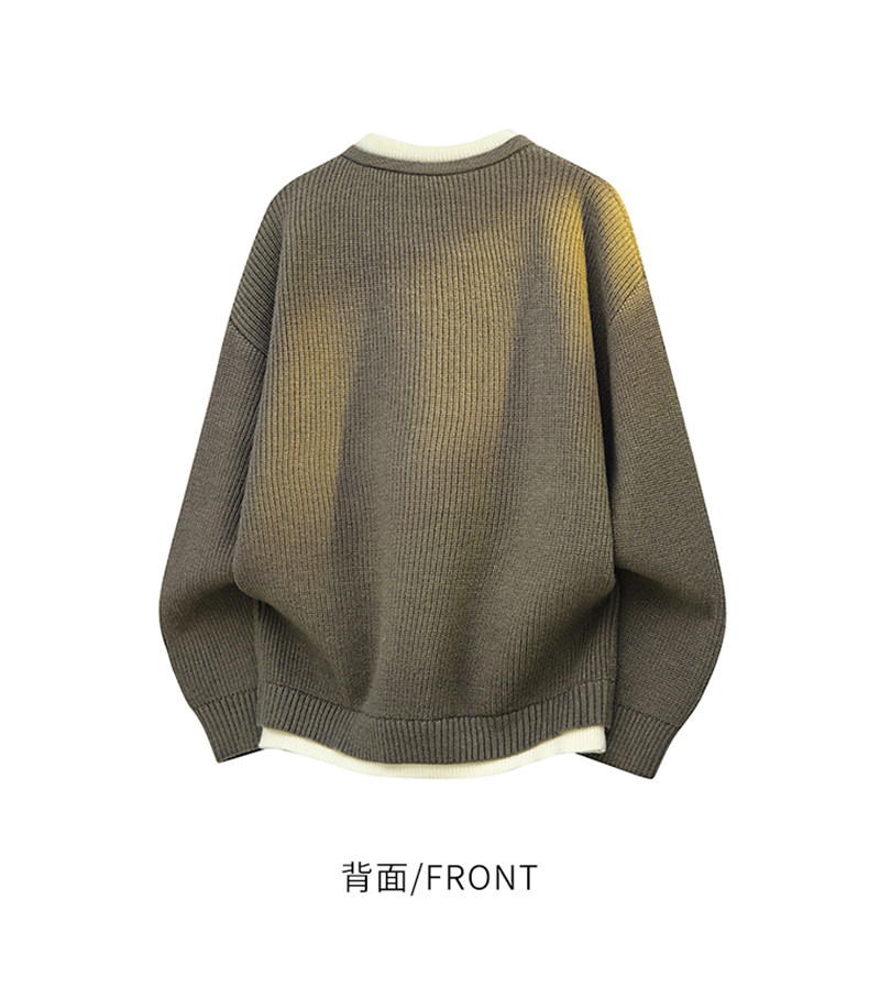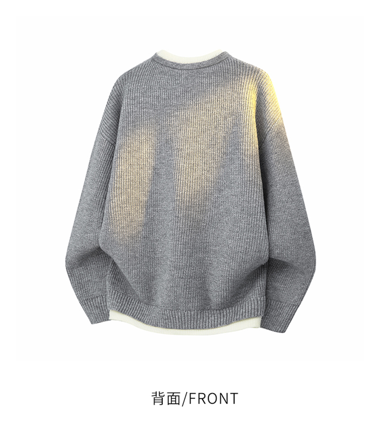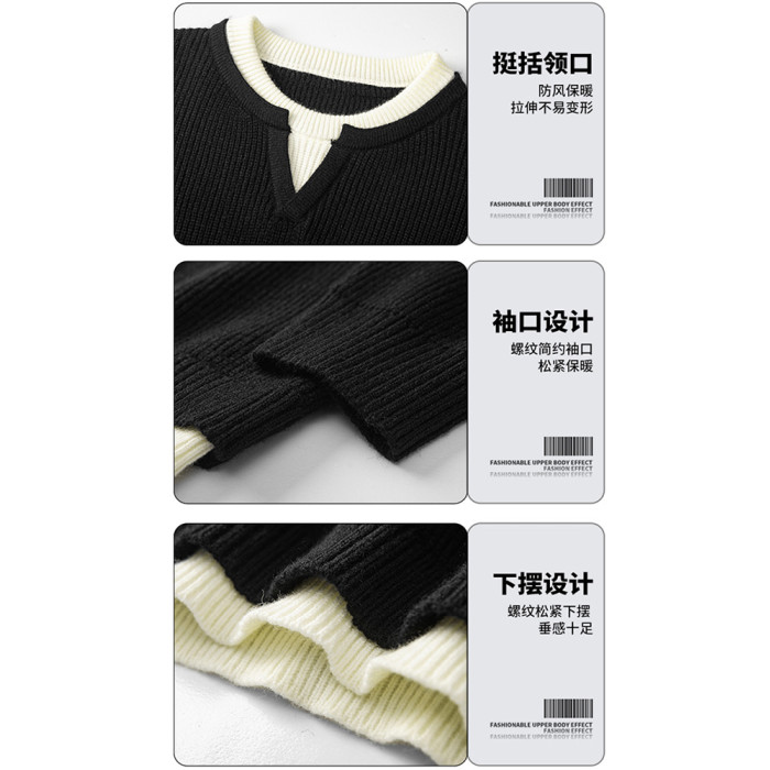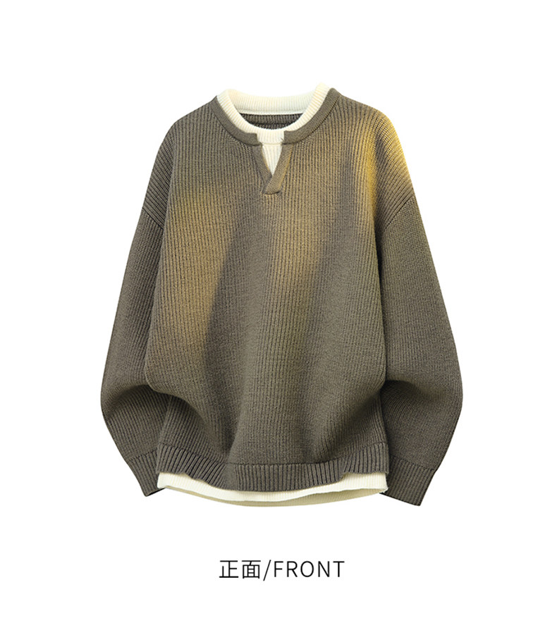 WOODSOON假兩件V圓領針織衫上衣秋冬新款寬松休閒男士慵懶風毛衣