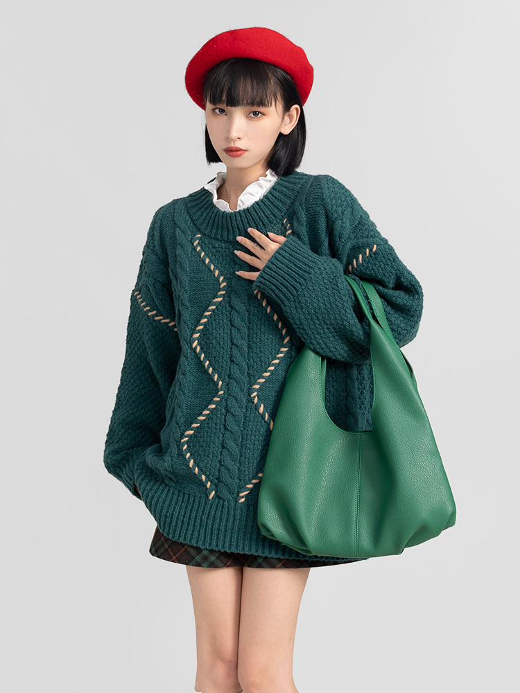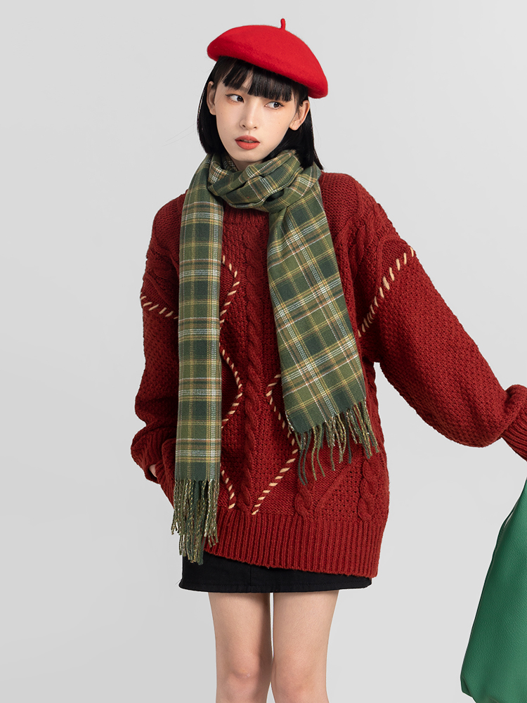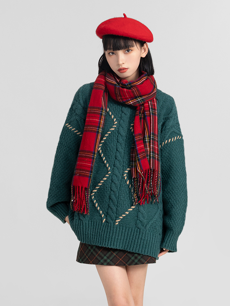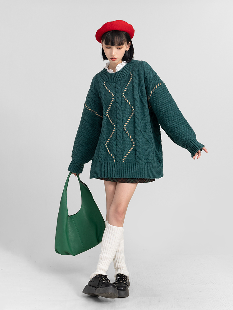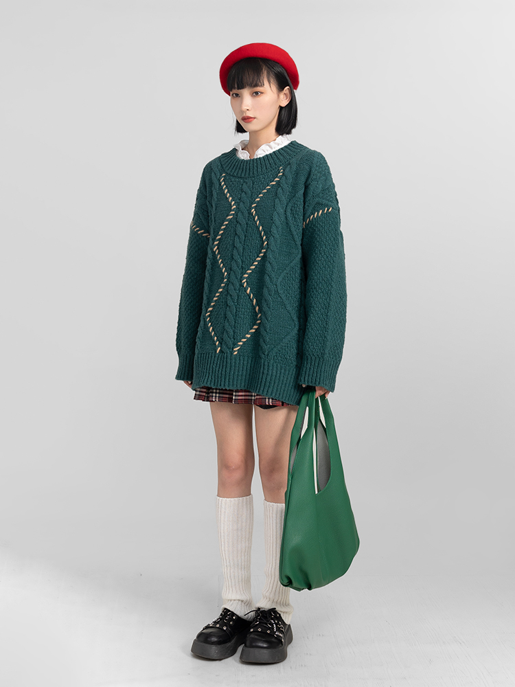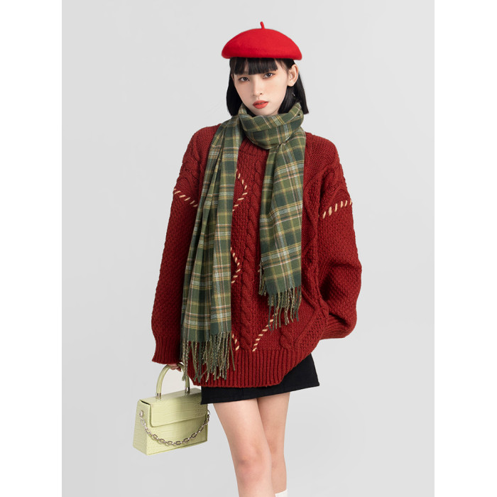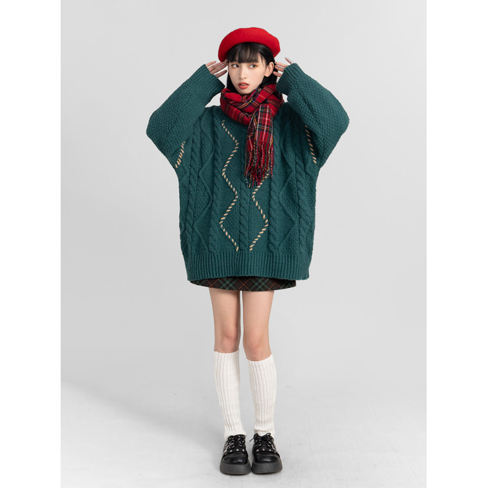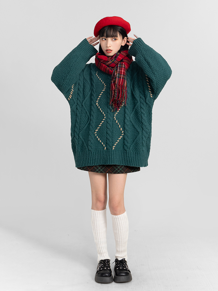 過年新年酒紅色麻花套頭毛衣女秋冬2025龍年本命龍年加厚冬季寬松