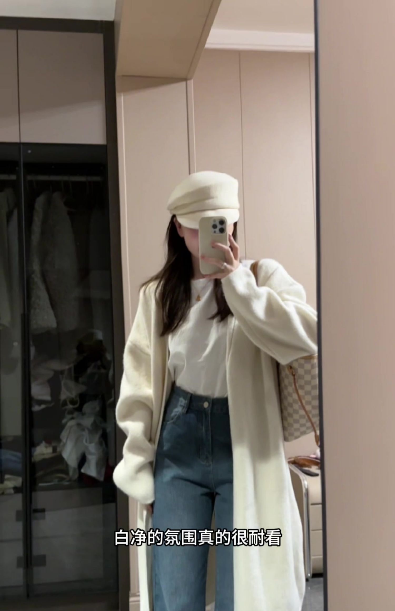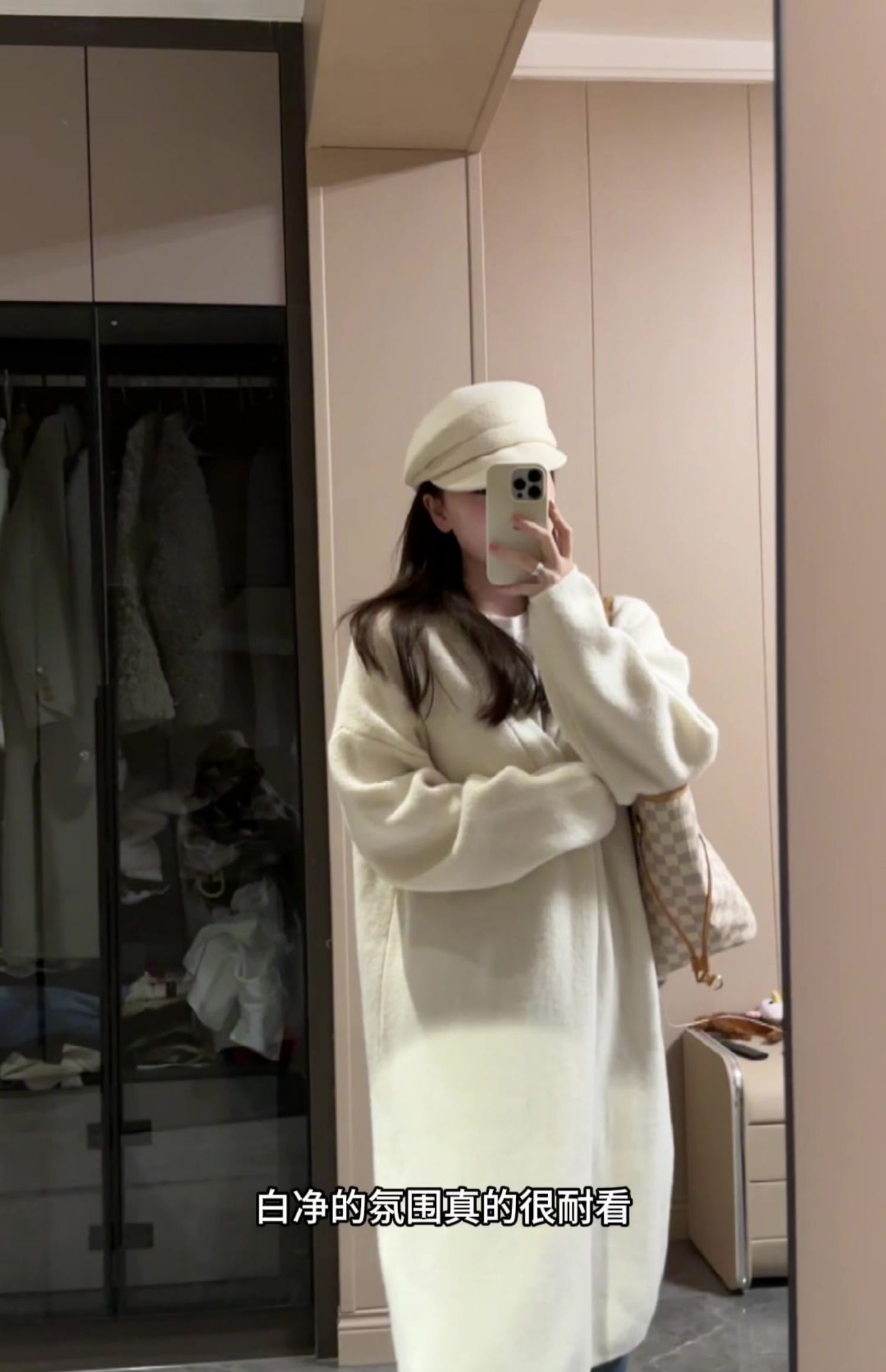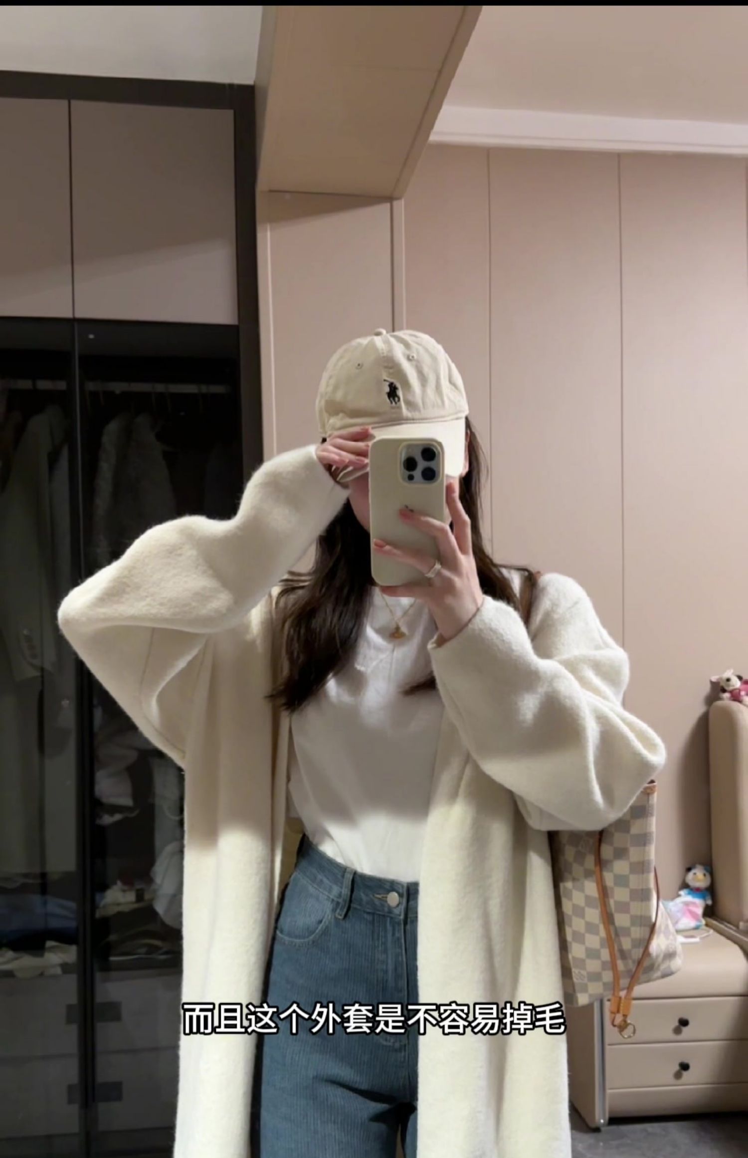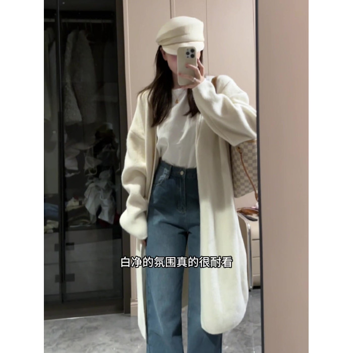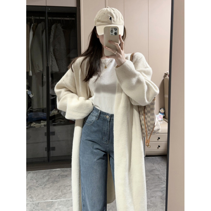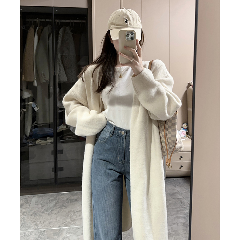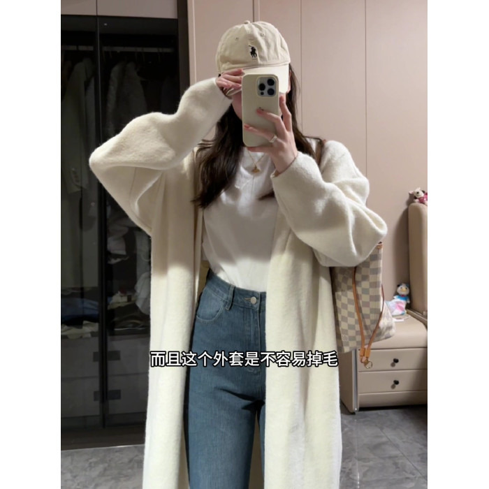 白色中長款浣熊絨毛衣外套女秋冬季加厚針織開衫外搭外穿羊絨大衣