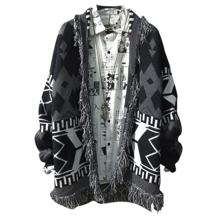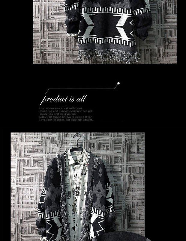 日系復古秋冬民族風針織衫風開衫韓版休閒V領網紅毛衣男外套