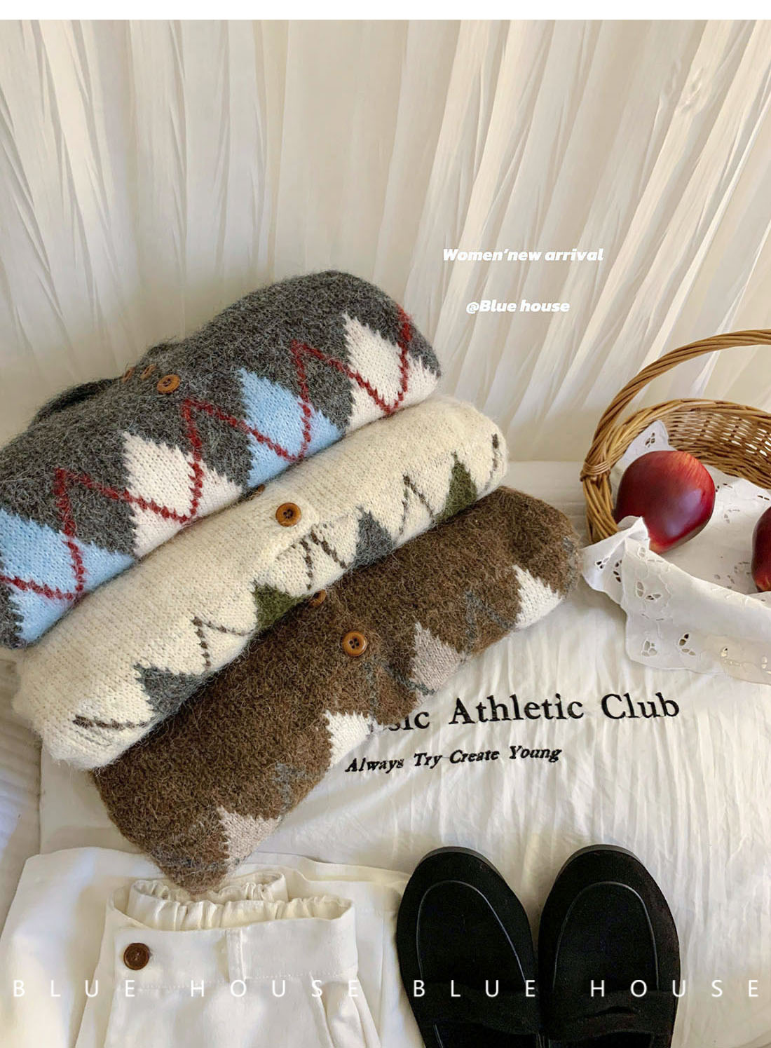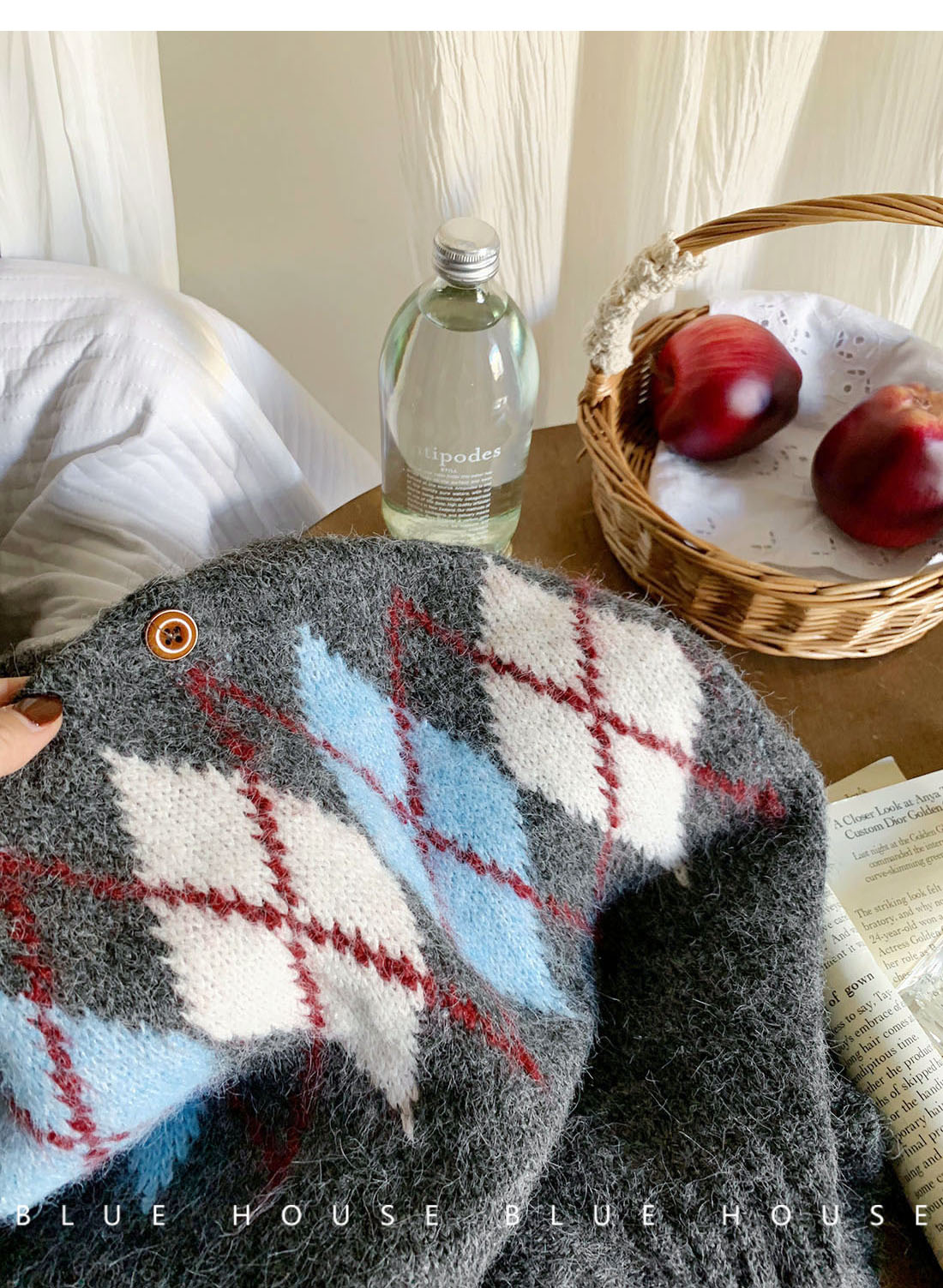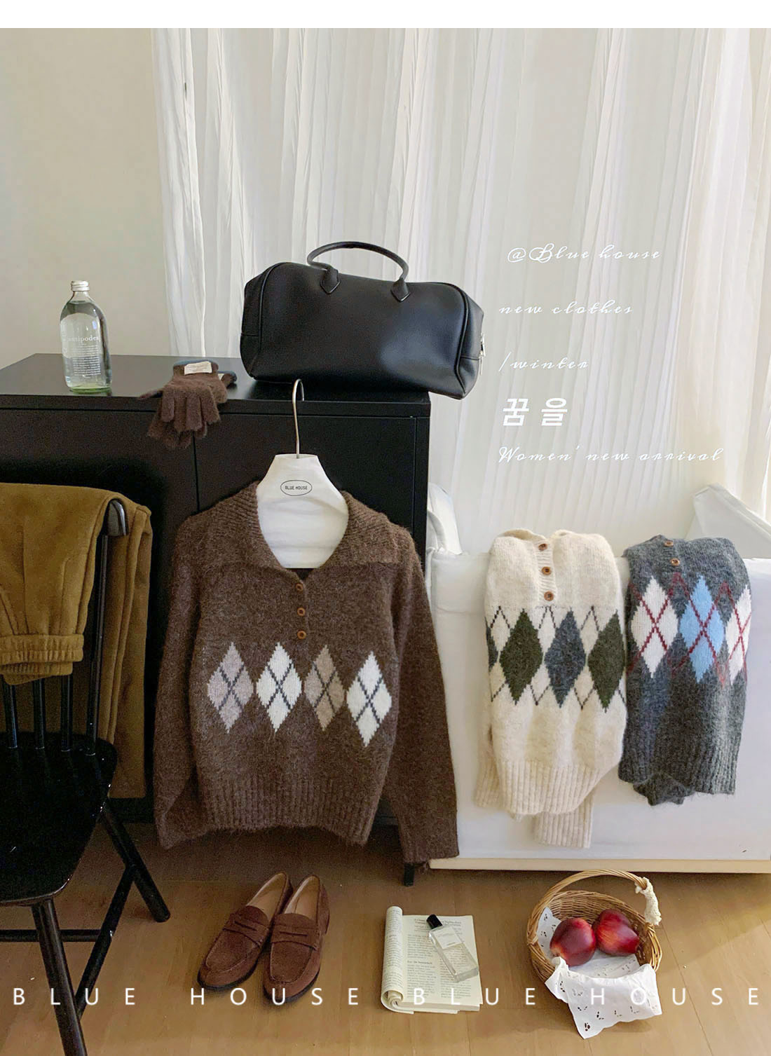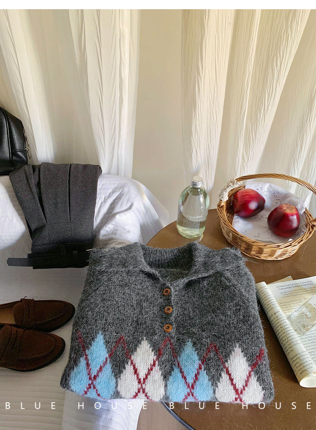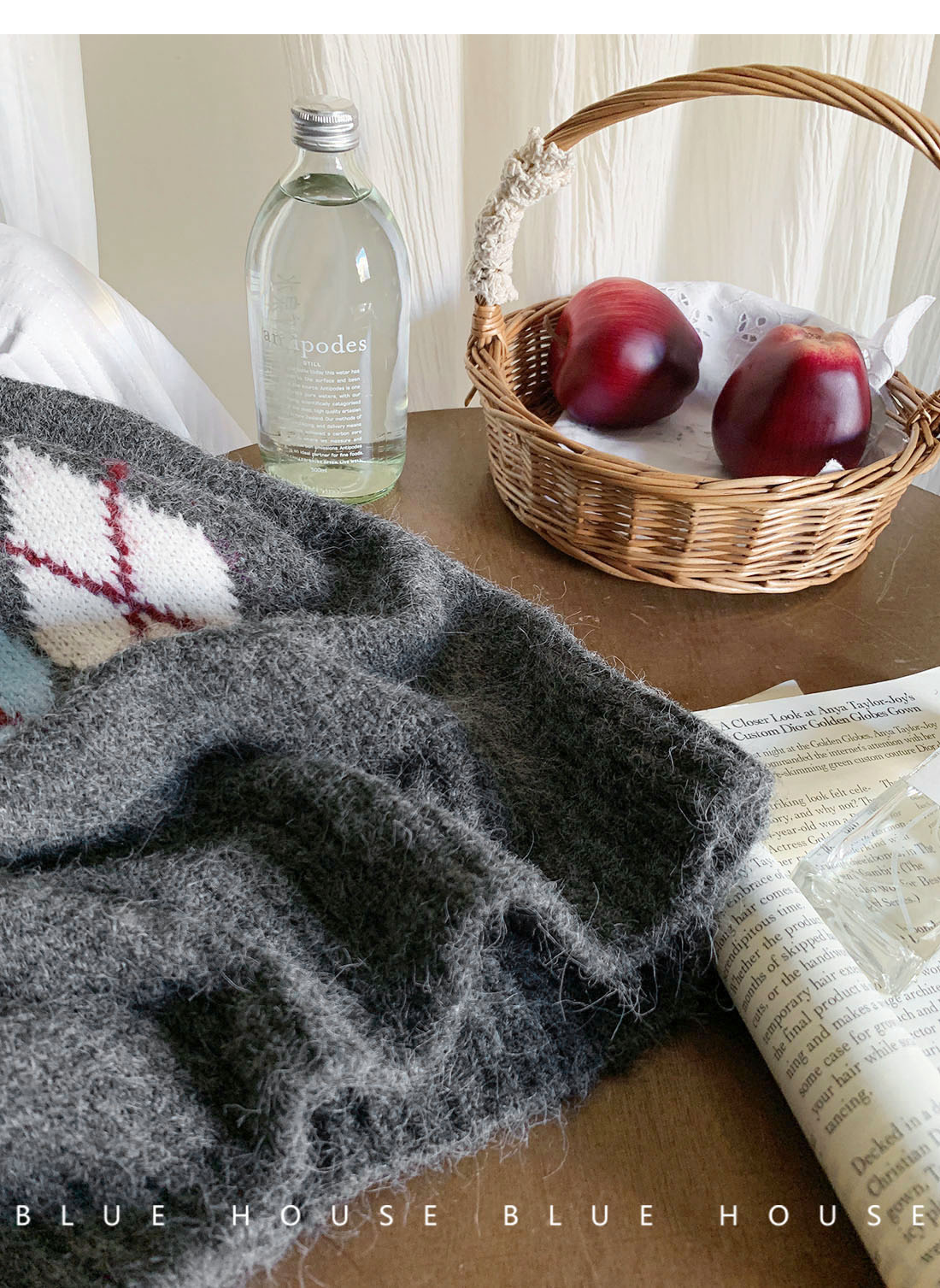 日系學院風復古撞色菱格翻領套頭毛衣女冬加厚軟糯寬松針織衫上衣