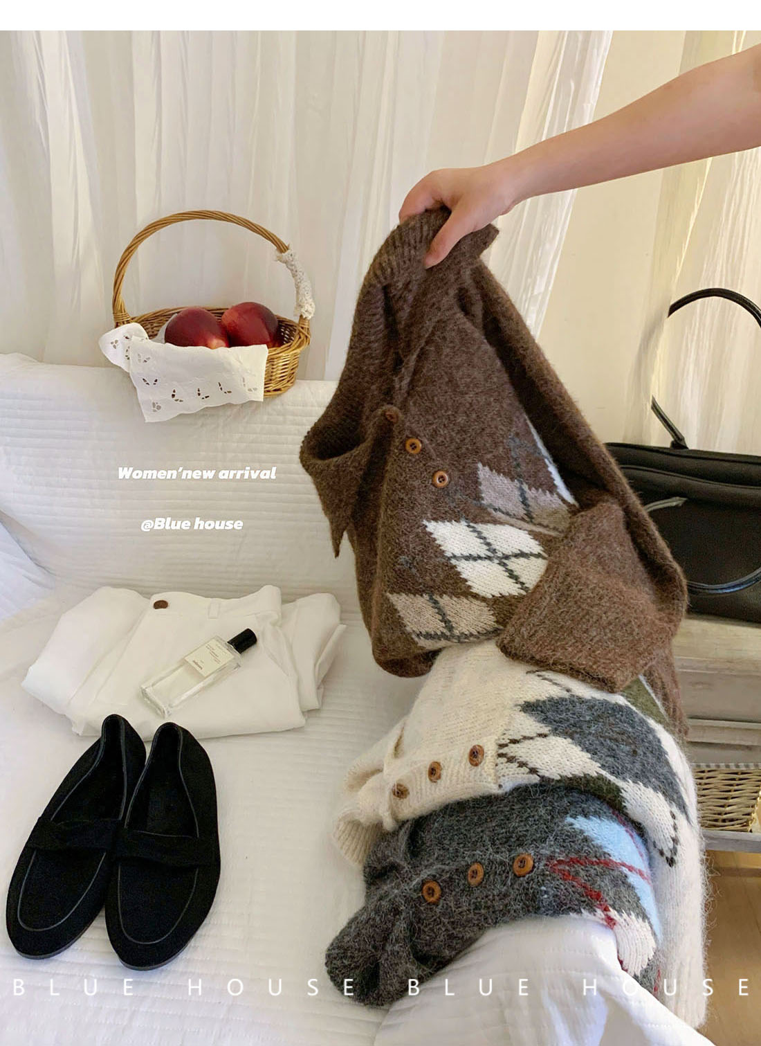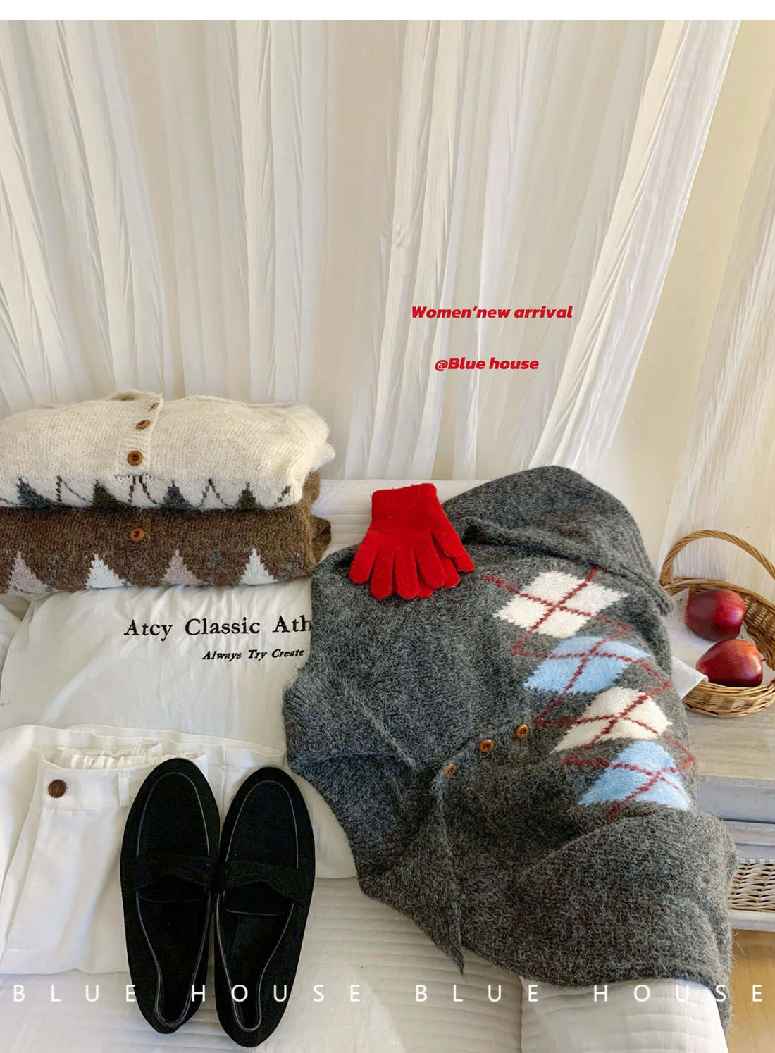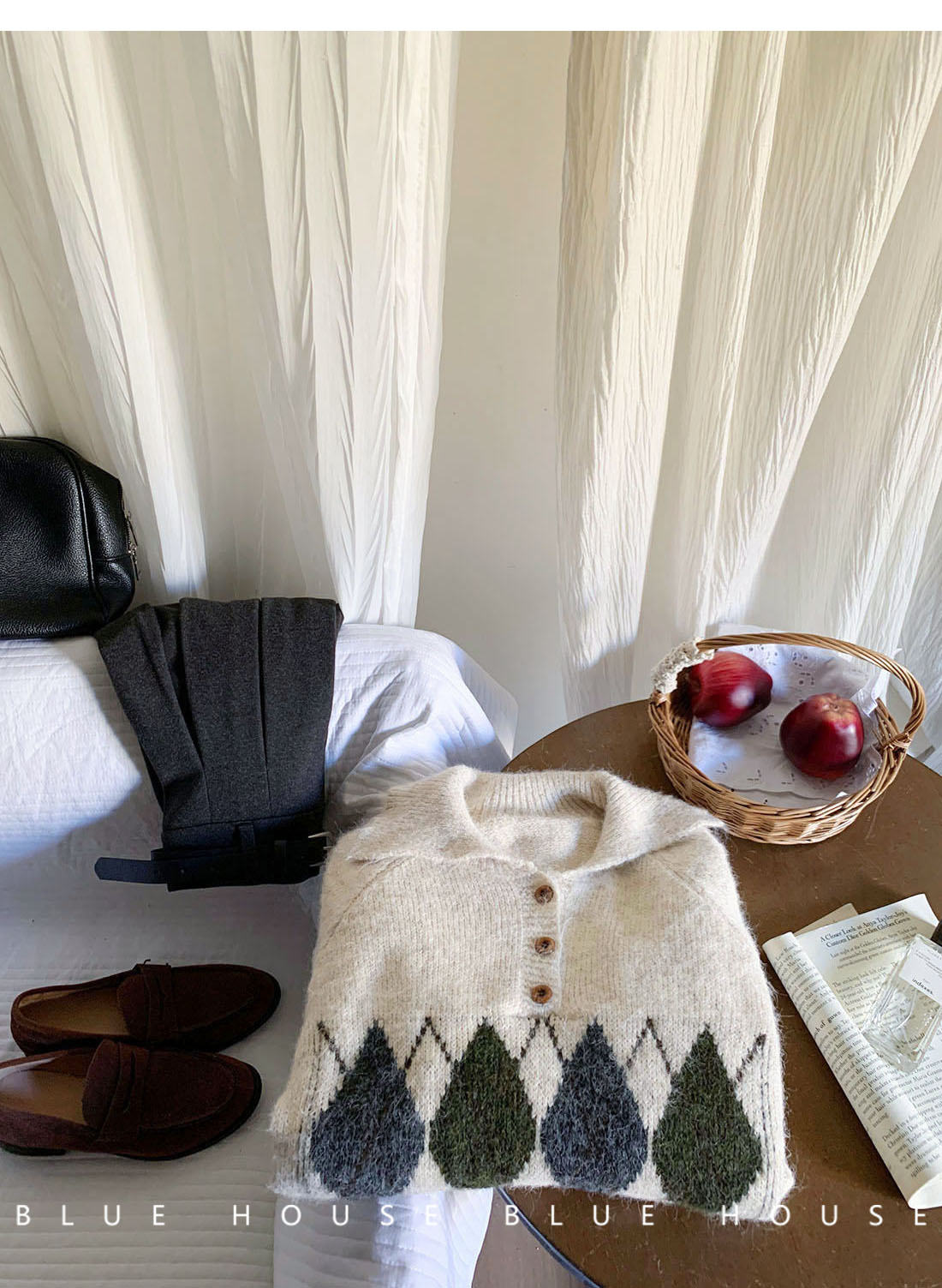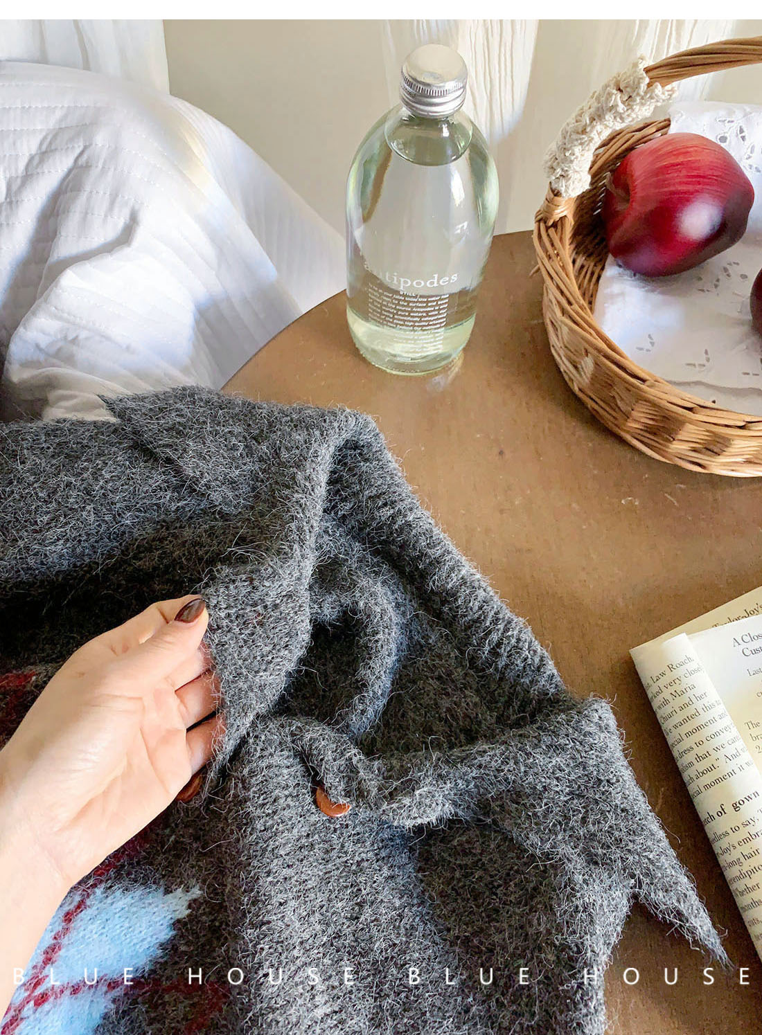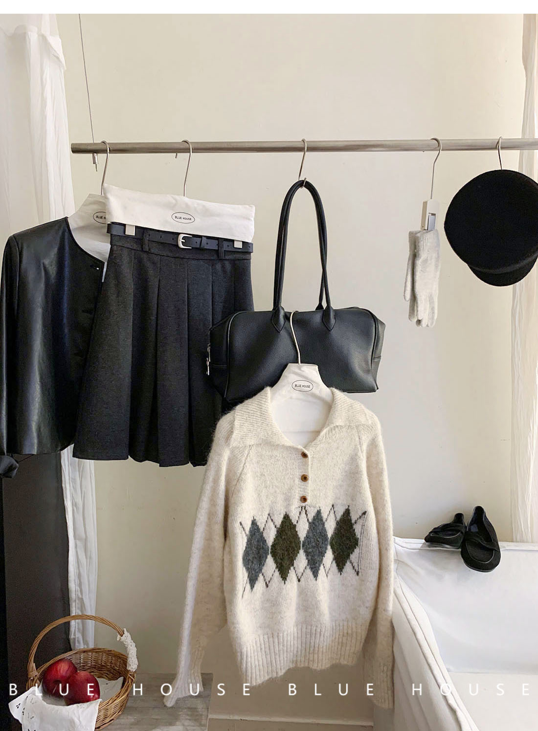 日系學院風復古撞色菱格翻領套頭毛衣女冬加厚軟糯寬松針織衫上衣