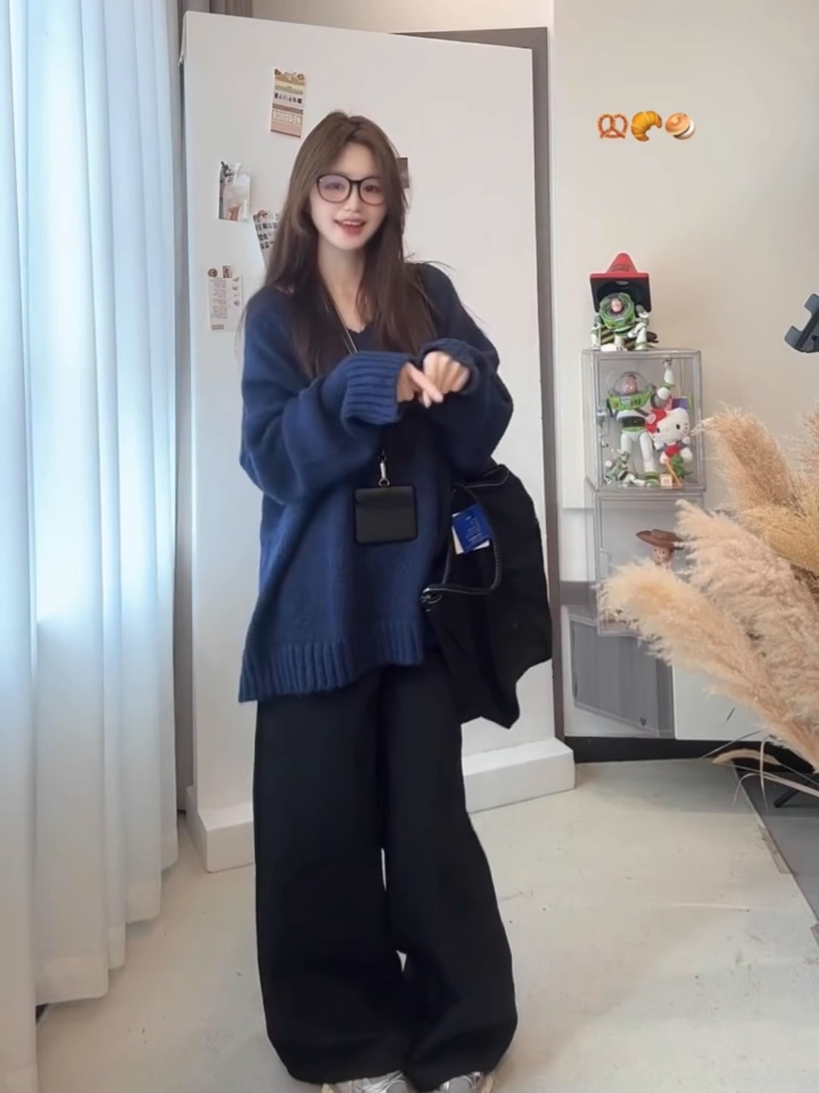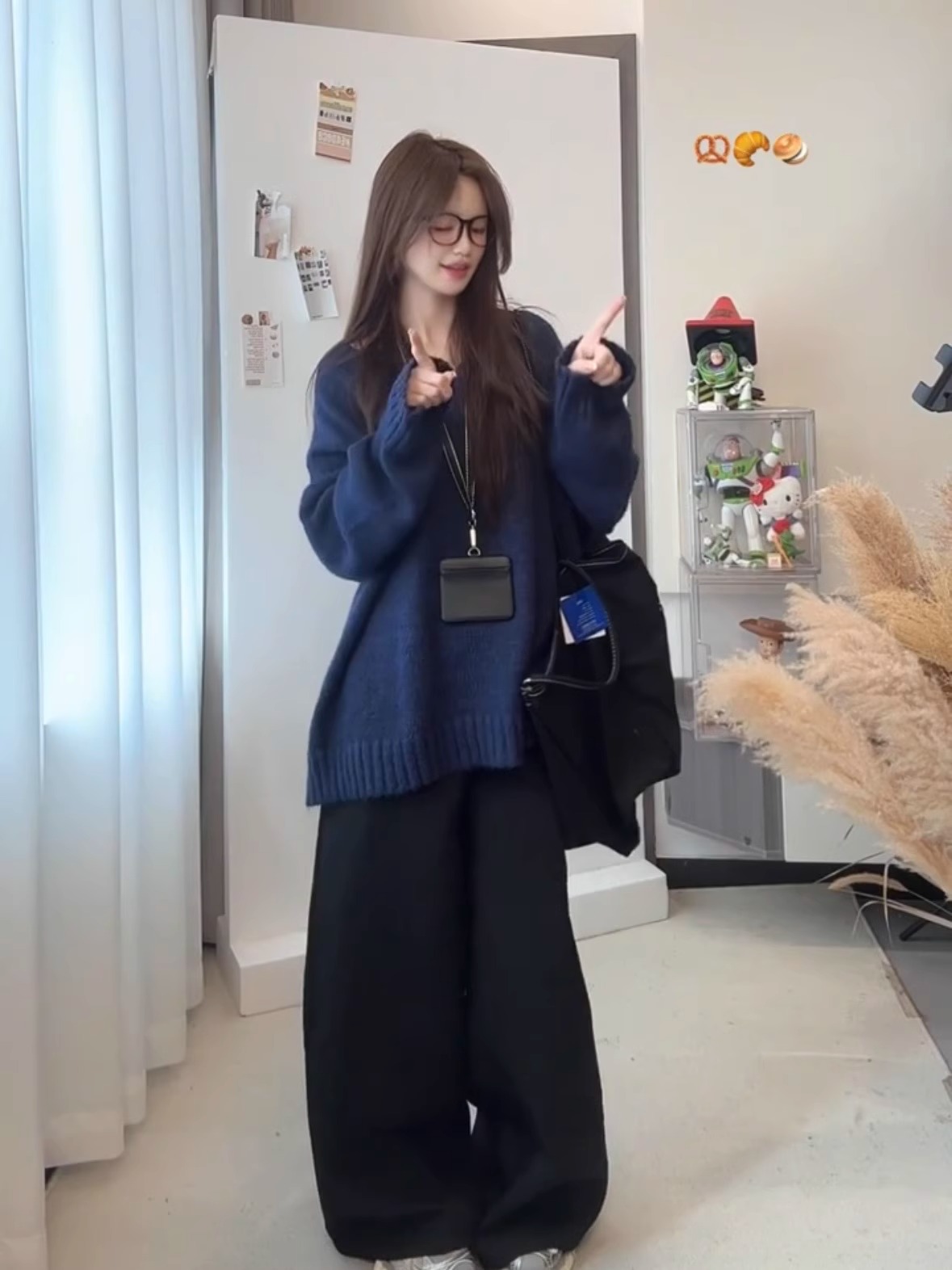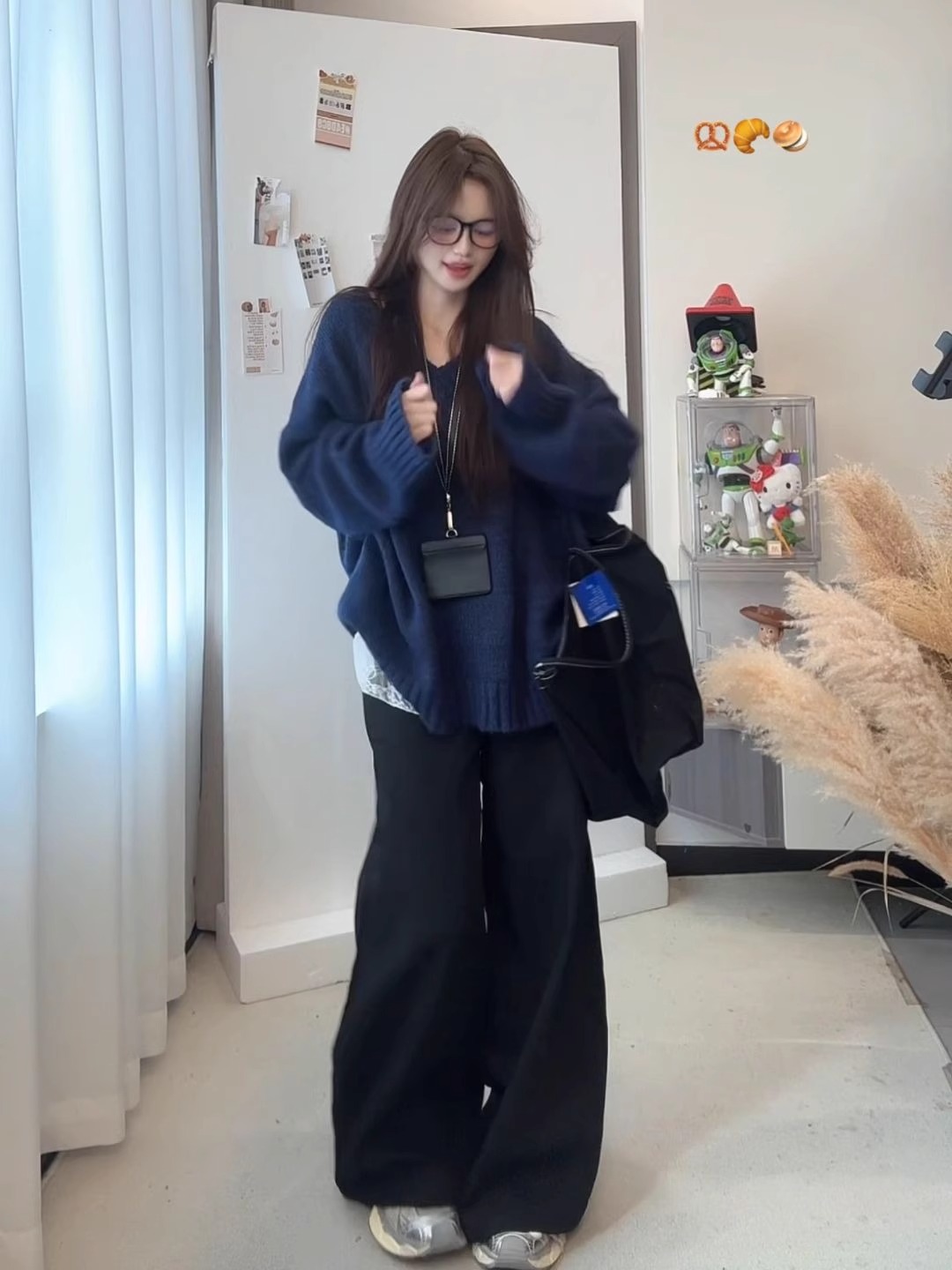 國潮牌v領毛衣女秋冬寬松慵懶風軟糯溫柔別致休閒百搭針織衫上衣