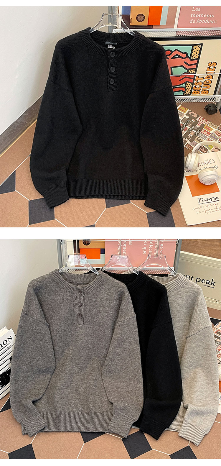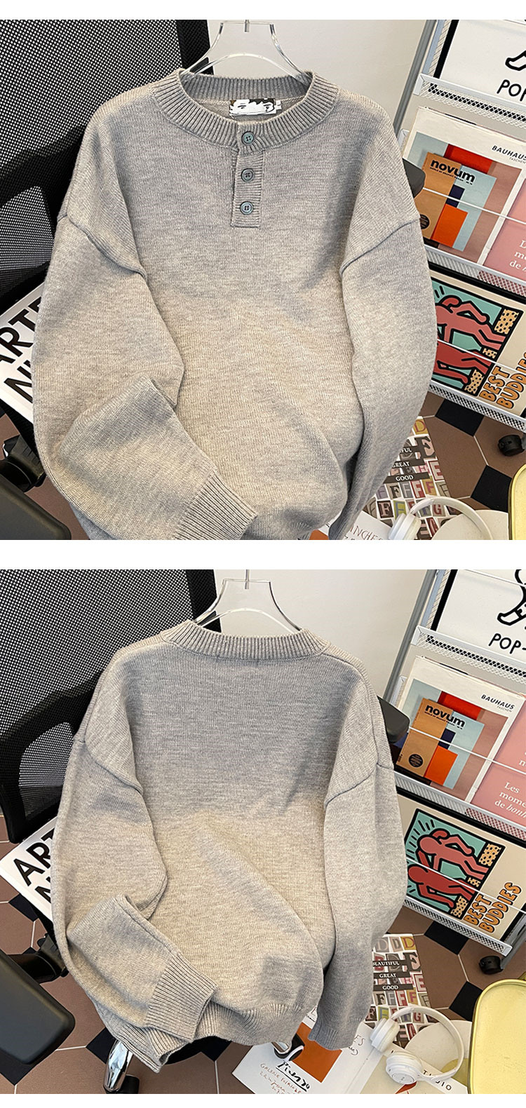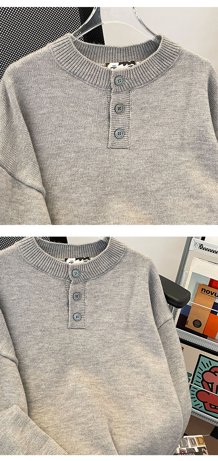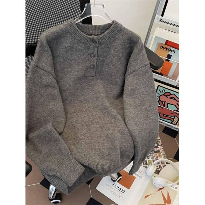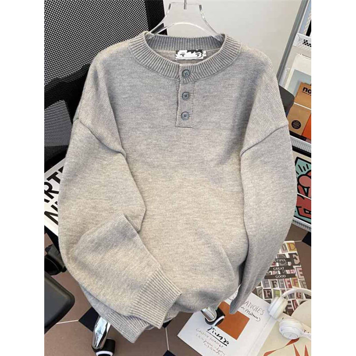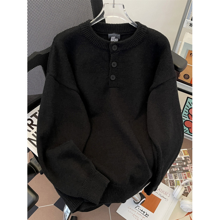 秋冬紐釦套頭毛衣男圓領休閒潮牌學生百搭韓版潮流保暖加厚針織衫