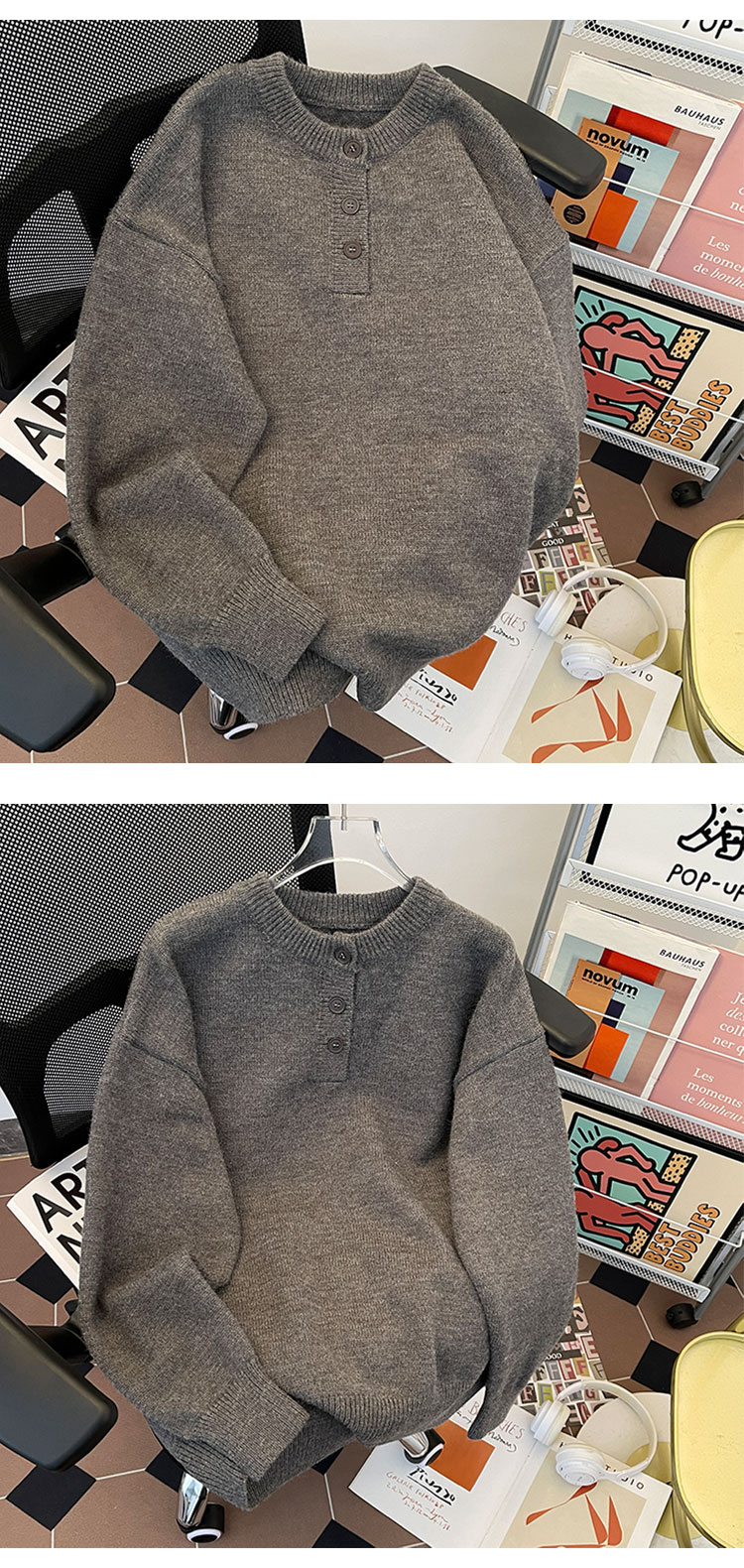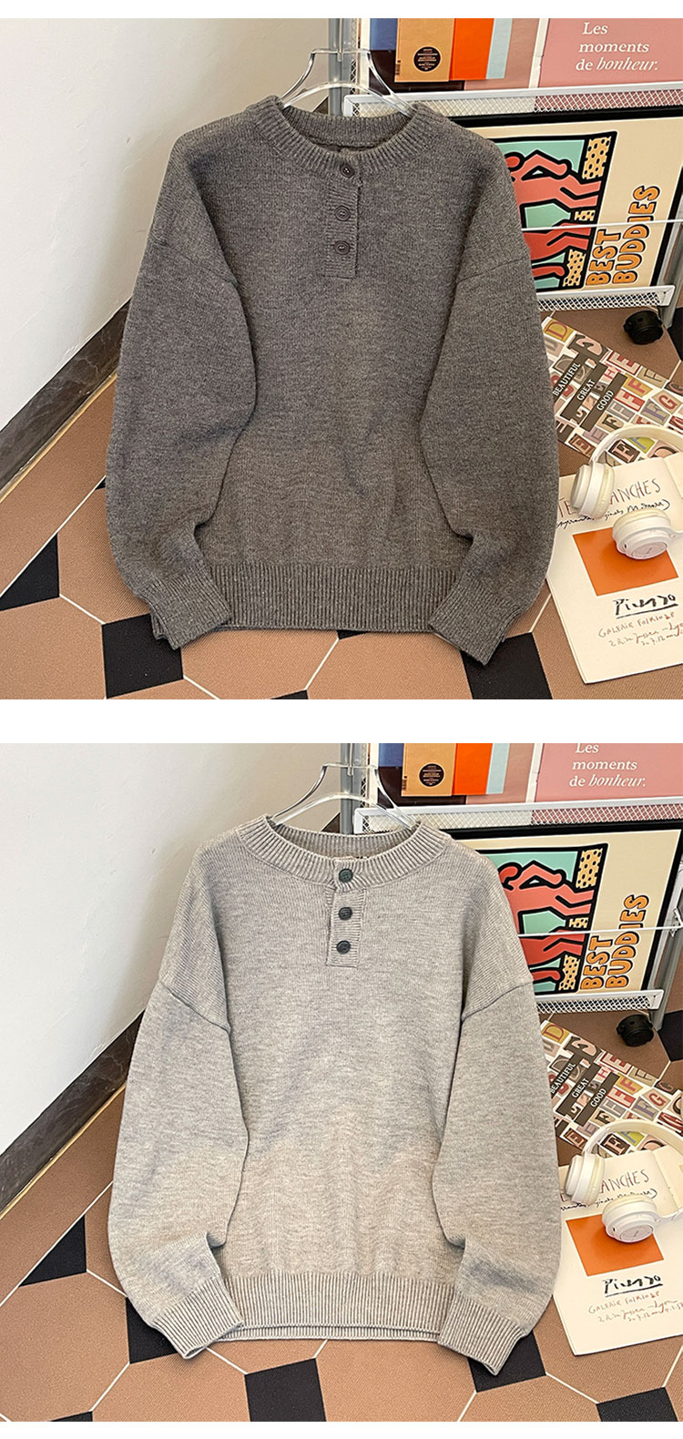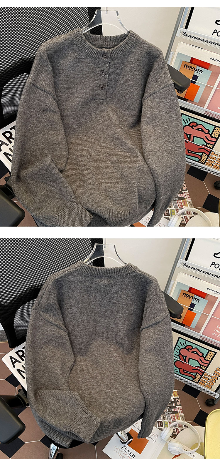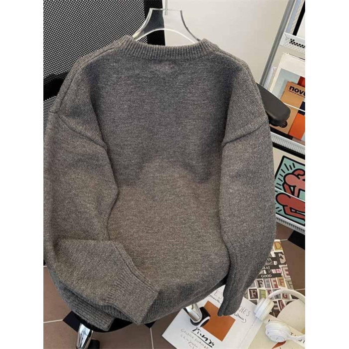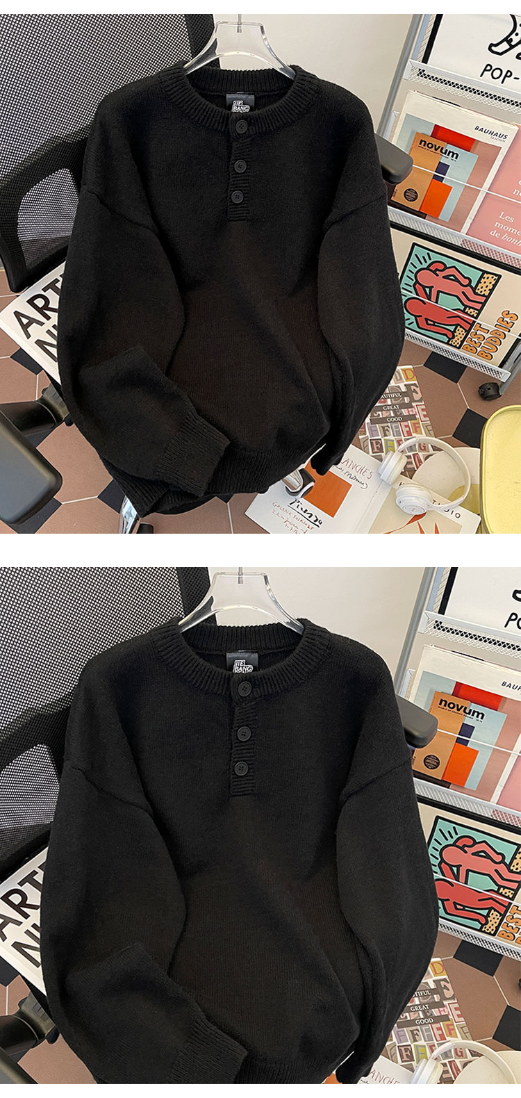 秋冬紐釦套頭毛衣男圓領休閒潮牌學生百搭韓版潮流保暖加厚針織衫
