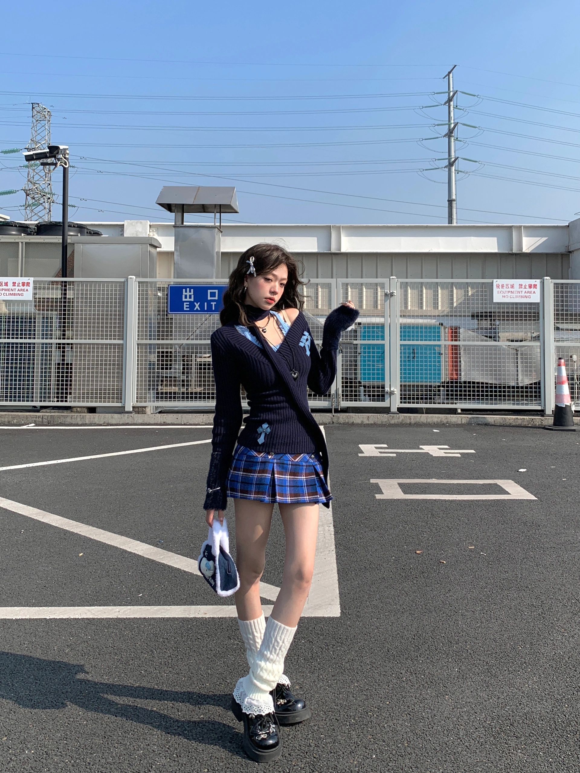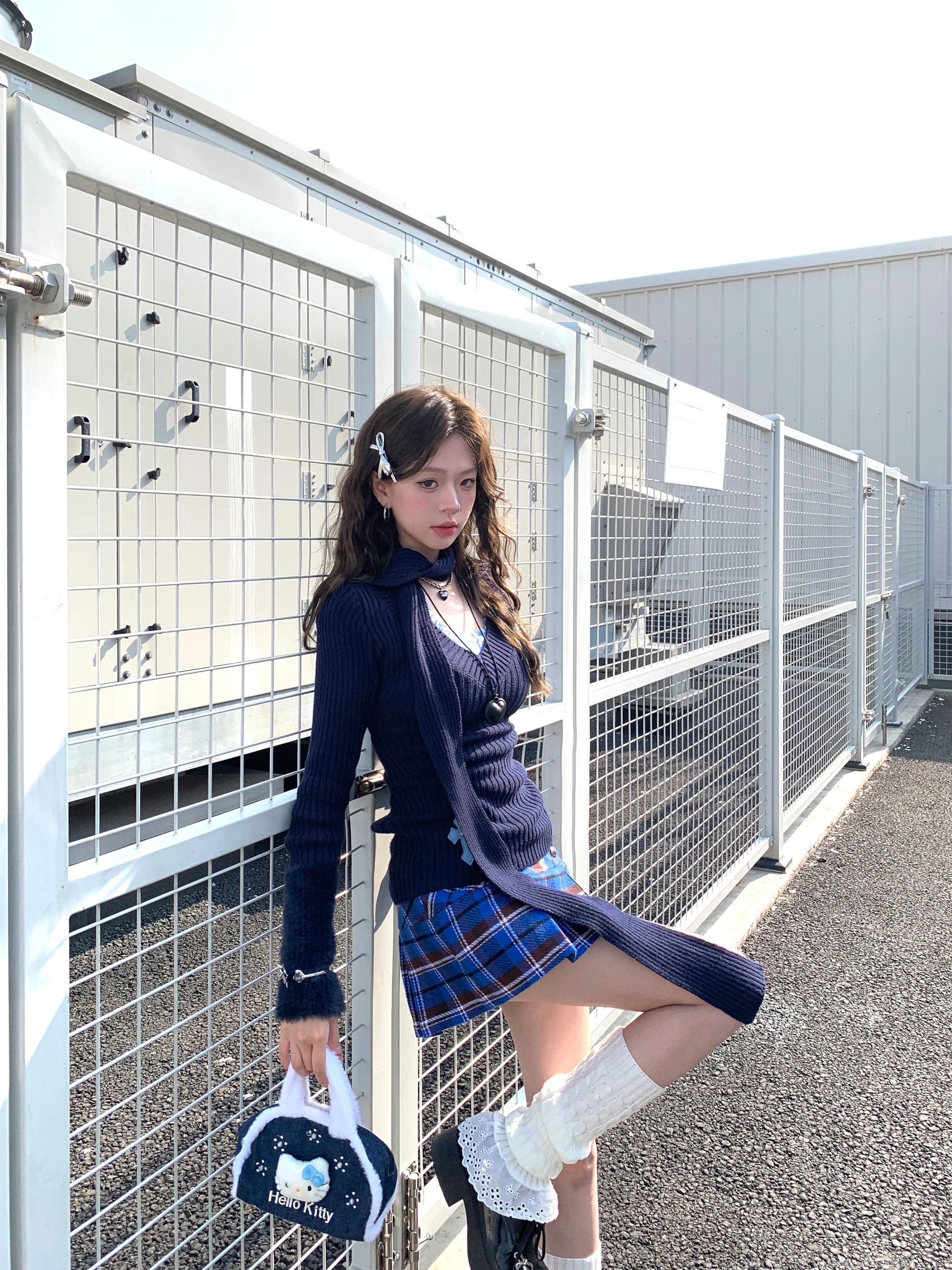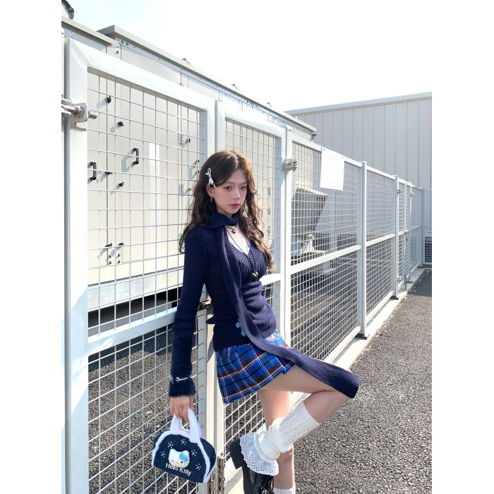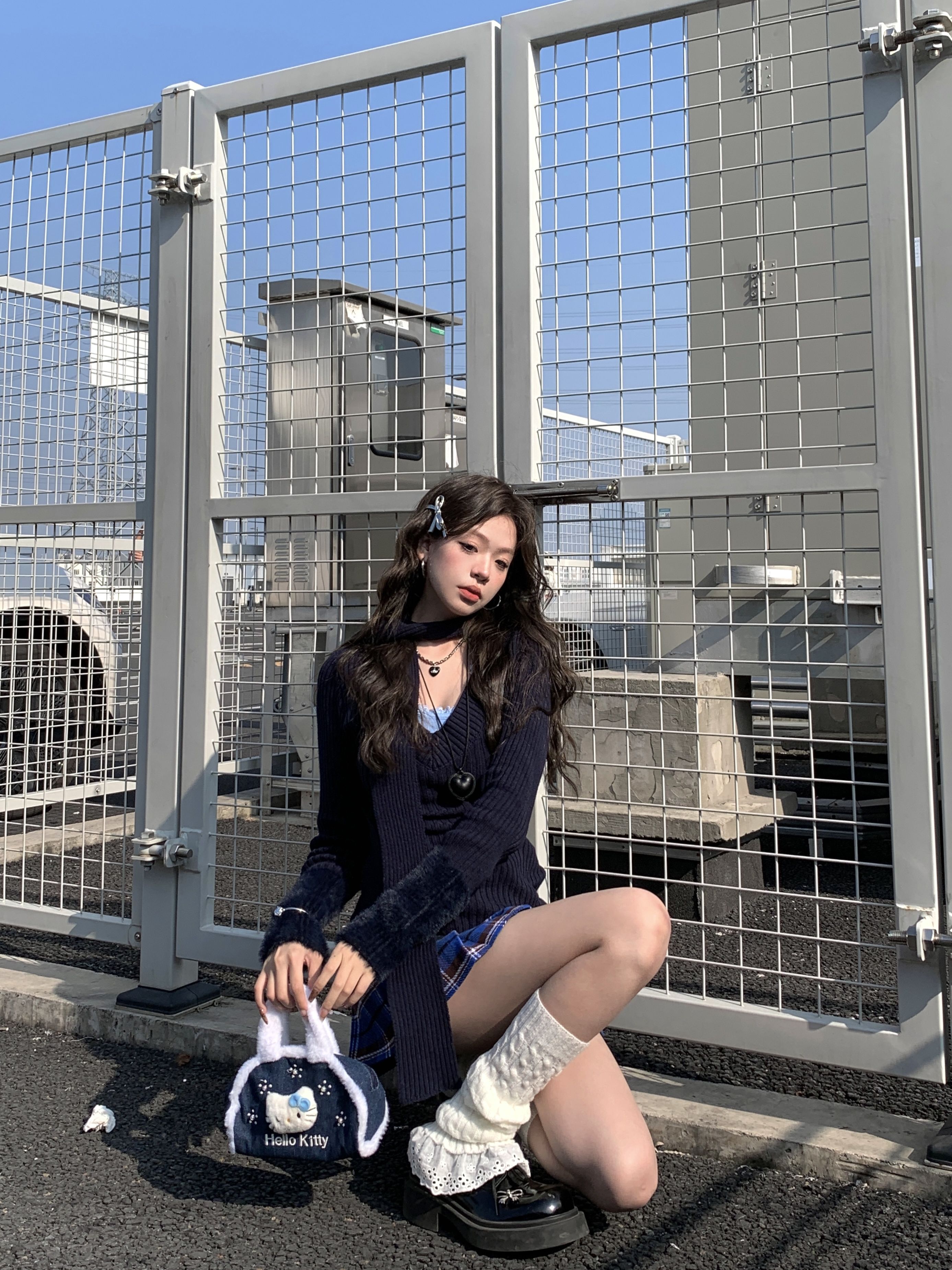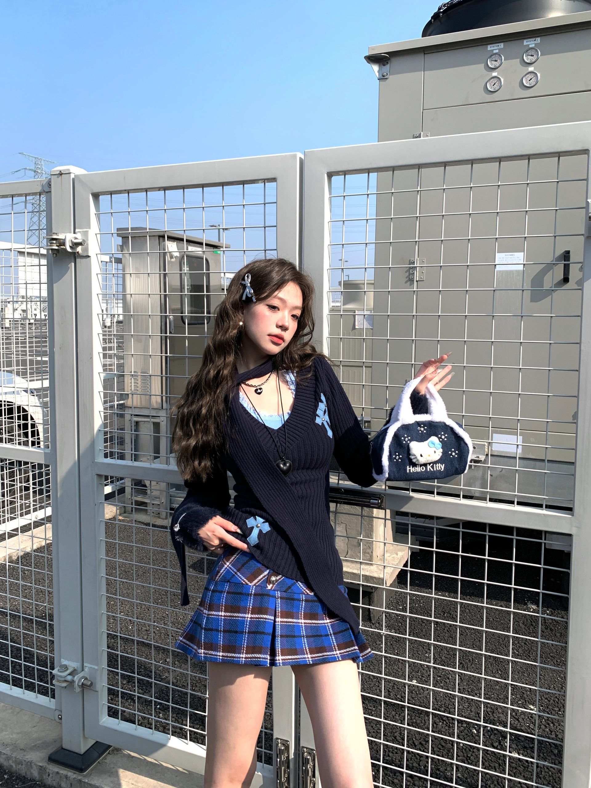 美式辣妹V領十字架毛衣女秋冬2025新款內搭打底針織衫設計感上衣