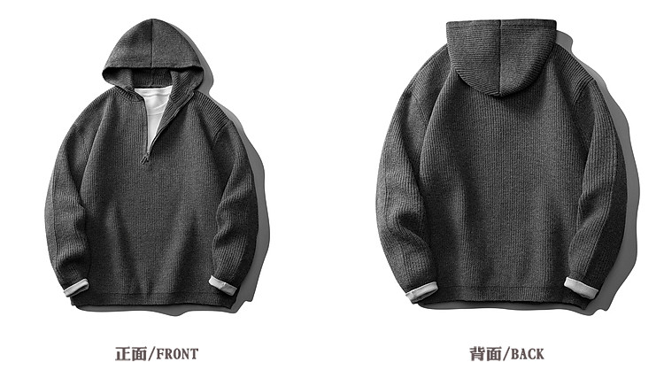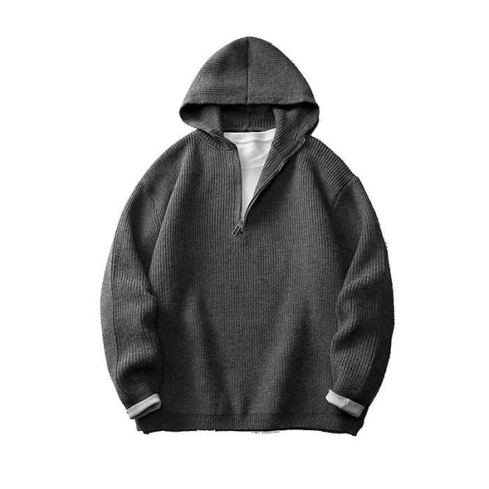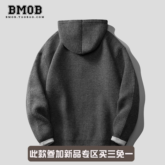 BMOB美式復古半拉鍊連帽針織衫慵懶風簡約潮牌痞帥寬松純色毛衣潮