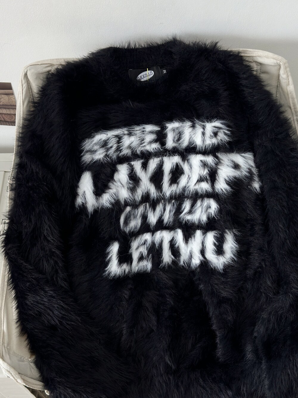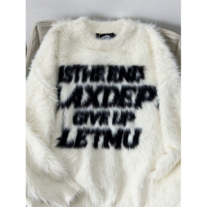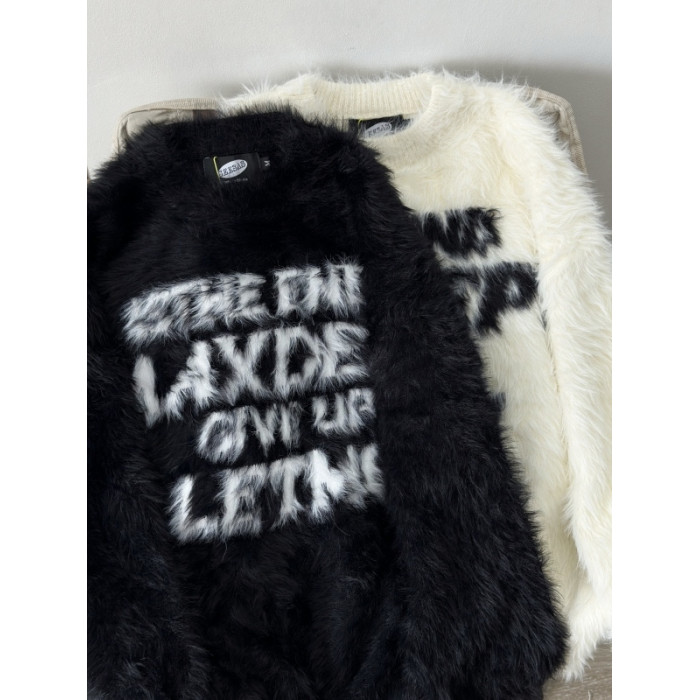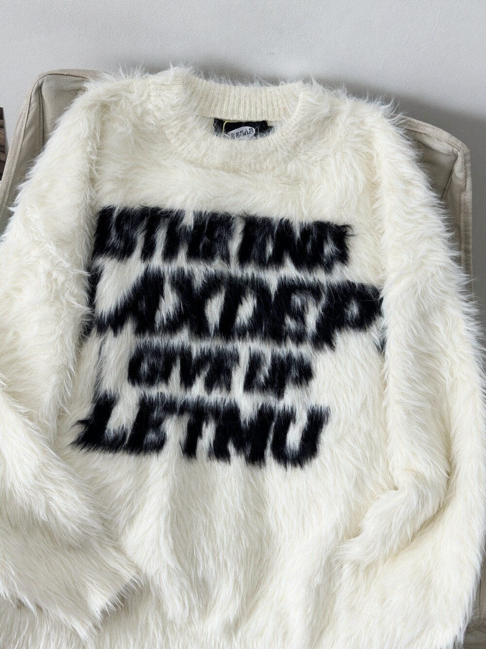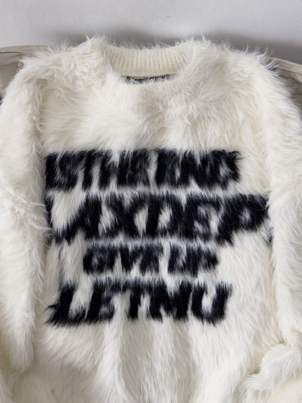 美式高街情侶毛絨軟糯毛衣男女秋冬仿貂毛慵懶寬松字母針織衫外穿