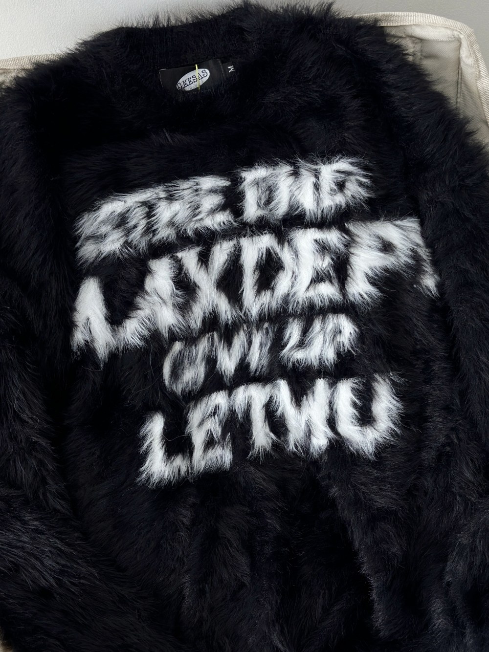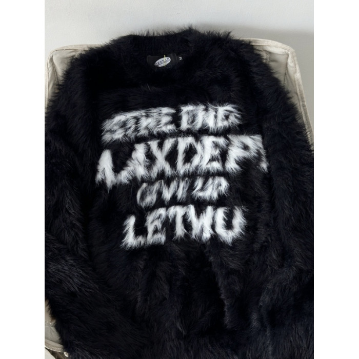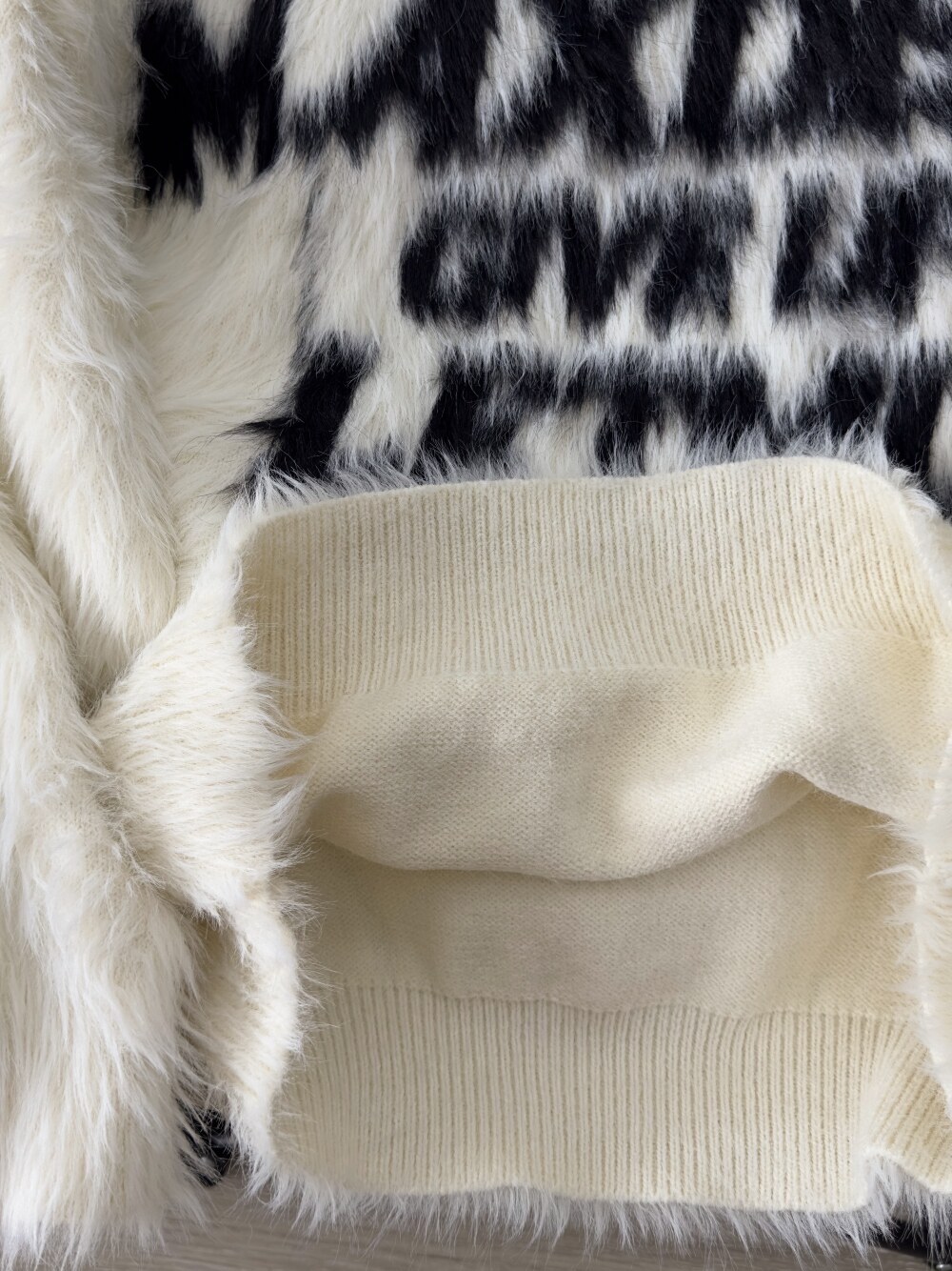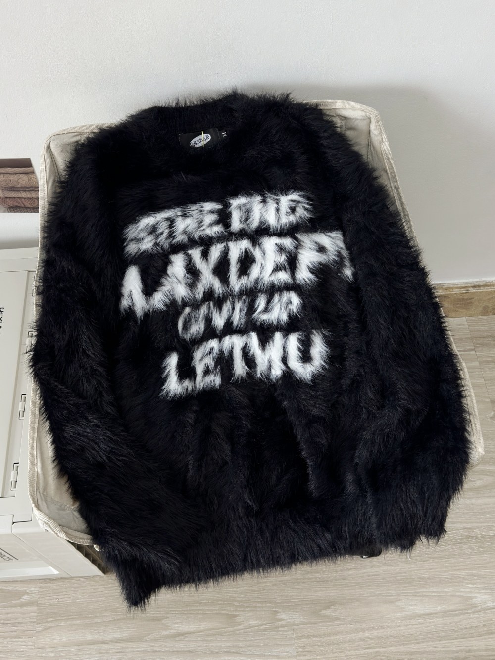 美式高街情侶毛絨軟糯毛衣男女秋冬仿貂毛慵懶寬松字母針織衫外穿