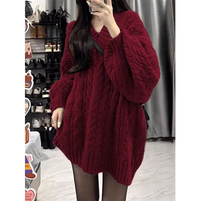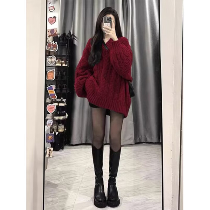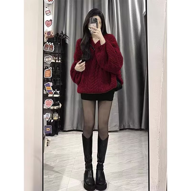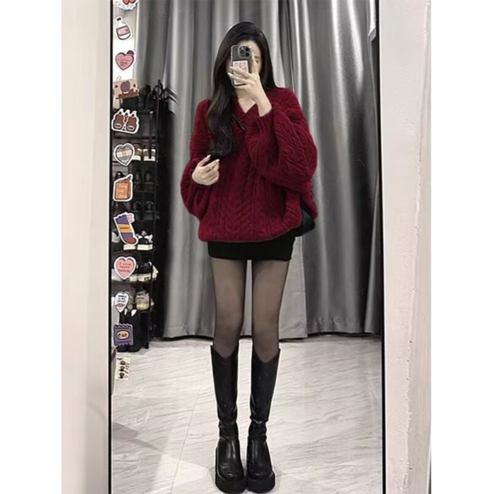外穿春秋百搭慵懶風v領麻花毛衣溫柔韓版上衣軟糯粗毛線編織冬厚