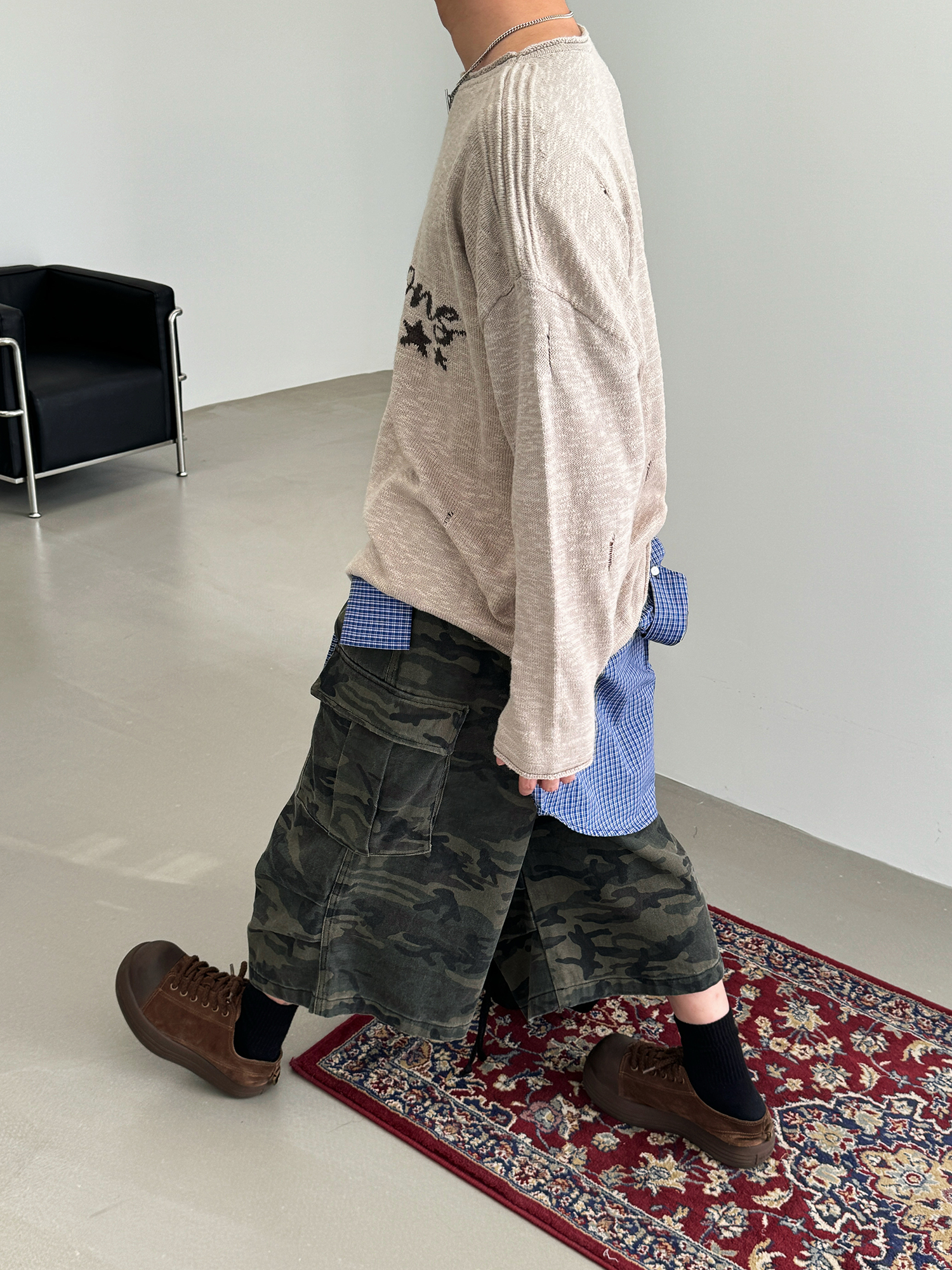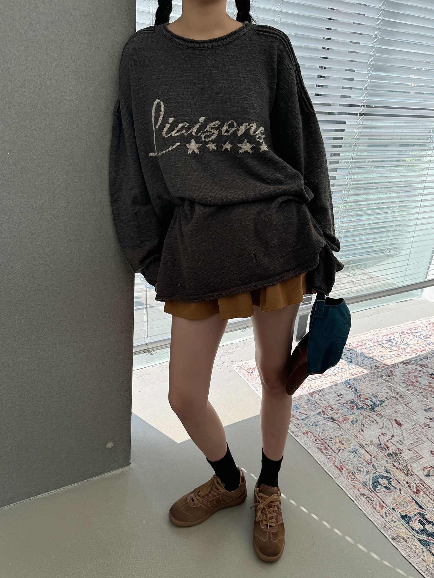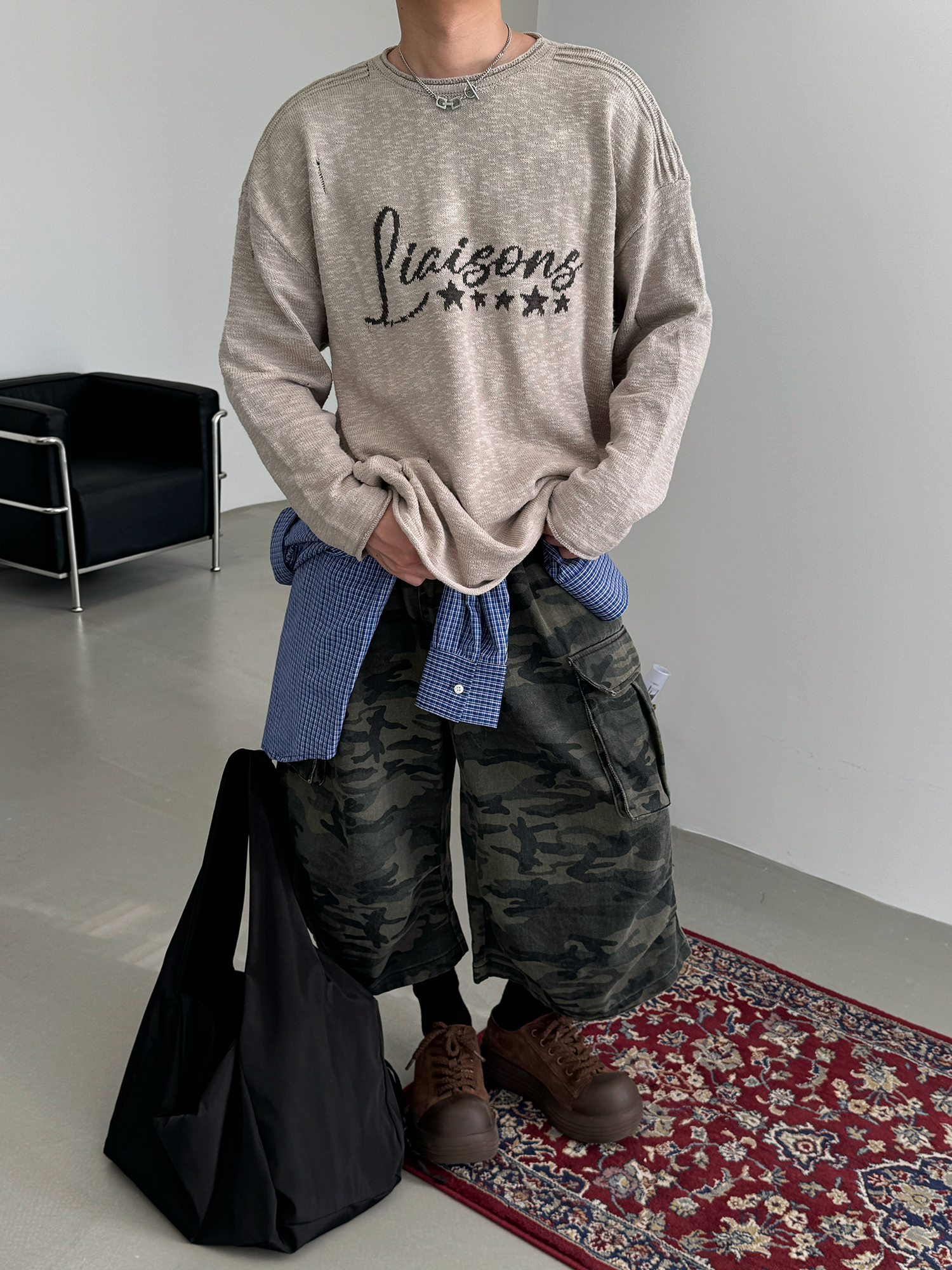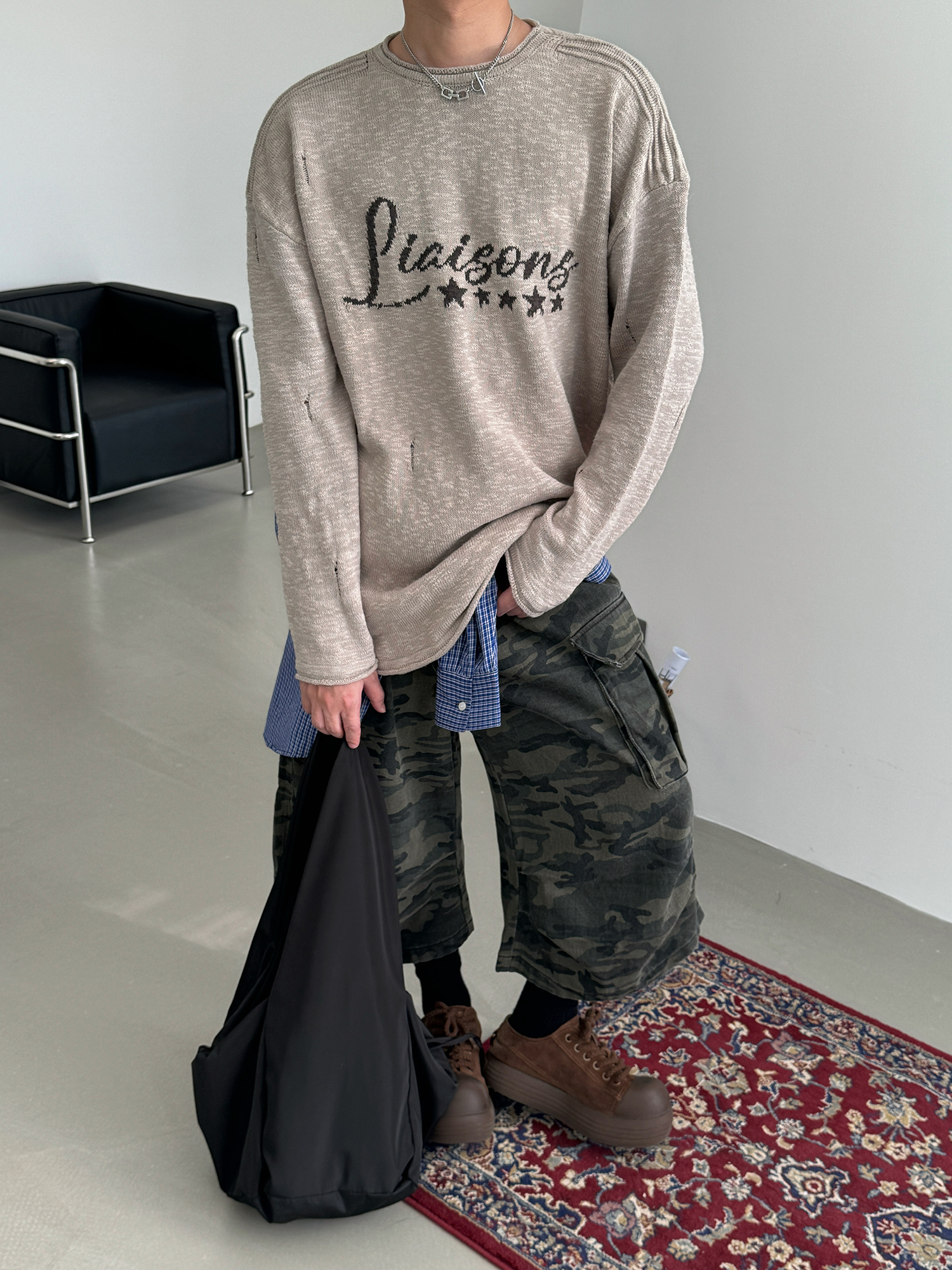 19studio WAYNEPRINCE 美式復古圓領針織衫寬松字母印花破洞毛衣