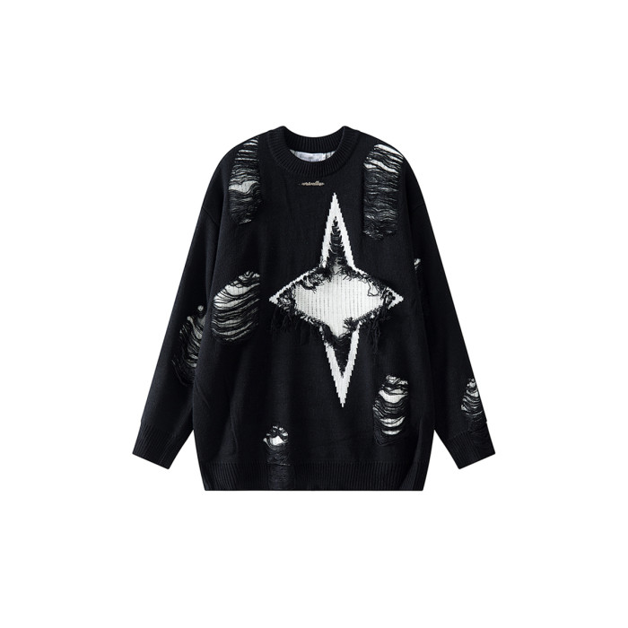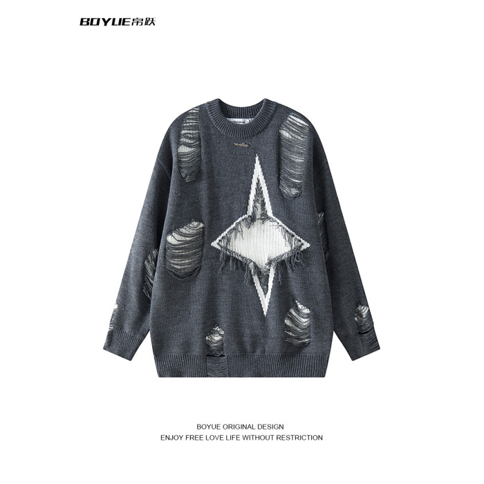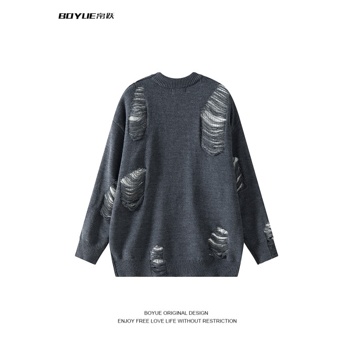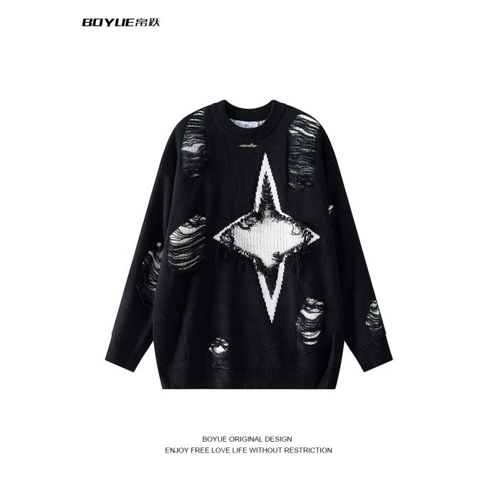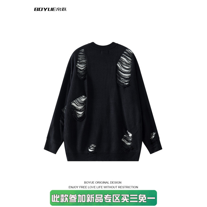 BOYUE帛躍鏤空假兩件鹿毛絨毛衣小衆潮流創意設計感情侶針織衫男
