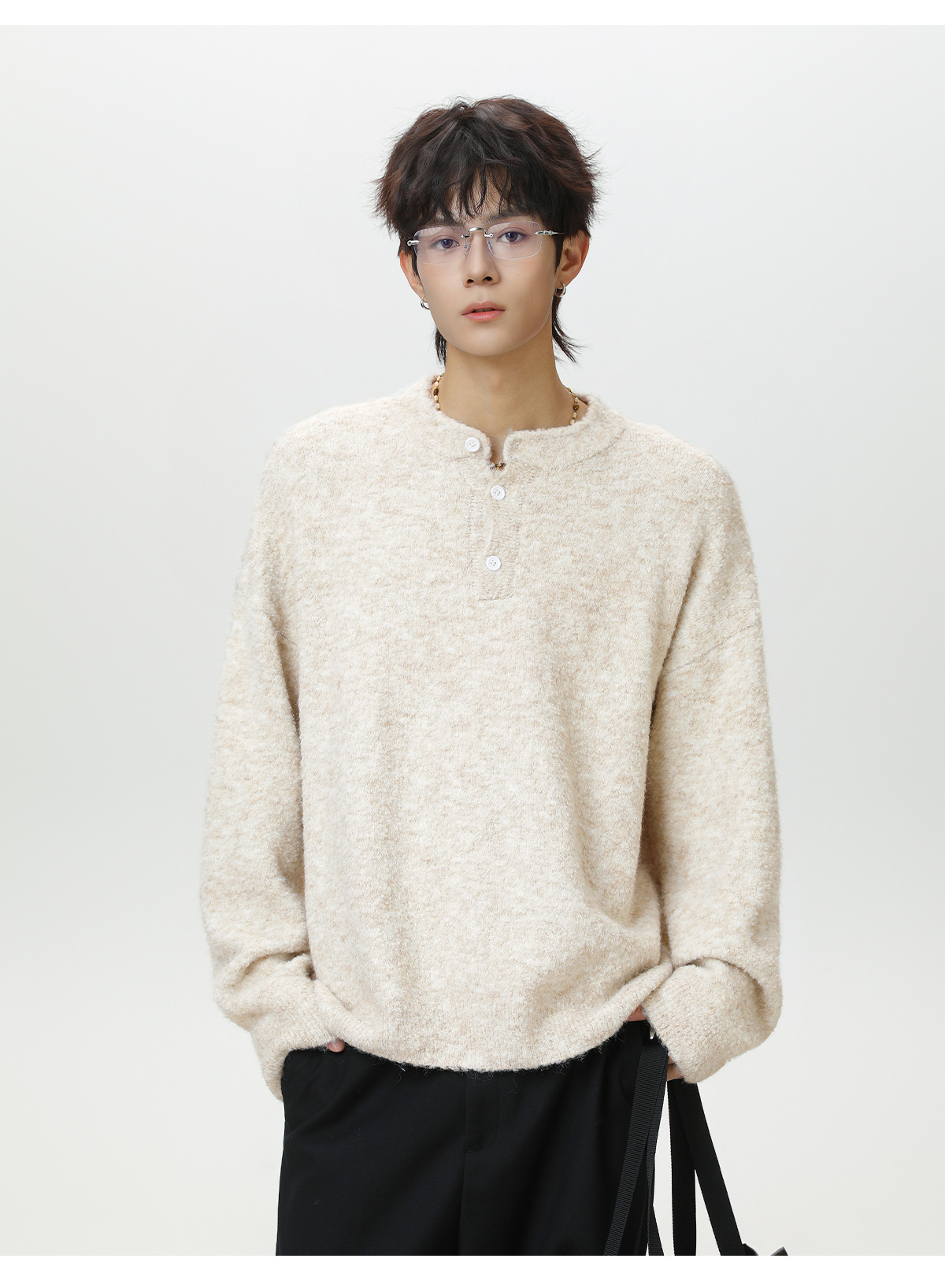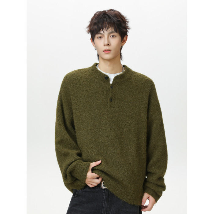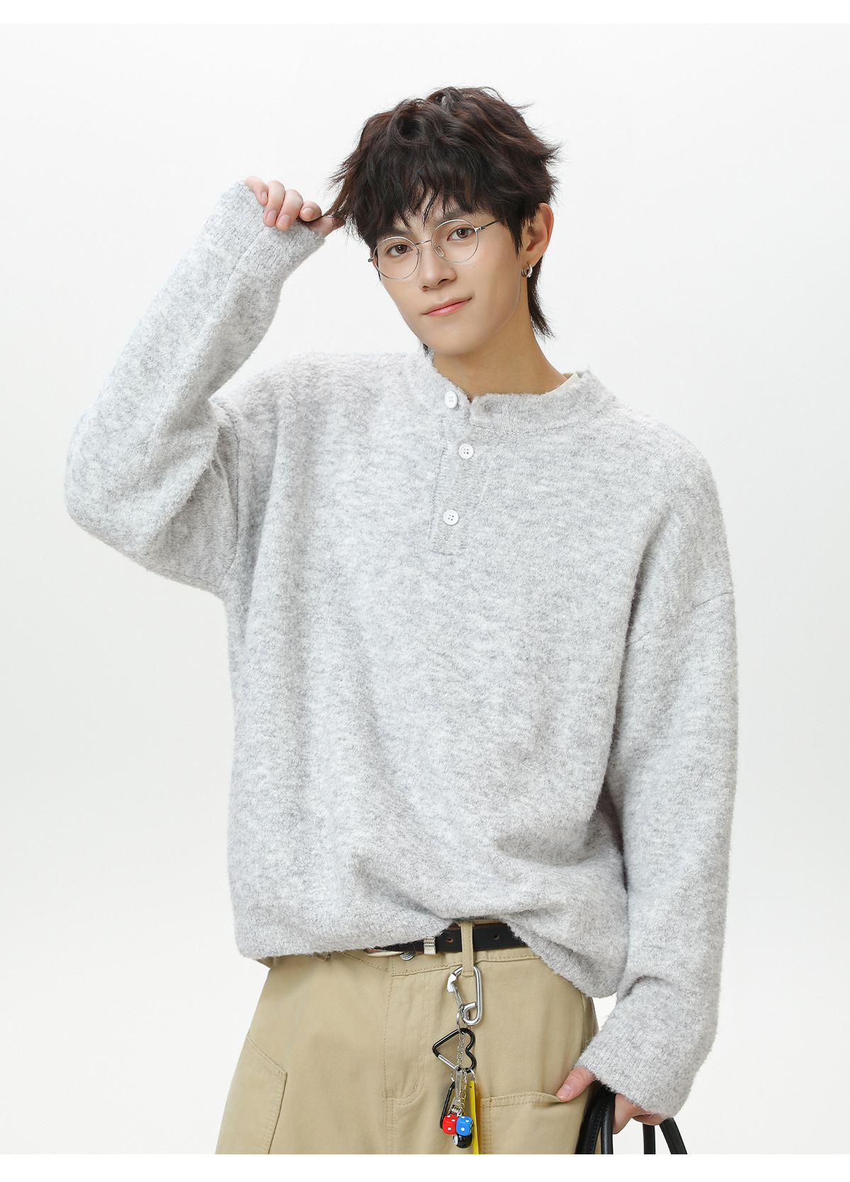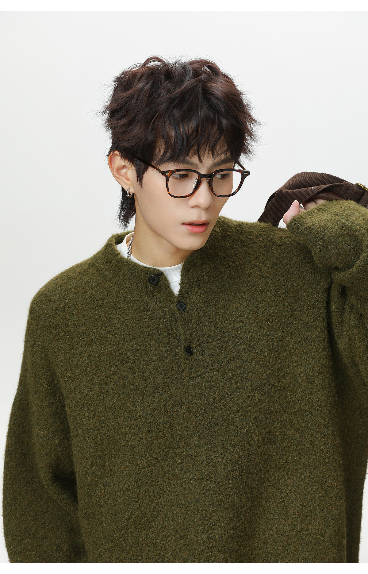 老錢風亨利領毛衣男秋冬季新款慵懶風寬松休閒百搭套頭針織衫外套