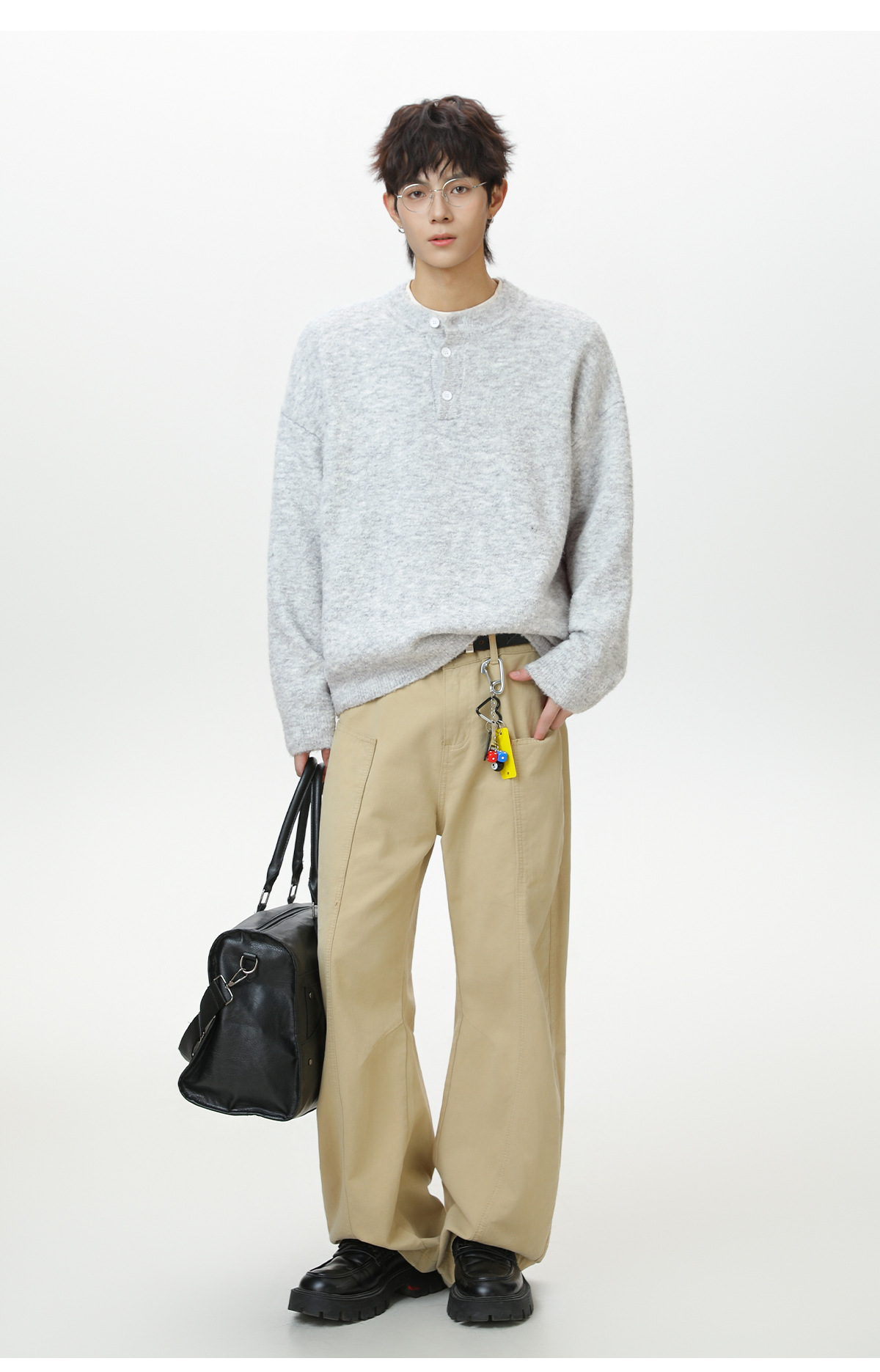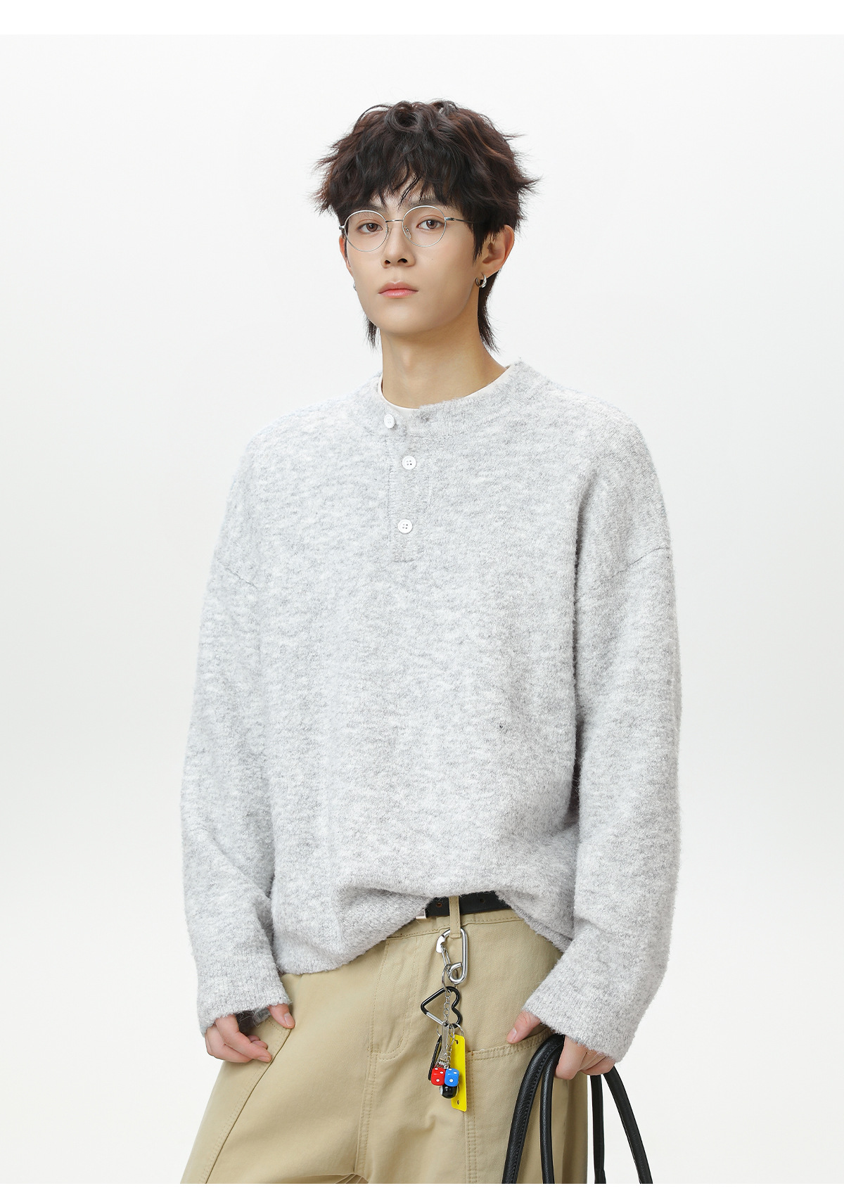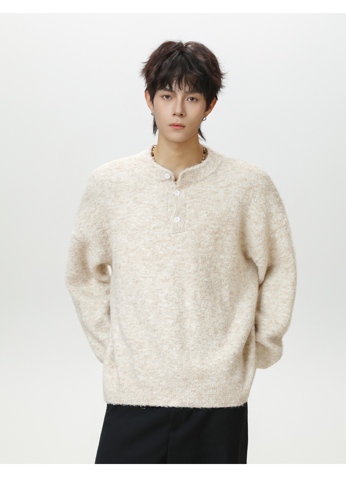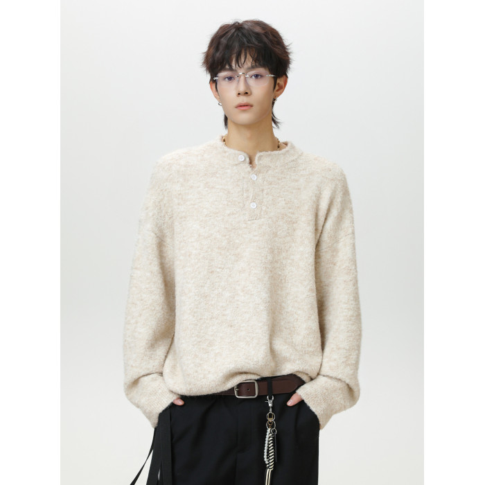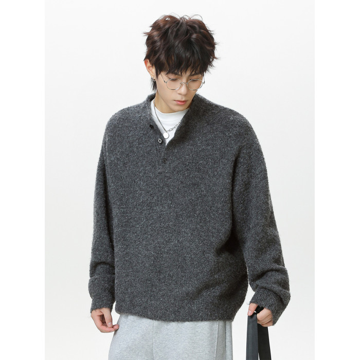 老錢風亨利領毛衣男秋冬季新款慵懶風寬松休閒百搭套頭針織衫外套