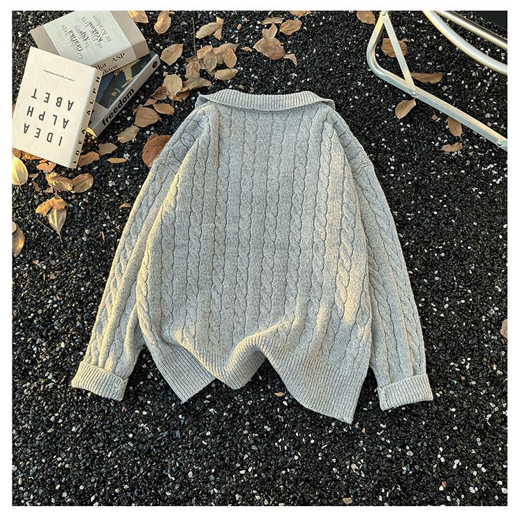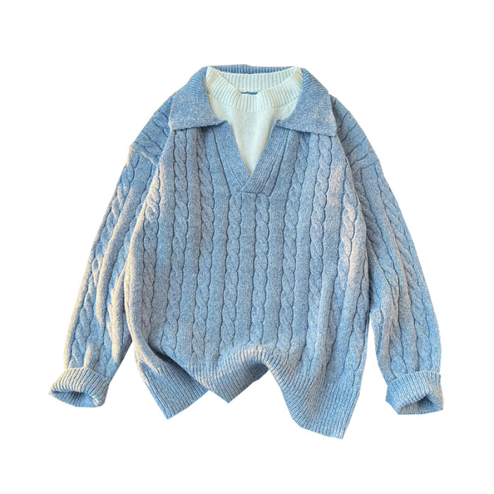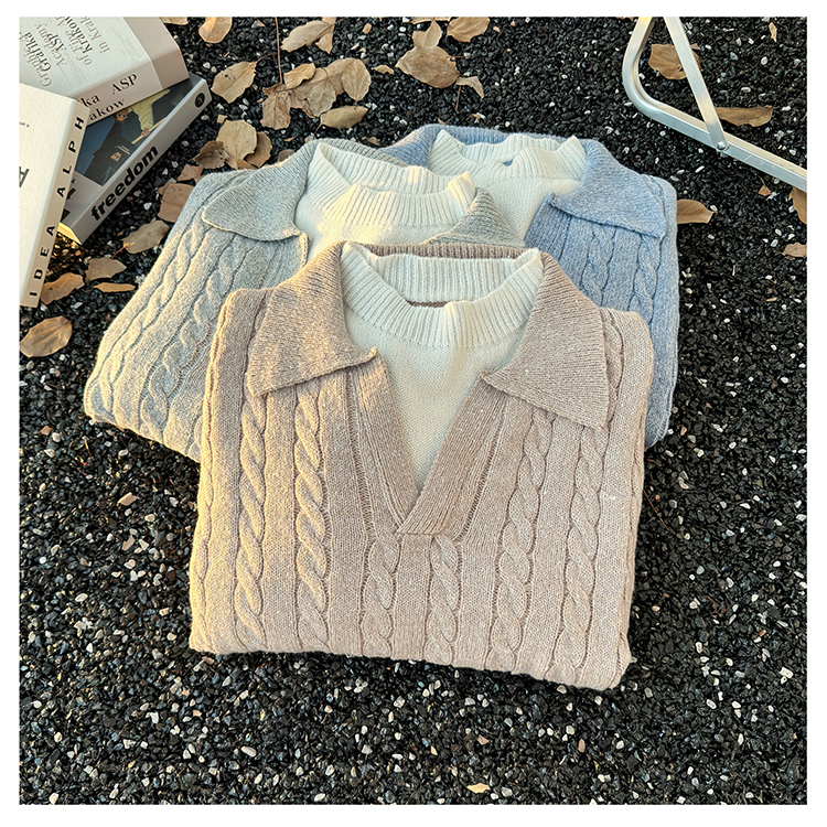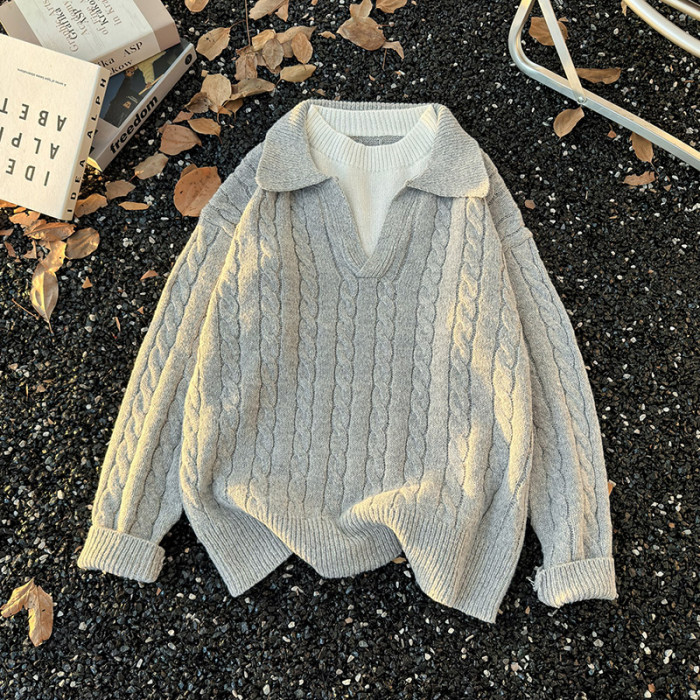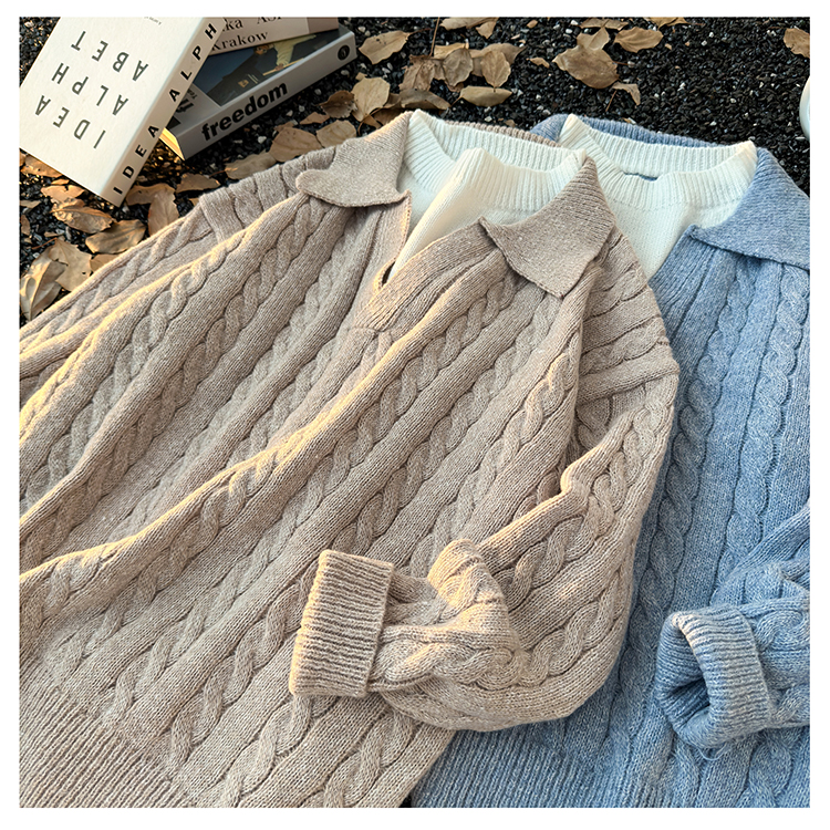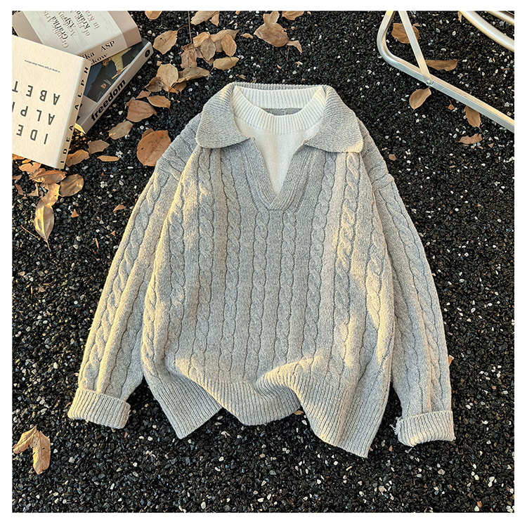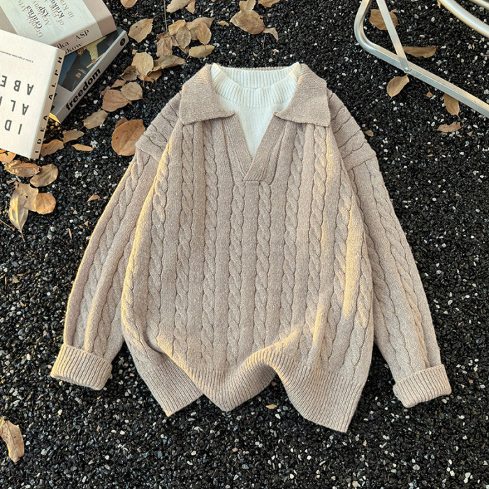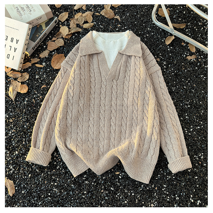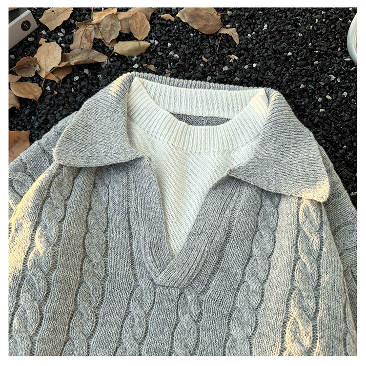 假兩件麻花長袖毛衣男款冬季韓系穿搭翻領套頭polo衫保暖針織線衣