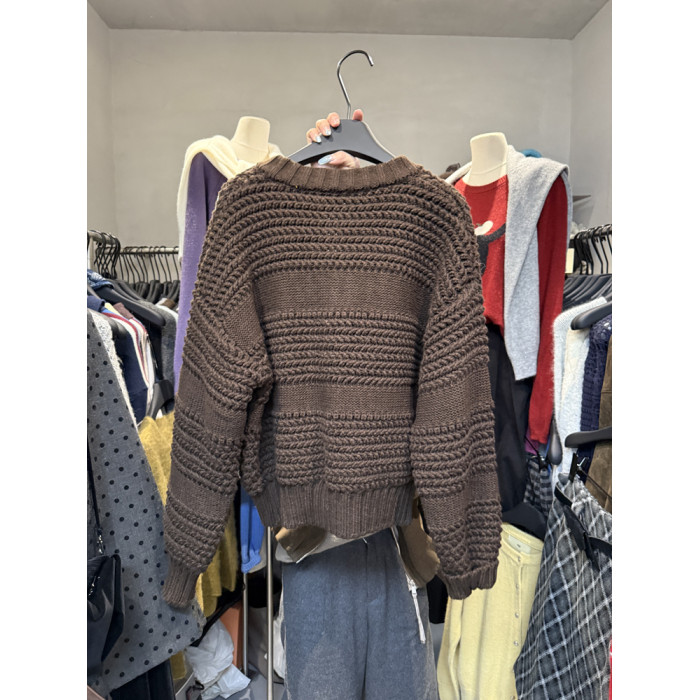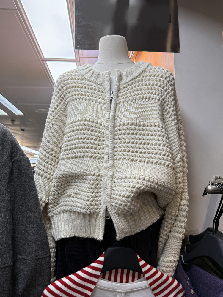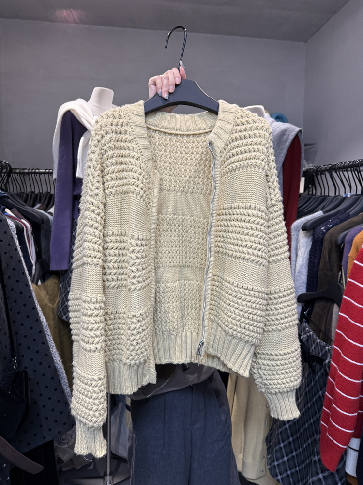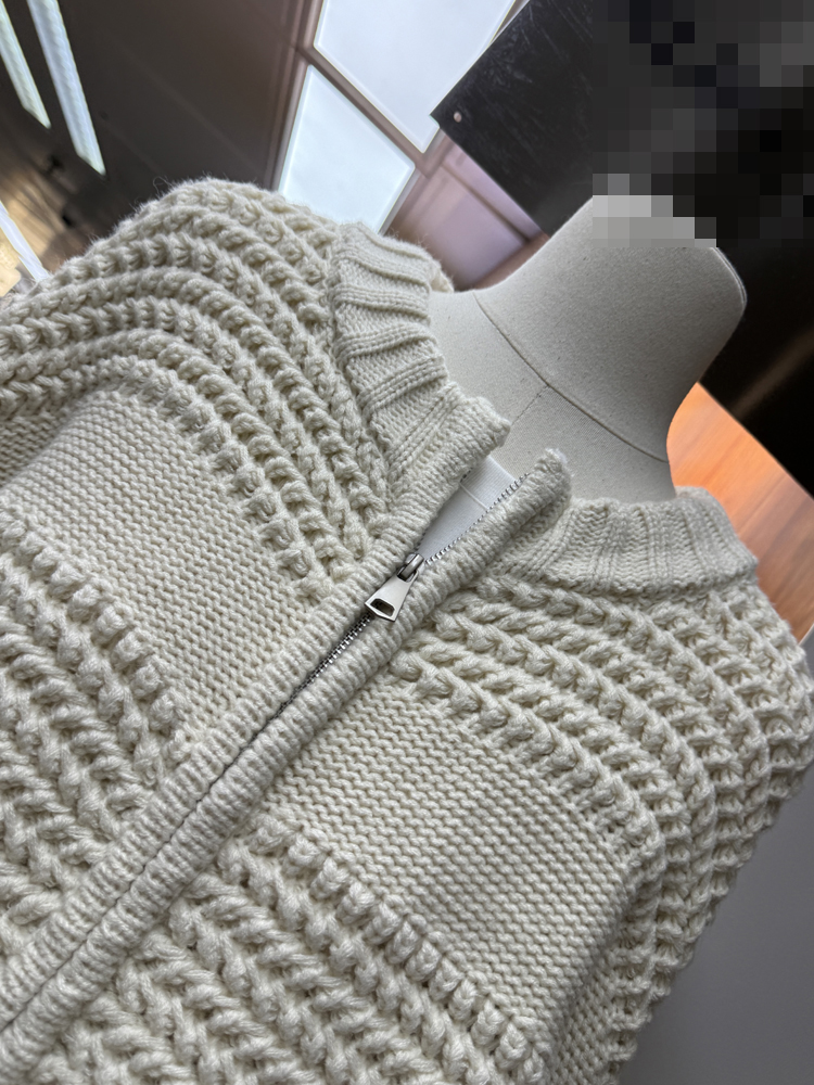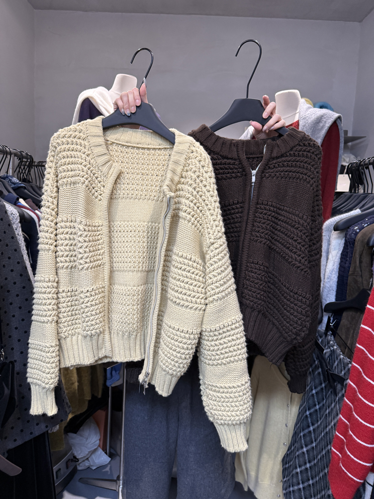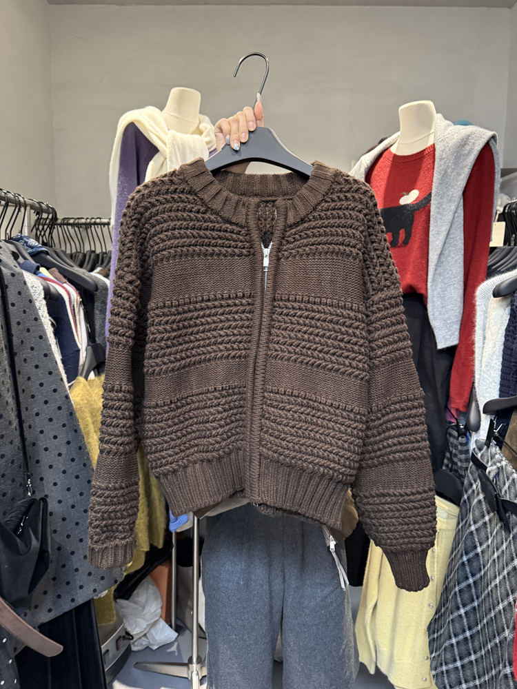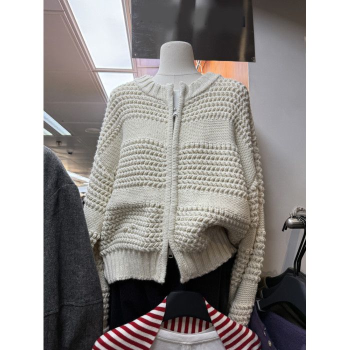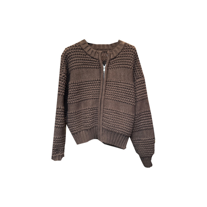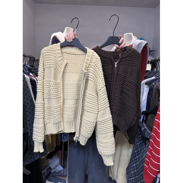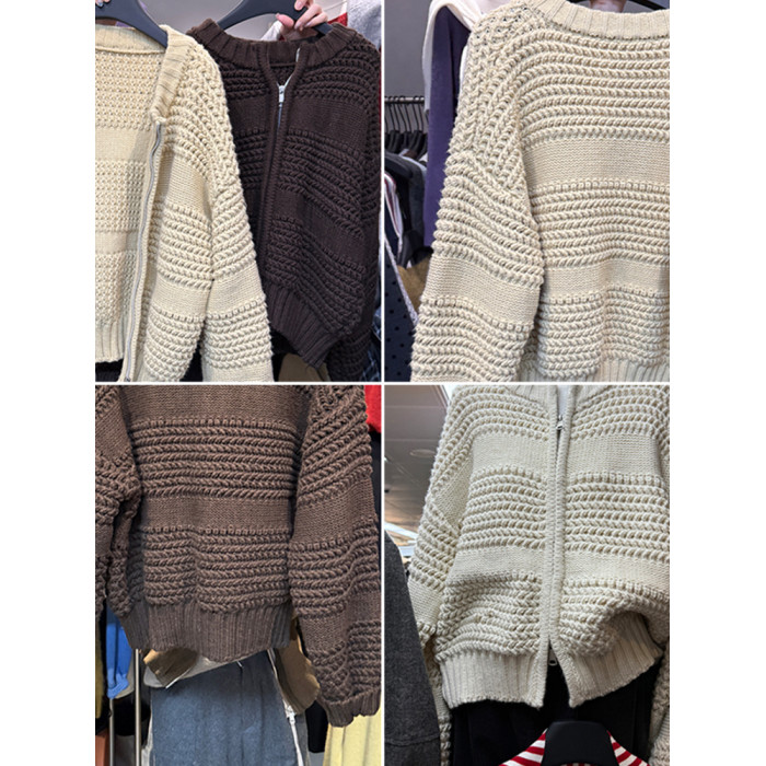 十三行新款韓版2025秋季厚款鏤空針織休閒慵懶風雙向拉鍊毛衣外套