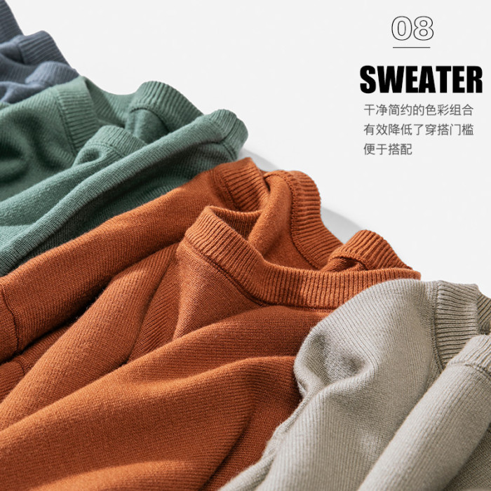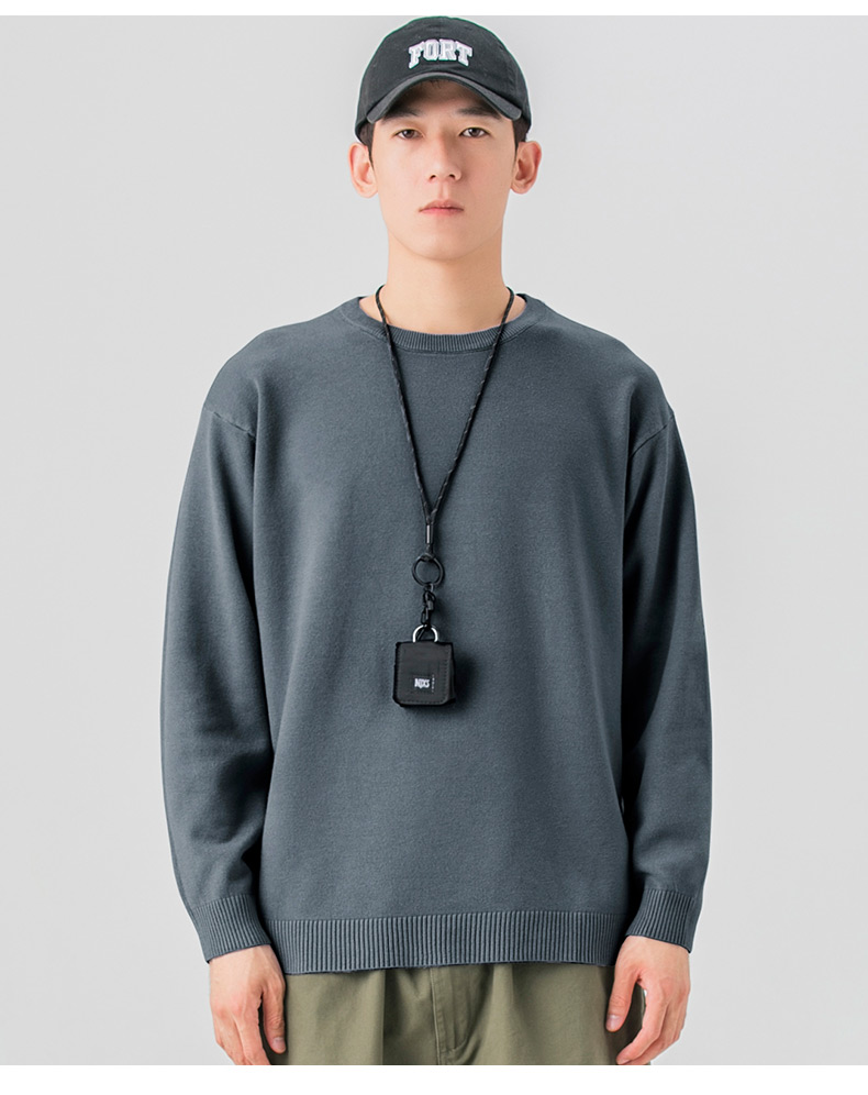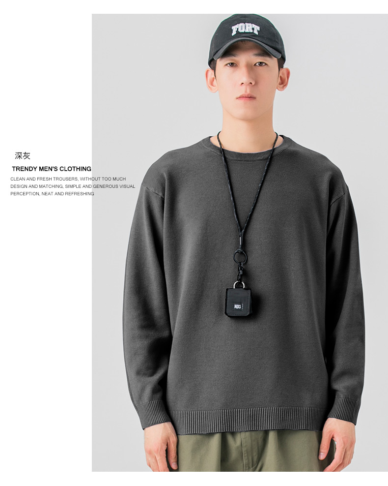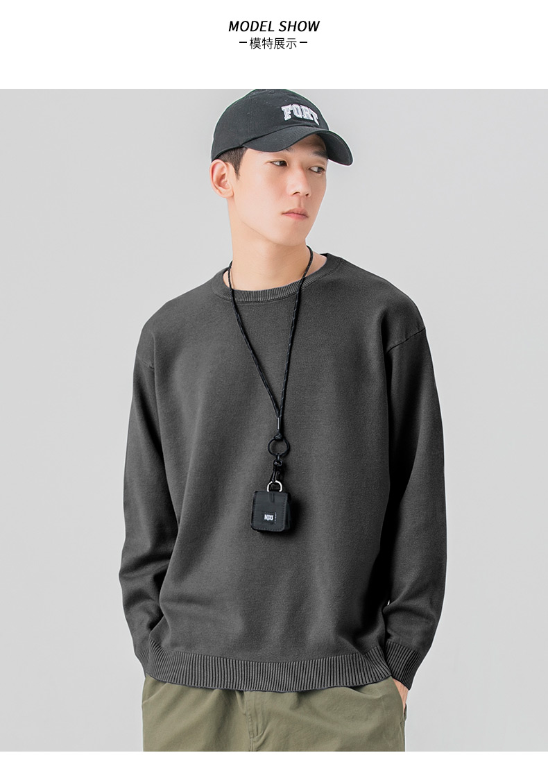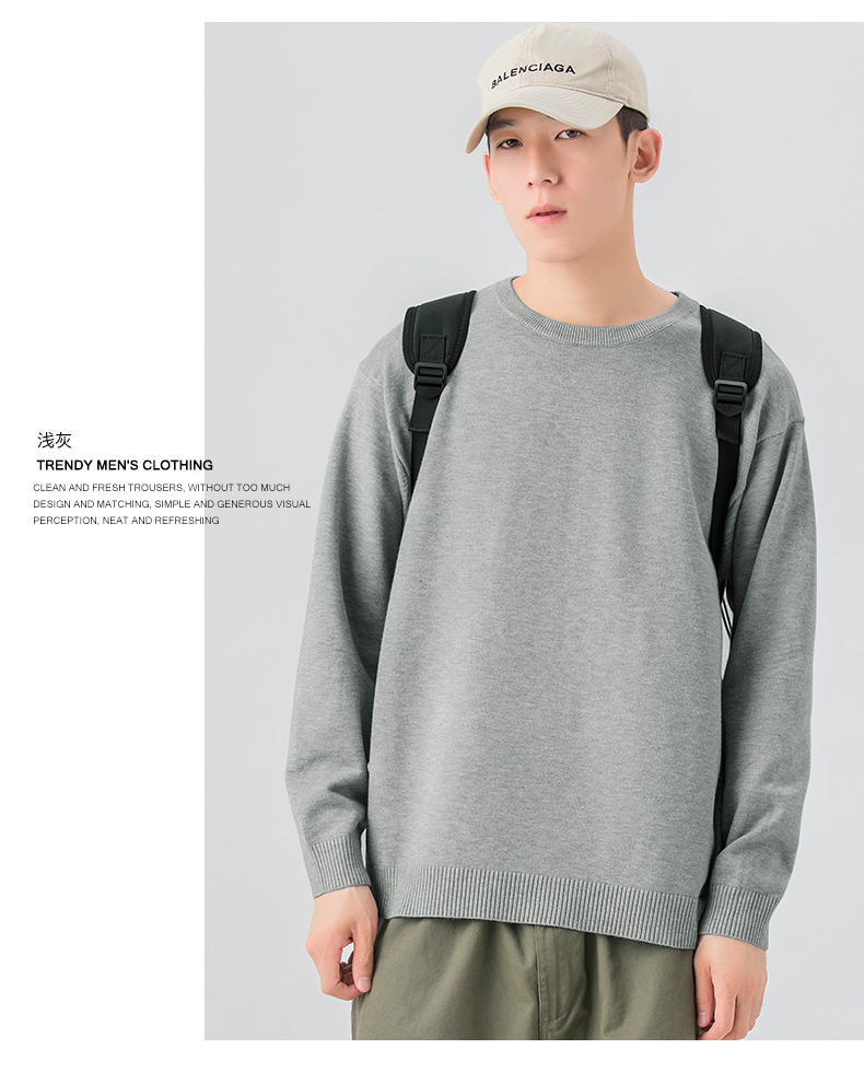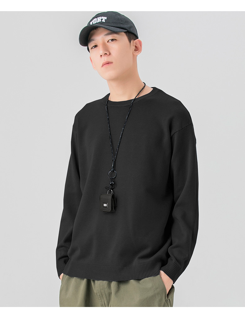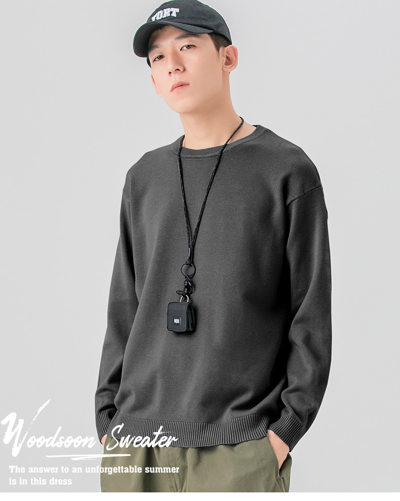 WOODSOON毛衣春季韓版純色套頭針織衫男潮流秋冬毛線衣圓領打底衫